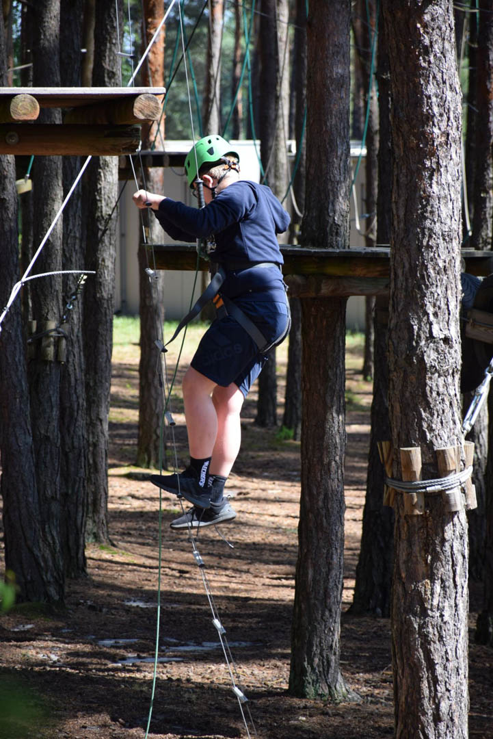 Park linowy oferował dwie trasy o różnym stopniu trudności. Każdy z uczniów mógł indywidualnie wybrać trasę, która odpowiadała jego umiejętnościom i chęciom. Dla wielu z nich było to ogromne wyzwanie, jednak determinacja i wsparcie ze strony rówieśników sprawiły, że większość z nich zakończyła swoje zmagania sukcesem. Radość z pokonania trudności była widoczna na twarzach wszystkich uczestników.