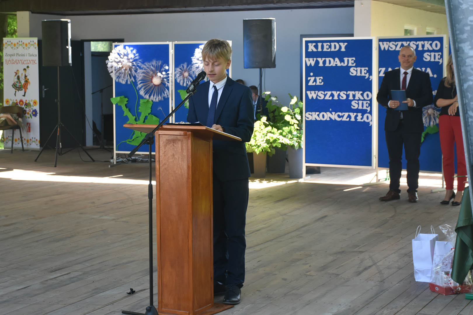 21 czerwca uroczyście zakończyliśmy rok szkolny 2023/2024. Piątek przywitał nas iście piknikową pogodą: świeciło słońce, a na niebie nie było żadnej burzowej chmury. Amfiteatr w przyszkolnym parku ozdobiony wakacyjną dekoracją czekał na chwile pełne wzruszeń i pozytywnych emocji.