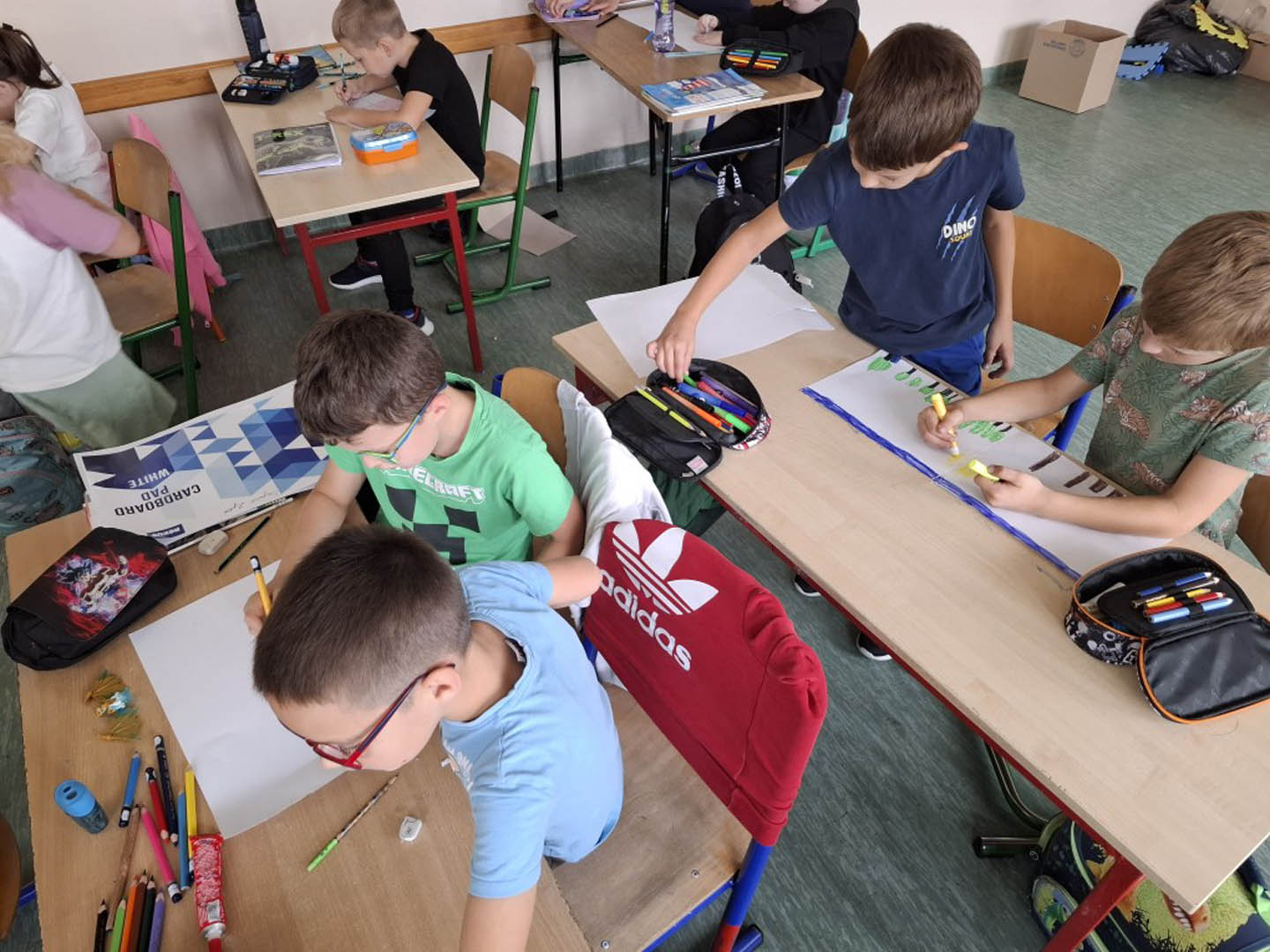 Czwartek pokazał, że szczęście to rozwój. Ludzie są szczęśliwi, gdy realizują swoje pasje. Uczniowie poszczególnych klas przygotowali tego dnia prace plastyczne na temat realizowanych pasji. Dzięki temu mogli się podzielić swoimi zainteresowaniami, a społeczność szkolna dowiedziała się, czym w wolnych chwilach zajmują się ich koleżanki i koledzy.