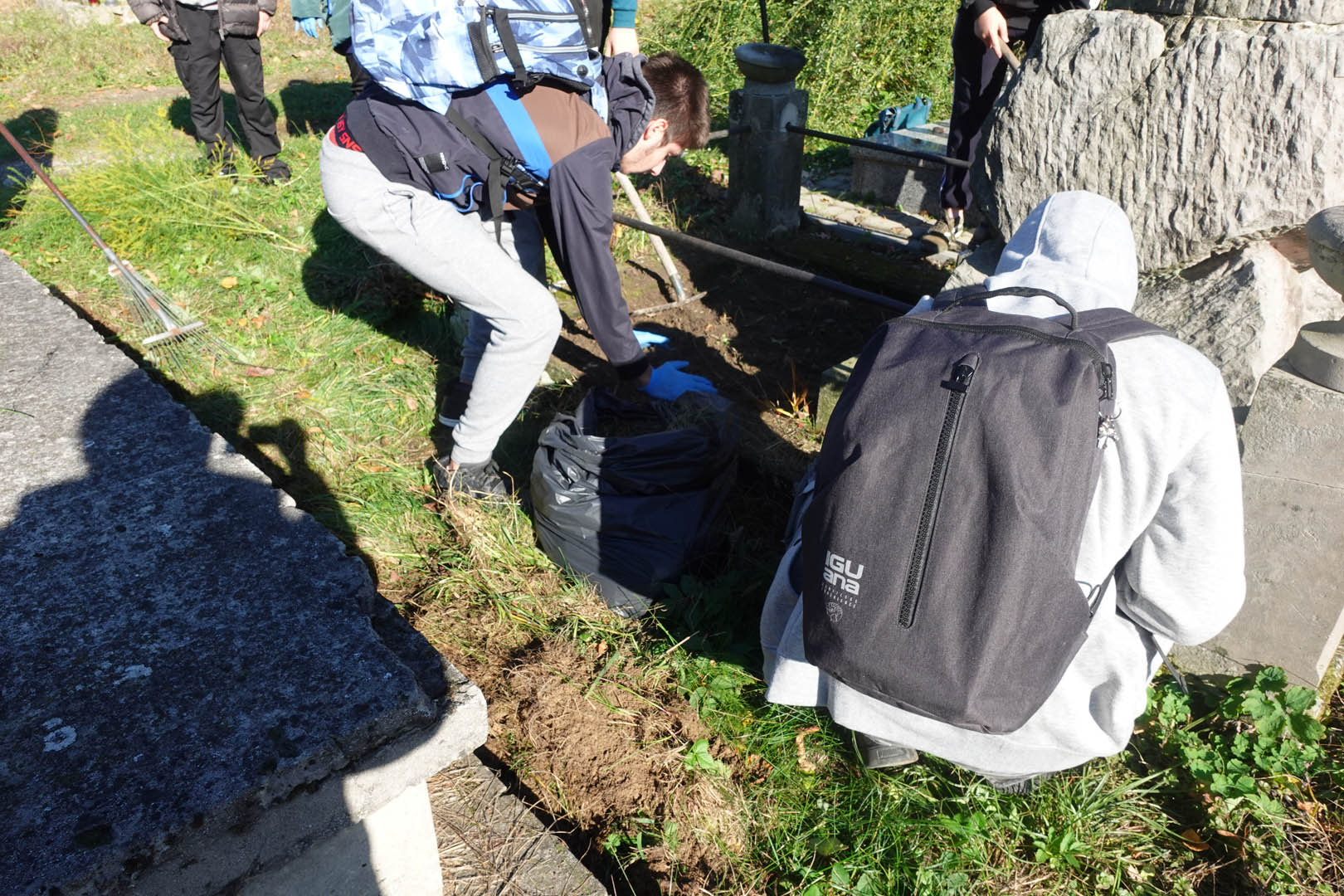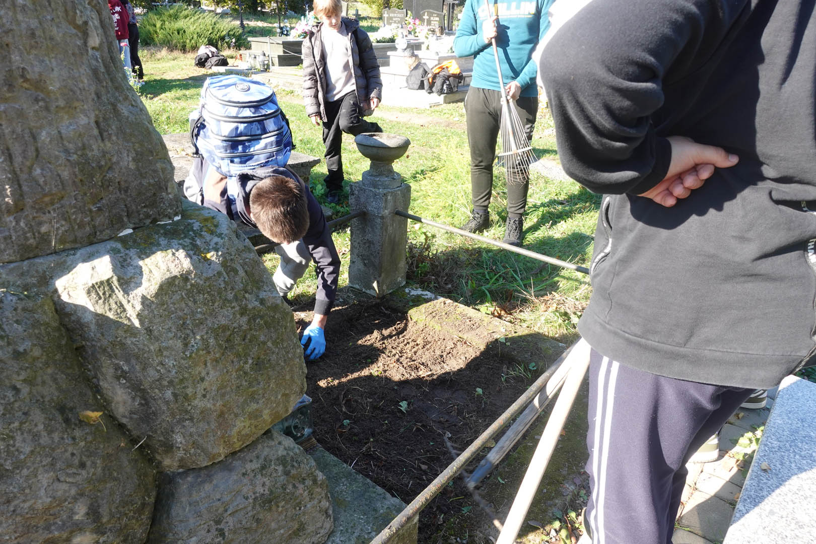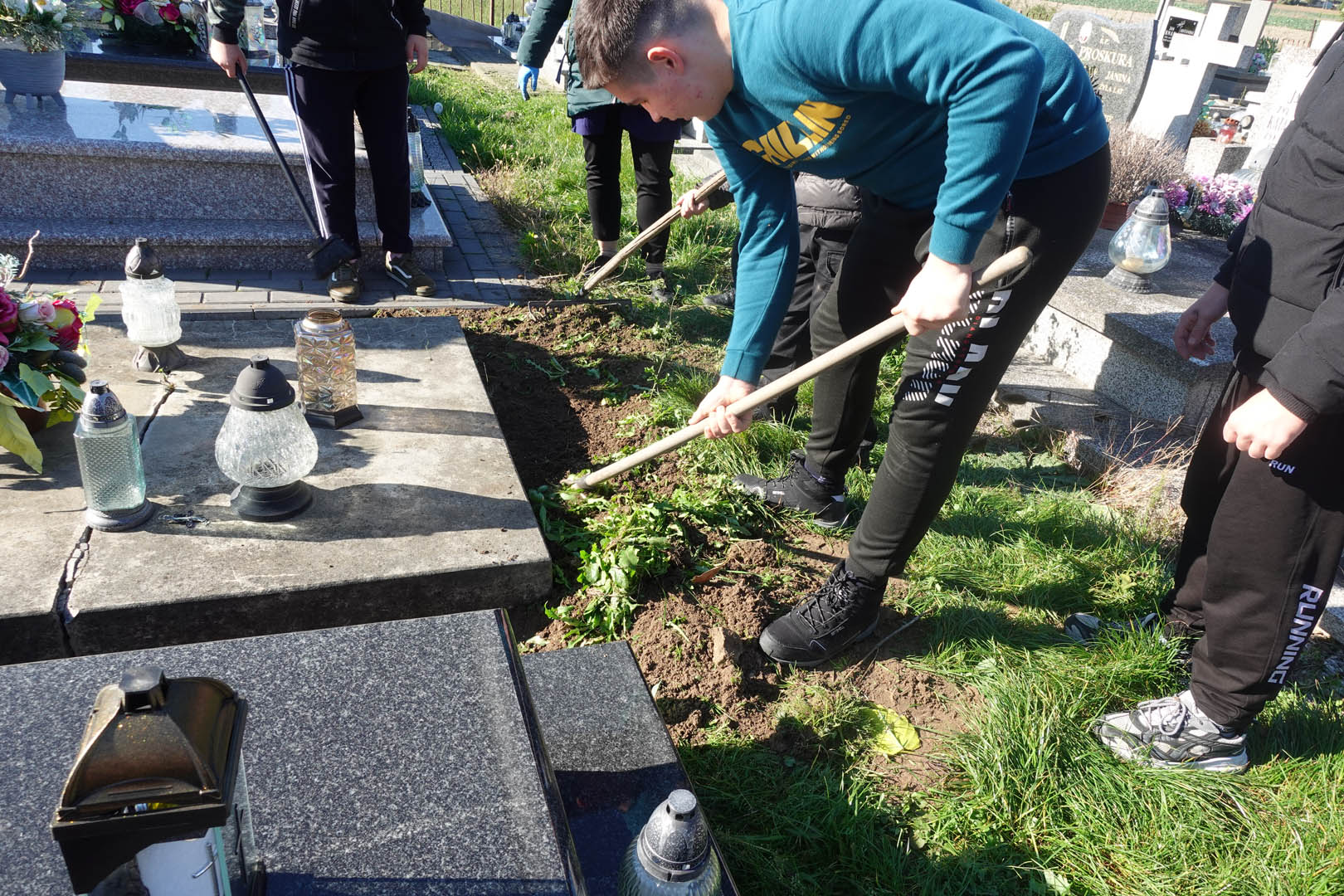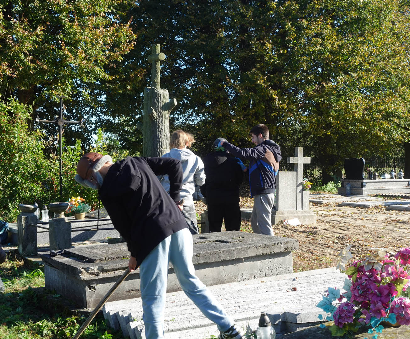 W dniu 18 października grupa uczniów ze Szkolnego Klubu Wolontariusza ,,Iskierki” i kl. VIII b wraz z opiekunem i p. katechetką M. Berbeć udała się na cmentarz parafialny