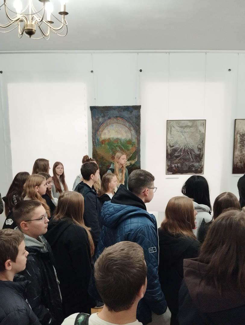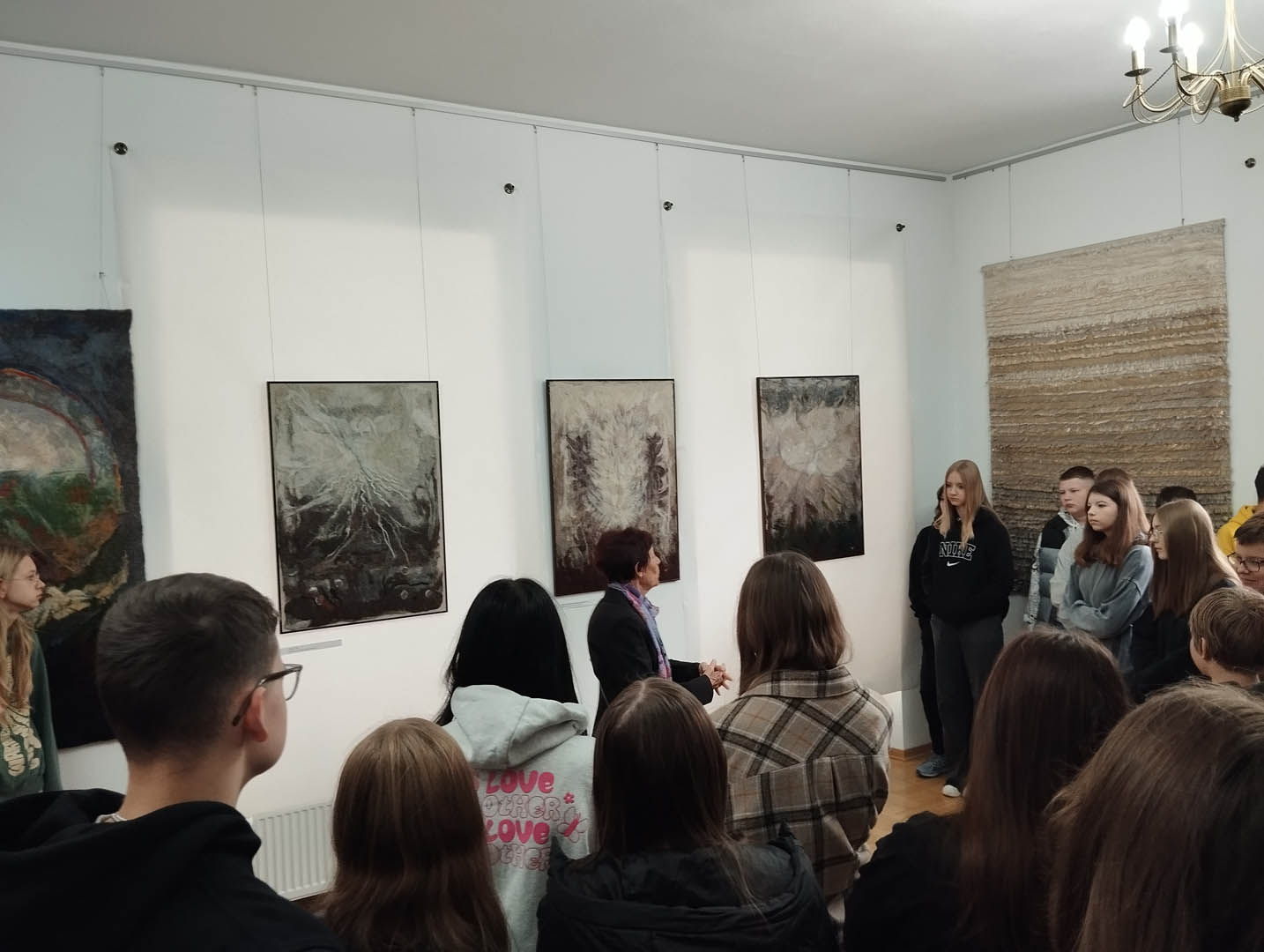 Dnia 25 października uczniowie klas VII a, VIII a i VIII b mieli wyjątkową okazję uczestniczyć w inspirującym spotkaniu z profesor Ewą Marią Poradowską-Werszler. Pani profesor zajmuje się sztuką włókna, tkactwem ręcznym oraz obrazowaniem wełną. Podczas spotkania we Dworze Sztuki uczniowie mogli podziwiać obrazy wykonane przez artystkę. Każde dzieło opowiadało swoją unikalną historię, przenosząc widzów w świat wyobraźni i kreatywności. Profesor Poradowska-Werszler nie tylko zaprezentowała swoje prace, ale również opowiedziała o technikach i procesach twórczych, które stoją za każdym z nich. Dla uczniów była to niepowtarzalna okazja, aby z bliska przyjrzeć się sztuce rękodzieła i dowiedzieć się więcej o tej fascynującej dziedzinie. Spotkanie z pewnością zainspirowało wielu z nich do rozwijania swoich własnych pasji artystycznych.
