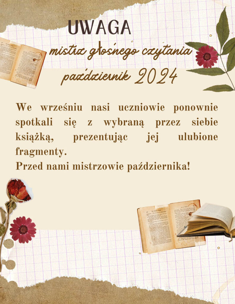 5 listopad Mistrz głośnego czytania – październik 2024 Szkoła Podstawowa Możliwość komentowania Mistrz głośnego czytania – październik 2024 została wyłączona