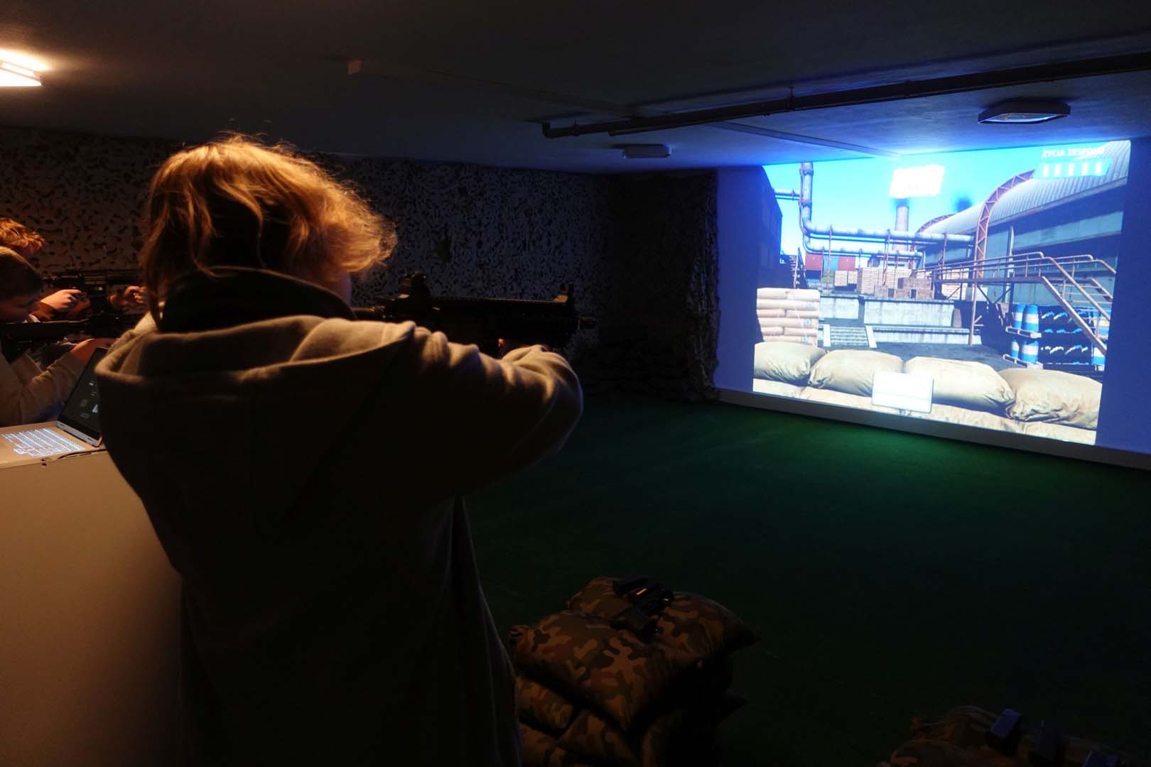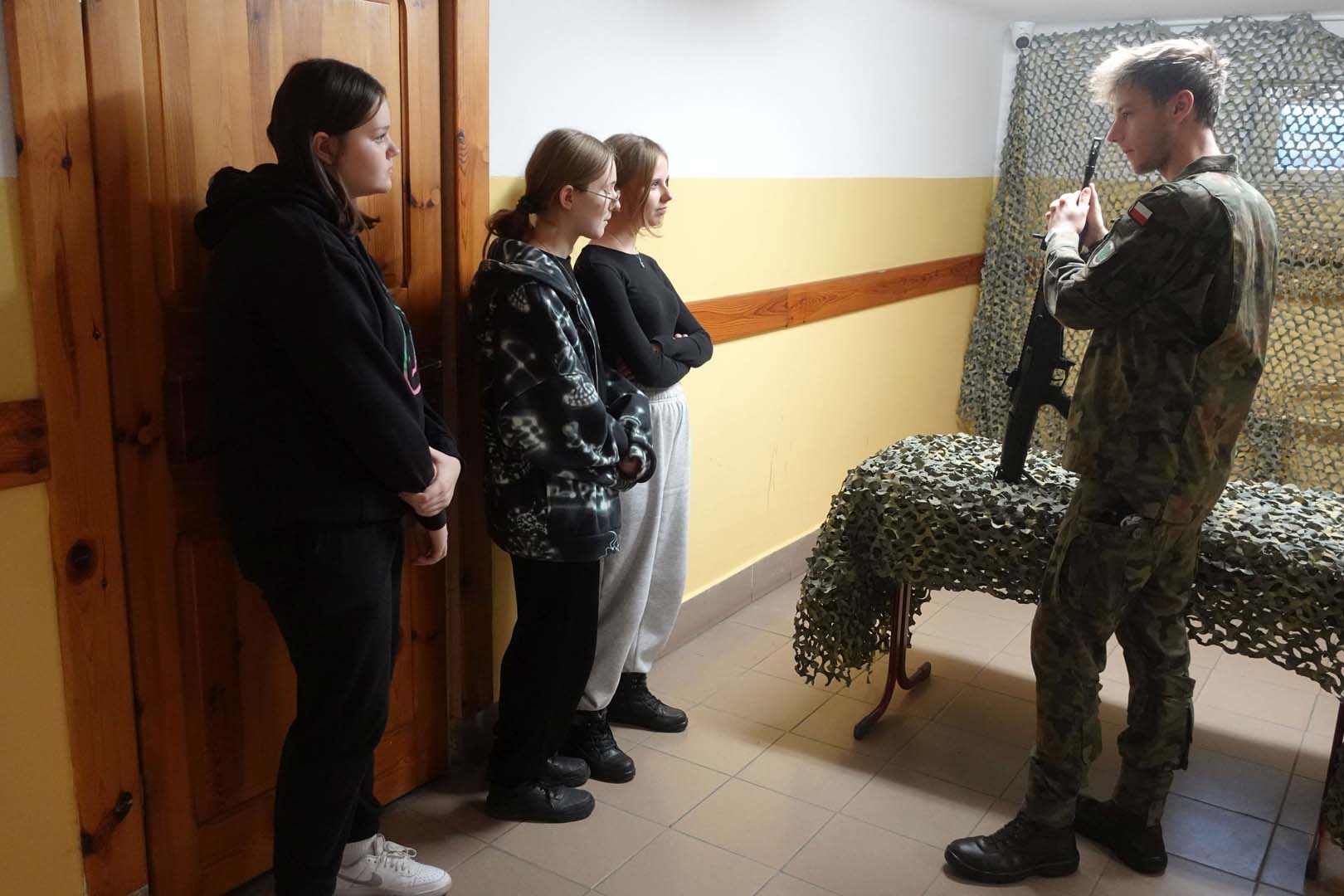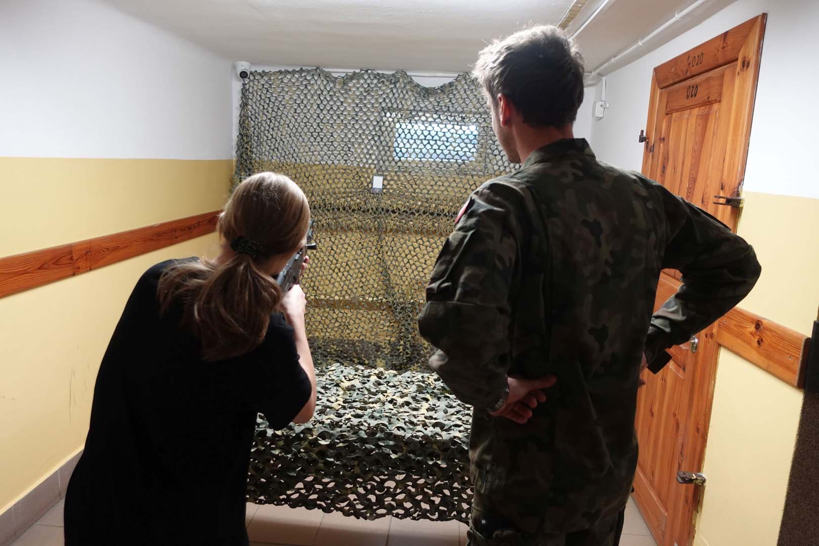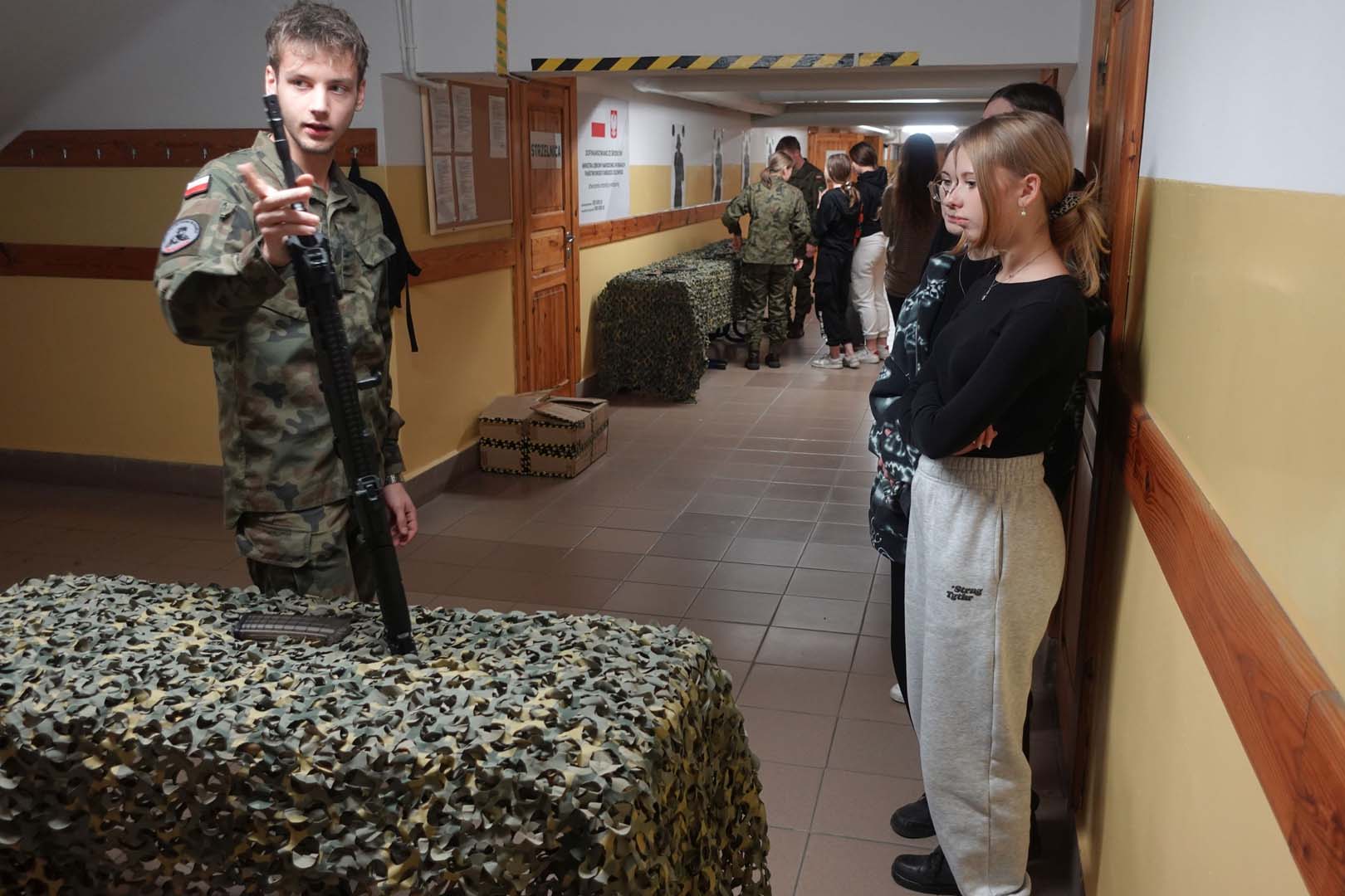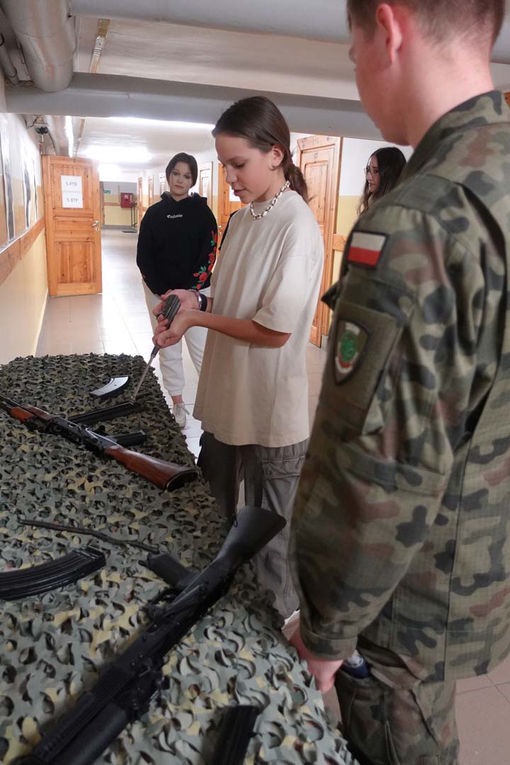 Druga część warsztatów prowadzona była przez pułkownika Sławomira Kułagę. Uczniowie mieli okazję nauczyć się podstaw obsługi broni palnej – rozbierania i składania broni. Dodatkowo każdy uczestnik sprawdzał swoje umiejętności na strzelnicy, strzelając z broni krótkiej i długiej. To niecodzienne doświadczenie wzbudziło ogromne zainteresowanie wśród młodzieży.