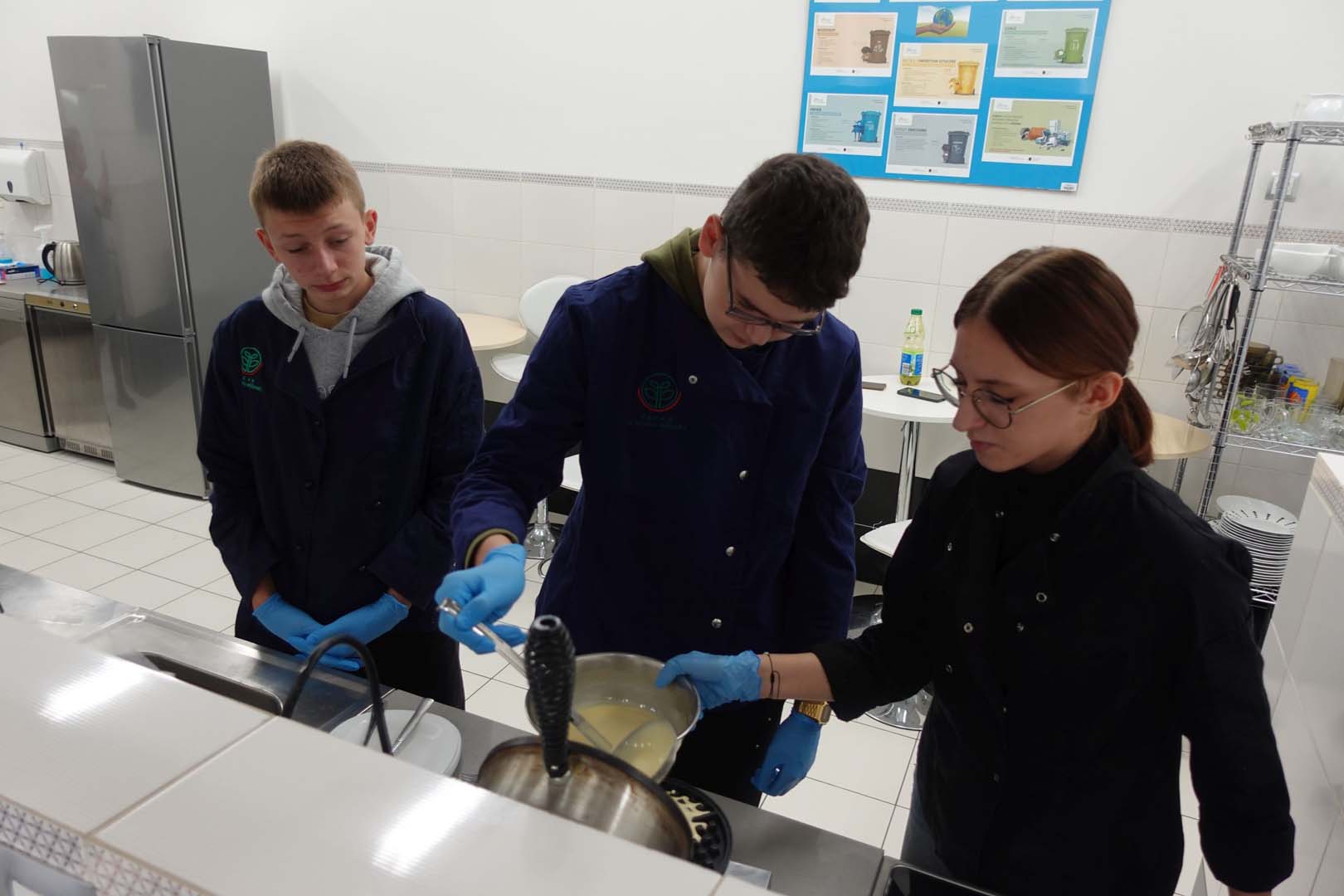 Jedna z części warsztatów skupiała się na zajęciach kulinarnych. Uczniowie, wspólnie z czwartoklasistami ze szkoły średniej, przygotowywali i smażyli gofry. Było to nie tylko niezwykle smaczne doświadczenie, gdyż własnoręcznie przygotowane przysmaki zostały później skosztowane przez wszystkich uczestników.