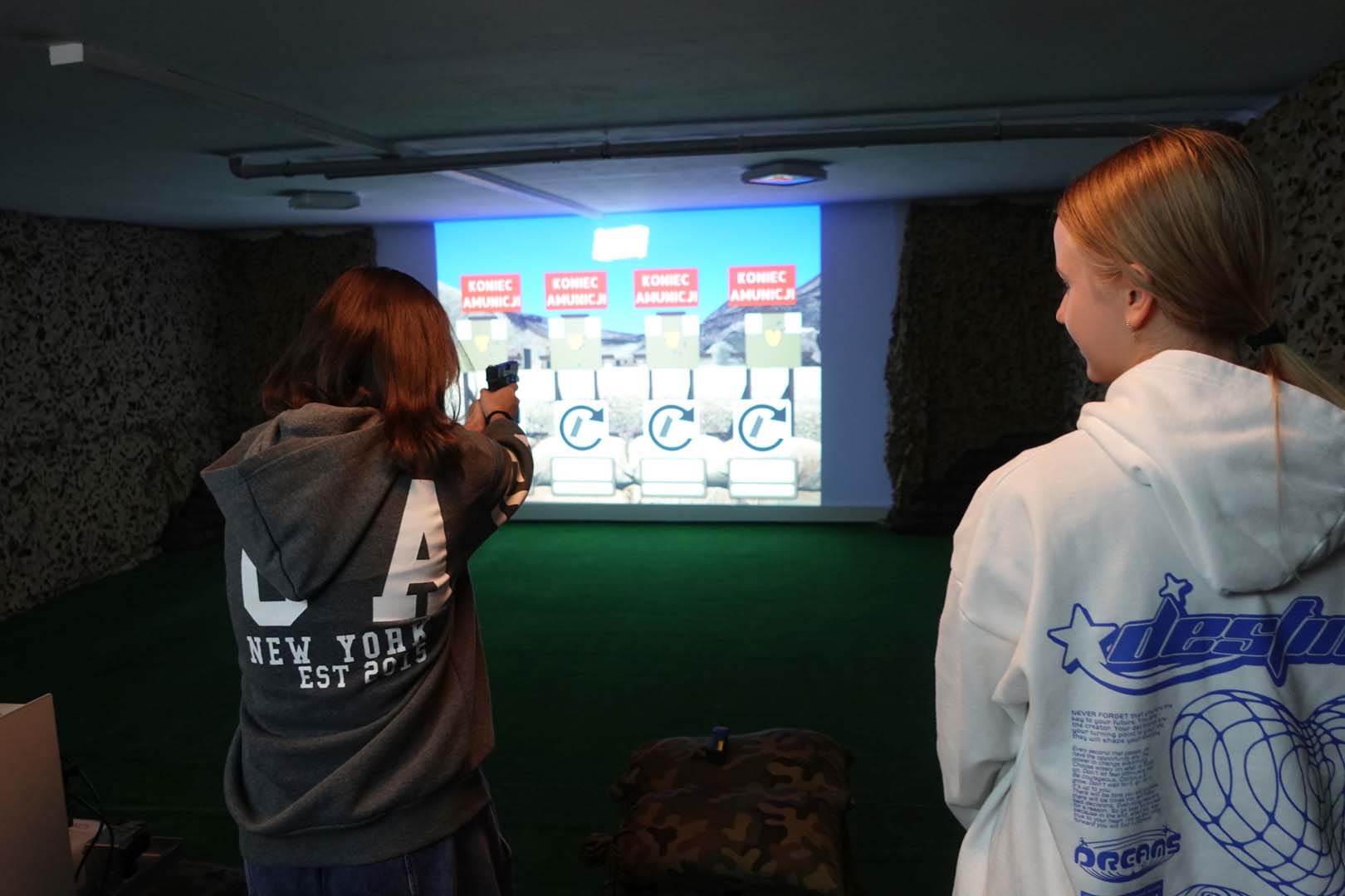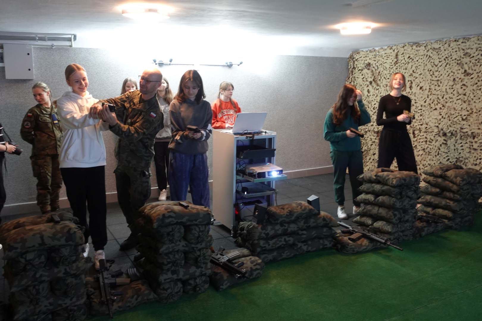 Druga część warsztatów odbyła się pod okiem pułkownika Sławomira Kułagi. Uczniowie mieli możliwość zapoznania się z podstawami obsługi broni palnej, w tym jej rozkładania i składania. Dodatkowo każdy uczestnik sprawdził swoje umiejętności na strzelnicy, strzelając zarówno z broni krótkiej, jak i długiej. To wyjątkowe przeżycie spotkało się z ogromnym entuzjazmem ze strony młodzieży.