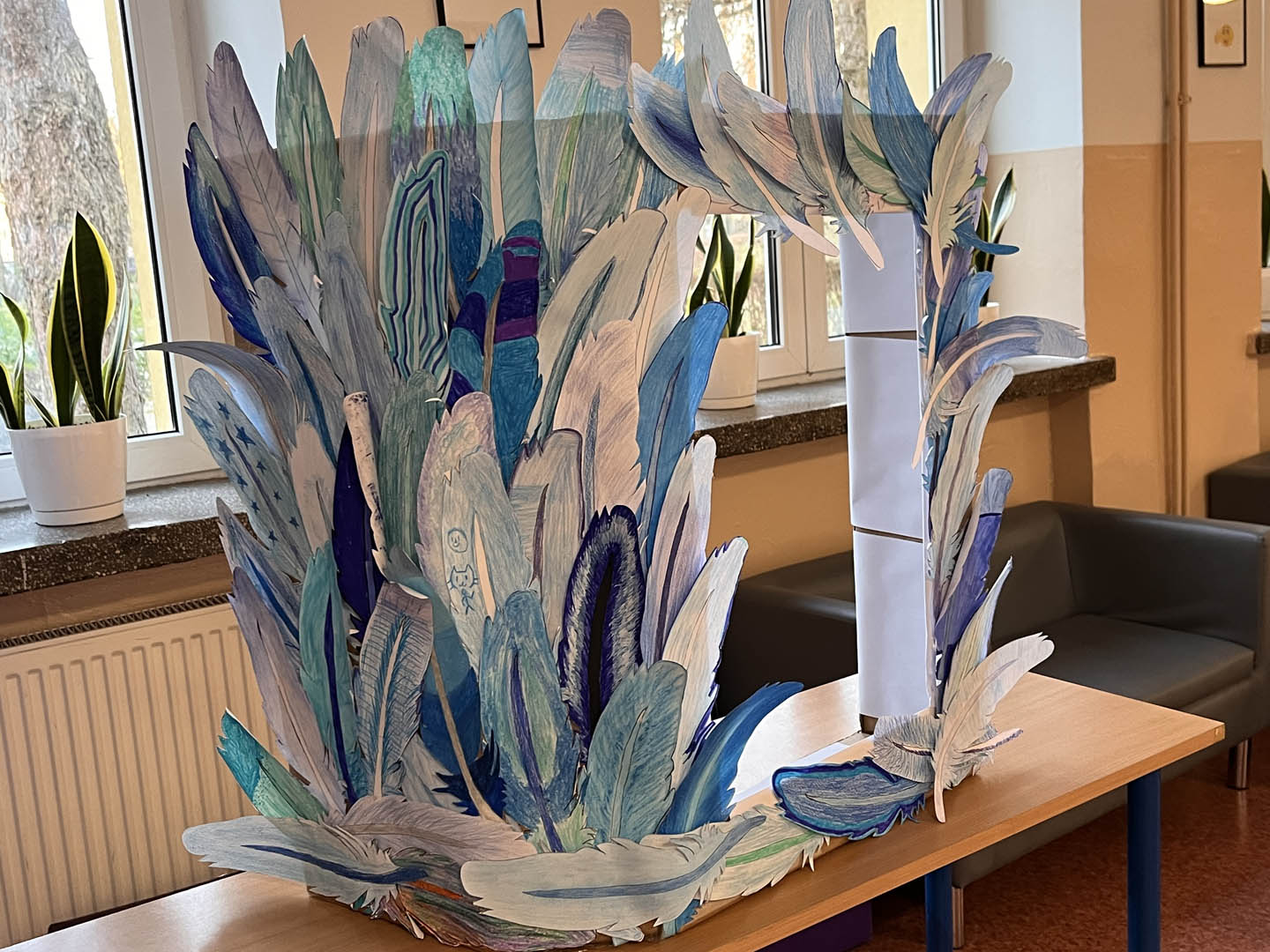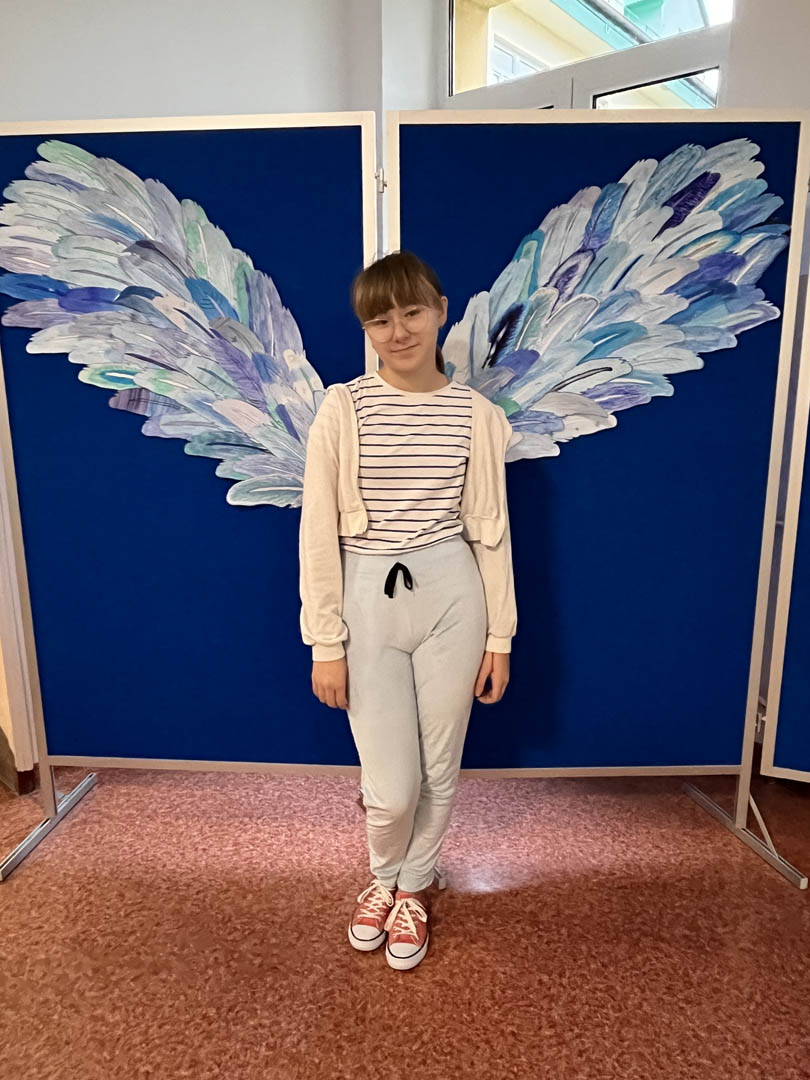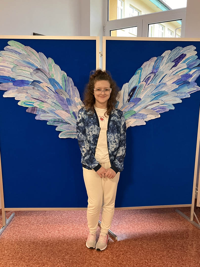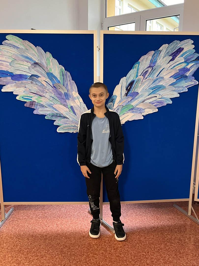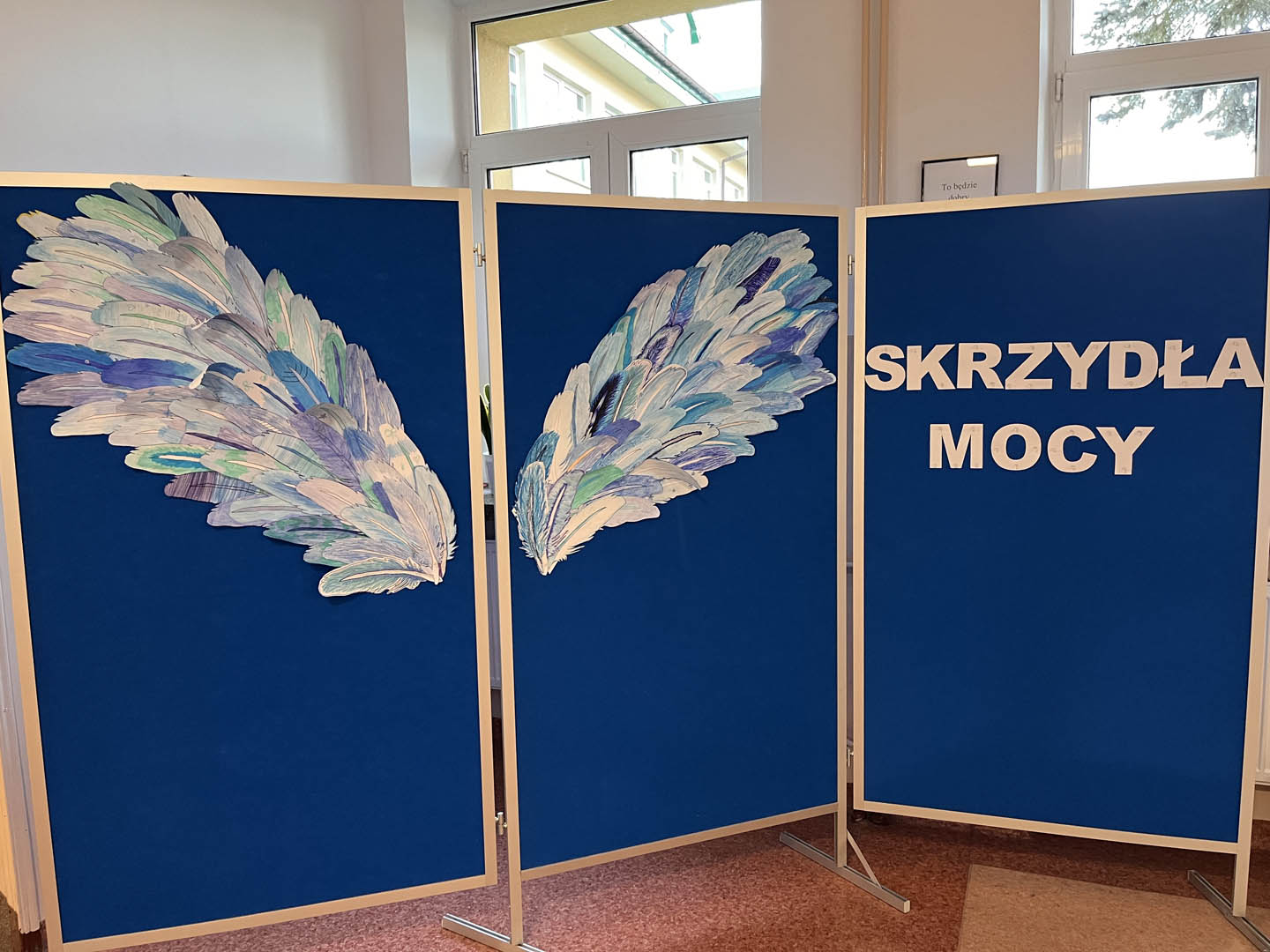 Uczniowie klas starszych przygotowali pióra we wszystkich odcieniach błękitu. Stworzyli z nich skrzydła mocy, które miały pokazać, że każde dziecko ma moc i siłę. Ponadto powstała fotobudka i każdy mógł zrobić sobie zdjęcie. Wykorzystano do tego aparat zakupiony w ramach projektu Laboratorium Przyszłości.