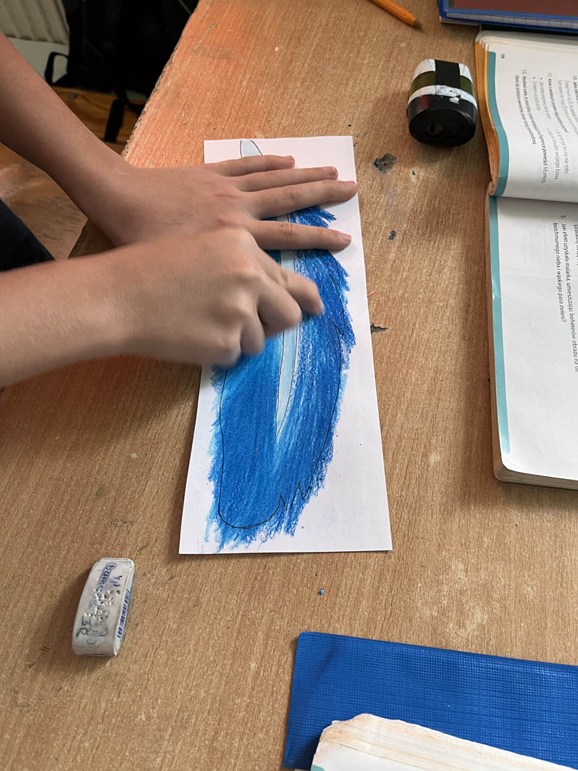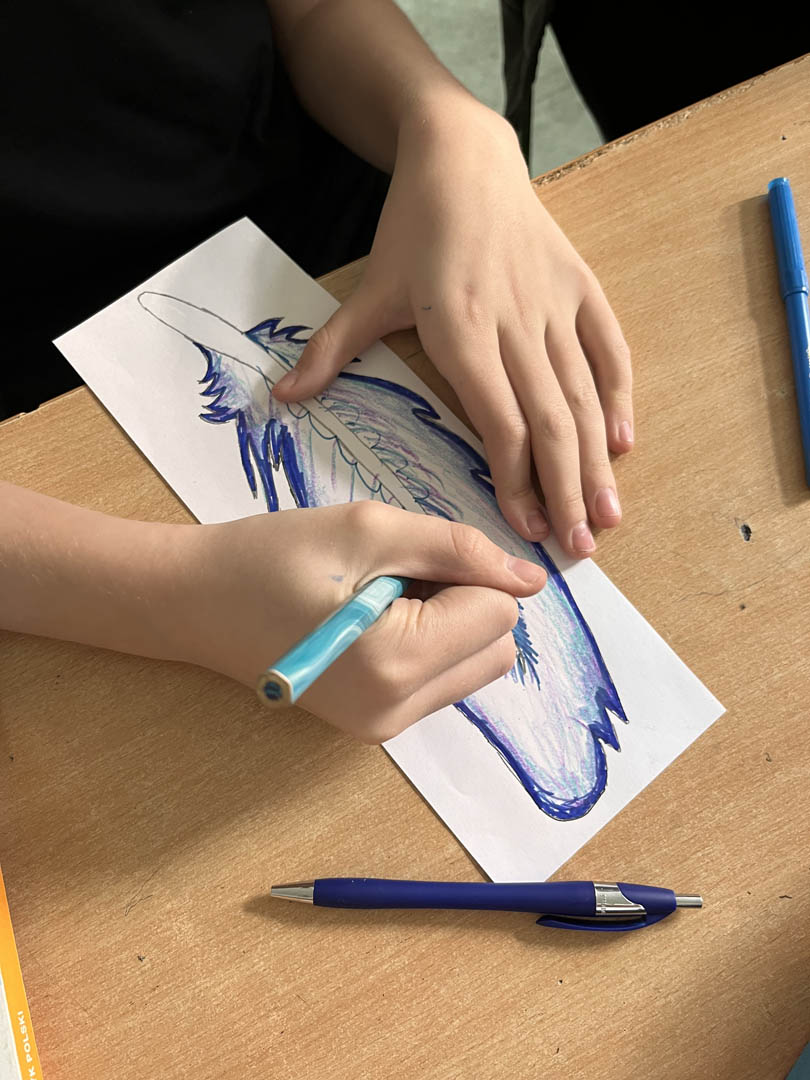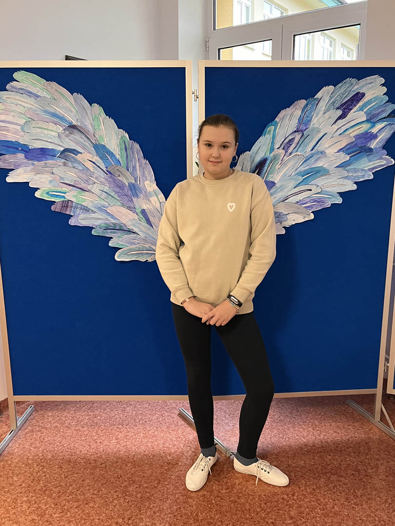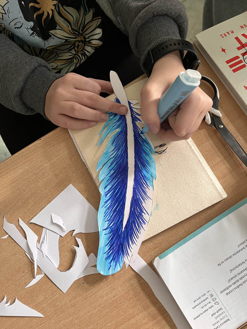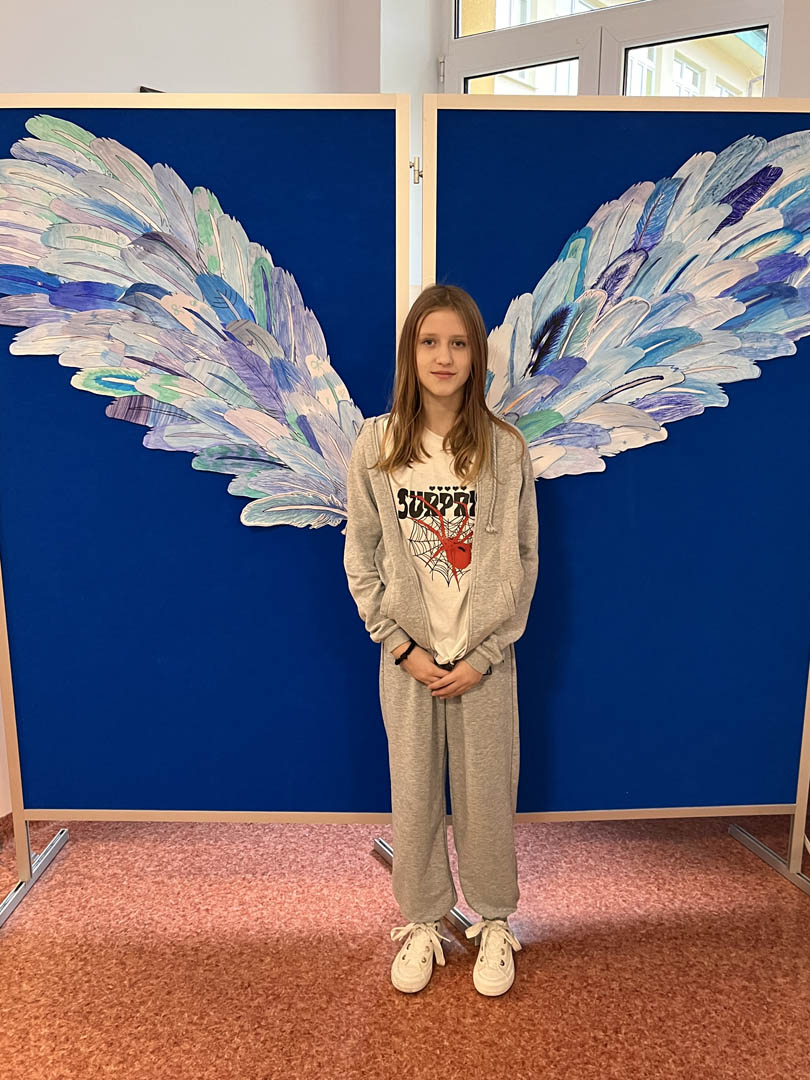 Uczniowie klas starszych przygotowali pióra we wszystkich odcieniach błękitu. Stworzyli z nich skrzydła mocy, które miały pokazać, że każde dziecko ma moc i siłę. Ponadto powstała fotobudka i każdy mógł zrobić sobie zdjęcie. Wykorzystano do tego aparat zakupiony w ramach projektu Laboratorium Przyszłości.