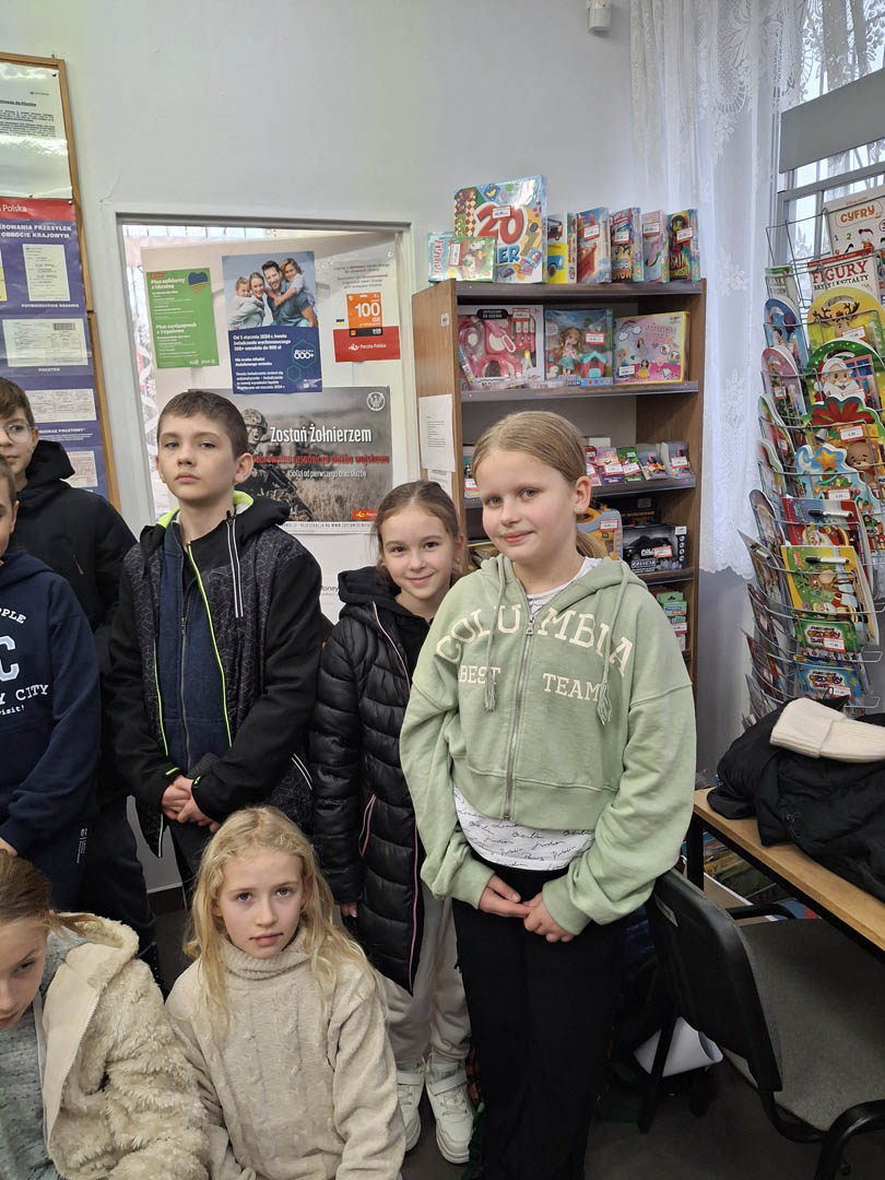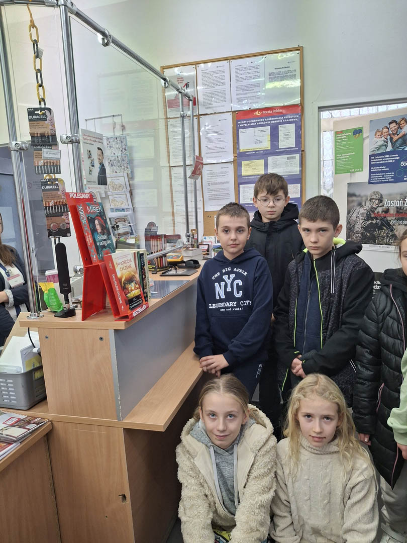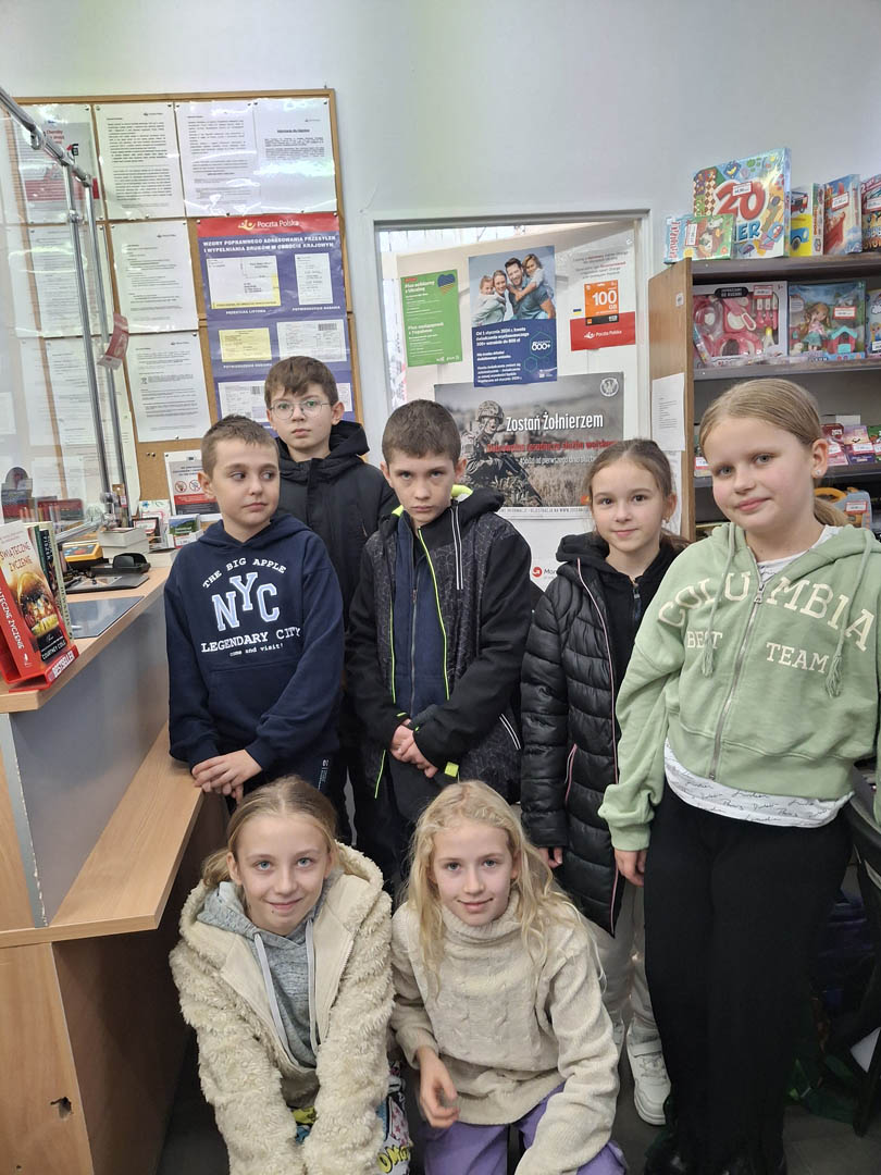 W roku szkolnym 2024/2025 w kl. V b realizowana jest innowacja matematyczna ,,Odkrywamy tajniki matematyki”. Jej celem jest poszerzenie umiejętności matematycznych z wykorzystaniem działań na liczbach w sposób twórczy i odkrywczy. Ma ona zachęcać i motywować uczniów do pogłębiania wiadomości o liczbach i ich zastosowaniu w życiu codziennym. Aby zgłębić nowe tajniki matematyki grupa uczniów wraz z nauczycielem udała się na wycieczkę do pobliskiej poczty w Siennicy Różanej. Pani tam pracująca opowiedziała nam, na czym polega jej praca, jakie umiejętności musi mieć osoba wykonująca ten zawód. Okazało się, że matematyka to nie tylko suche liczby i działania na szkolnej tablicy. Matematyka jest wszędzie, przydaje się również w pracy na poczcie, gdzie należy umieć liczyć pieniądze, wydawać resztę, dobierać wielkość opakowania do  gabarytów przesyłek, ważyć je i zapisywać etykiety. Należy również wiedzieć, jakie znaczki dobrać do odpowiedniego listu i ile one kosztują. Powinno się także nabyć umiejętność opisywania paczek pocztowych oraz listów poleconych lub priorytetowych. Przydaje się również umiejętność zapisywania liczb, kodów pocztowych i rachunków bankowych na przekazach pocztowych. Uczniowie poznali nowe słowa: nadawca, adresat, priorytet, gabaryt i awizo. Wycieczka okazała się zupełnie nowym doświadczeniem i po niej można przyznać ostatecznie: „Matematyka jest wszędzie”.