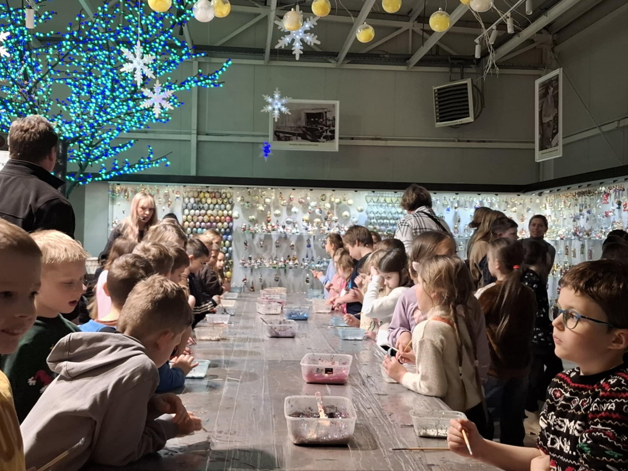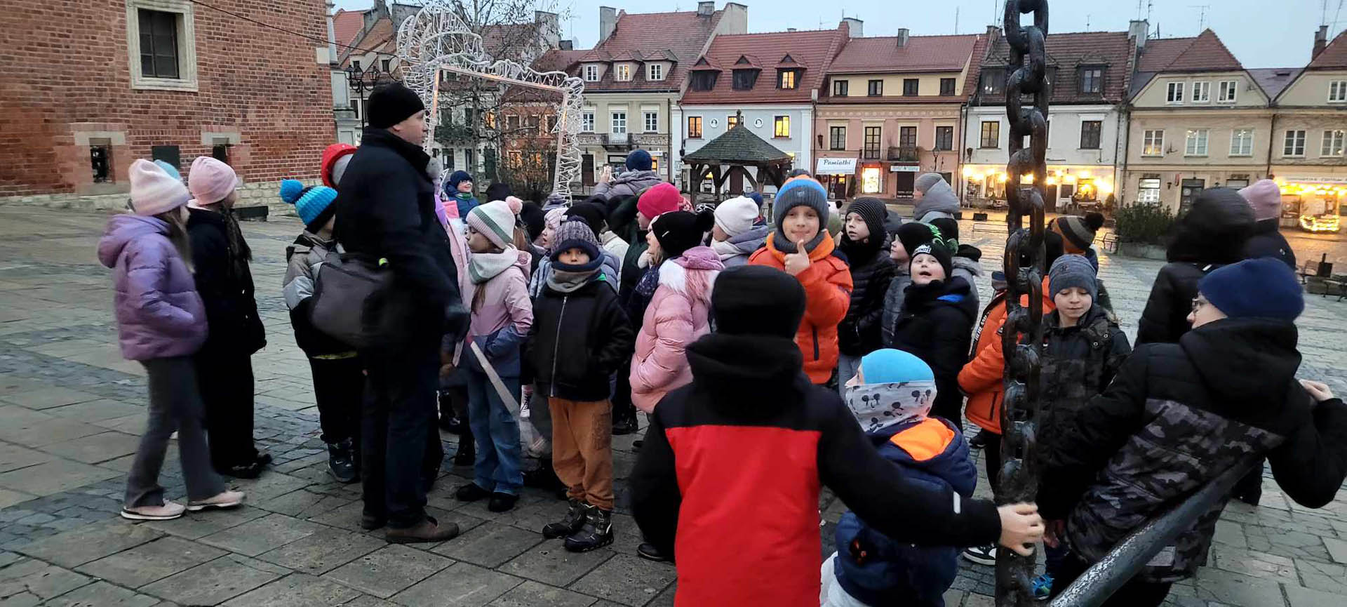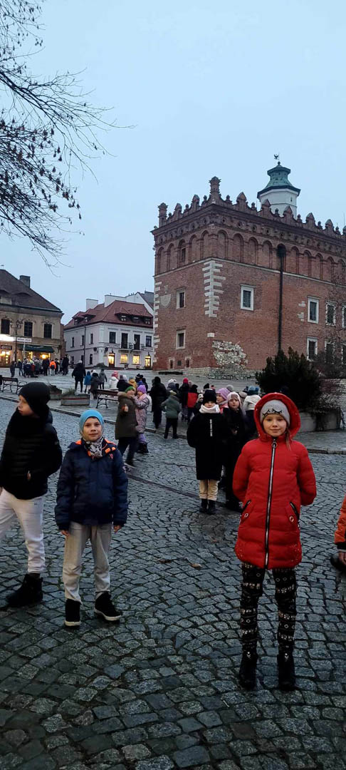 10 grudnia 2024 r. uczniowie klas I – III udali się na całodniową, fascynującą wycieczkę. Najpierw zwiedzali Fabrykę i Muzeum Bombek Choinkowych w Nowej Dębie. W tym niepowtarzalnym miejscu mogli poczuć wyjątkową atmosferę nadchodzących Świąt Bożego Narodzenia. Dzieci podziwiały bogatą ekspozycję dawnych i współczesnych ozdób choinkowych o unikatowych wzorach i kształtach. Poznały od podstaw proces powstawania i ręcznego zdobienia szklanych cudeniek. Uczestniczyły w warsztatach samodzielnego malowania bombek, podczas których miały szansę stworzenia własnej, niepowtarzalnej ozdoby. Uzupełnieniem były zakupy w firmowym sklepie. W dalszej części dnia wycieczka skierowała się do malowniczo ulokowanego na wzgórzach Sandomierza. Uczniowie zwiedzili miasto, podziwiając oryginalną zabudowę architektoniczną. Ciekawą atrakcją była wizyta w Zbrojowni Rycerskiej Chorągwi Rycerstwa Ziemi Sandomierskiej. Dzieci posłuchały interesującej opowieści o broni i dawnych tradycjach rycerskich, po czym mogły przymierzyć zbroję i wziąć do ręki różne narzędzia walki.