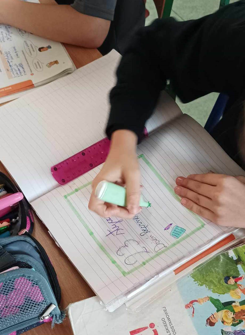 Dodatkowo na lekcjach techniki w klasach szóstych uczniowie przypomnieli reguły pisma technicznego, które kształtuje uważność i precyzję pisania.