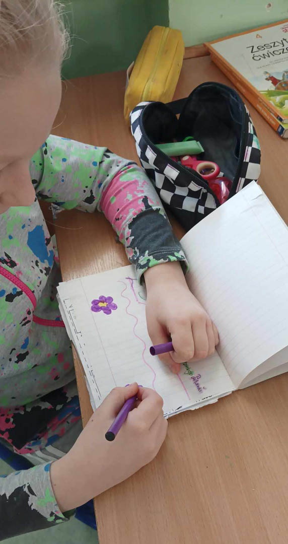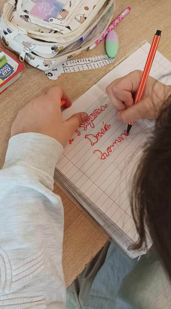 Z tej okazji uczniowie mieli okazję wykonać własne wizytówki, dbając o kaligrafię, estetykę oraz kreatywne ozdobienie swoich prac. Każdy starał się jak najlepiej odwzorować litery, a niektórzy dodali do swoich wizytówek ozdobne inicjały i ilustracje.