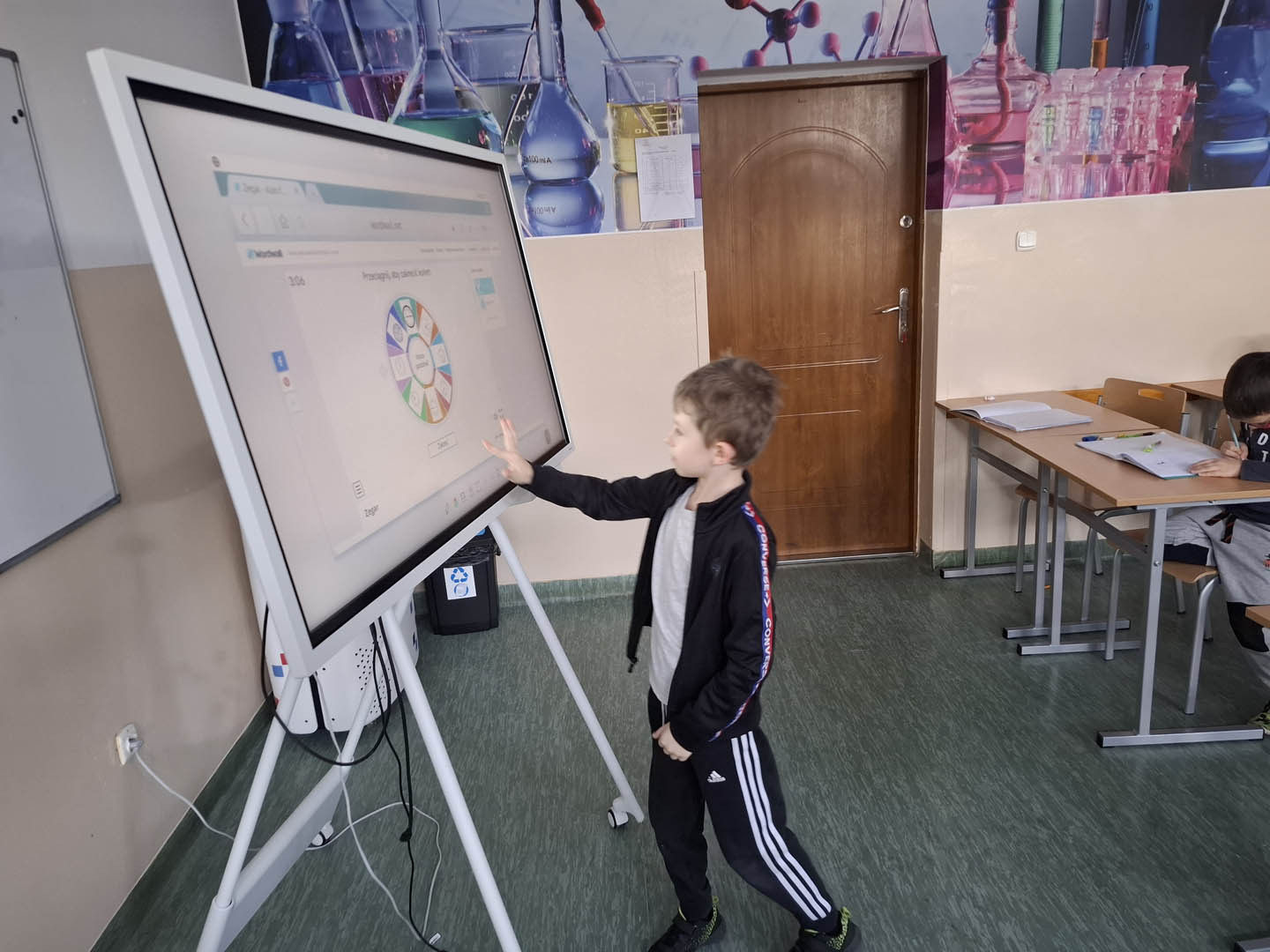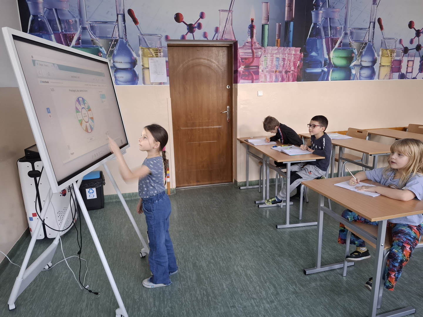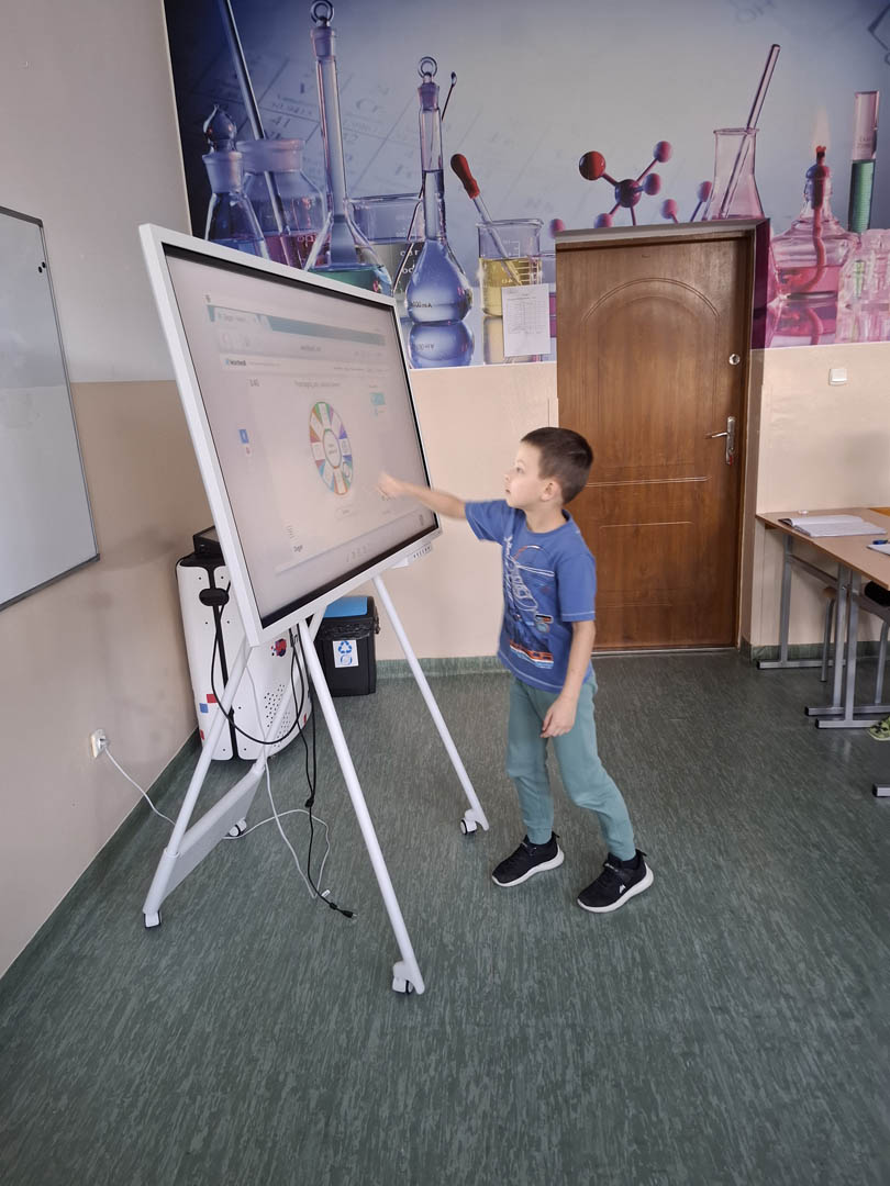Uczniowie klasy 1a zdobywają nowe umiejętności. Tym razem, przy pomocy nowoczesnych pomocy dydaktycznych. Dzieci, poprzez formę quizu i koła fortuny, uczyły się odczytywać pełne godziny na wirtualnych zegarach. Wcześniej, obejrzały filmik o dawnych metodach mierzenia czasu i historii powstania zegarów.
