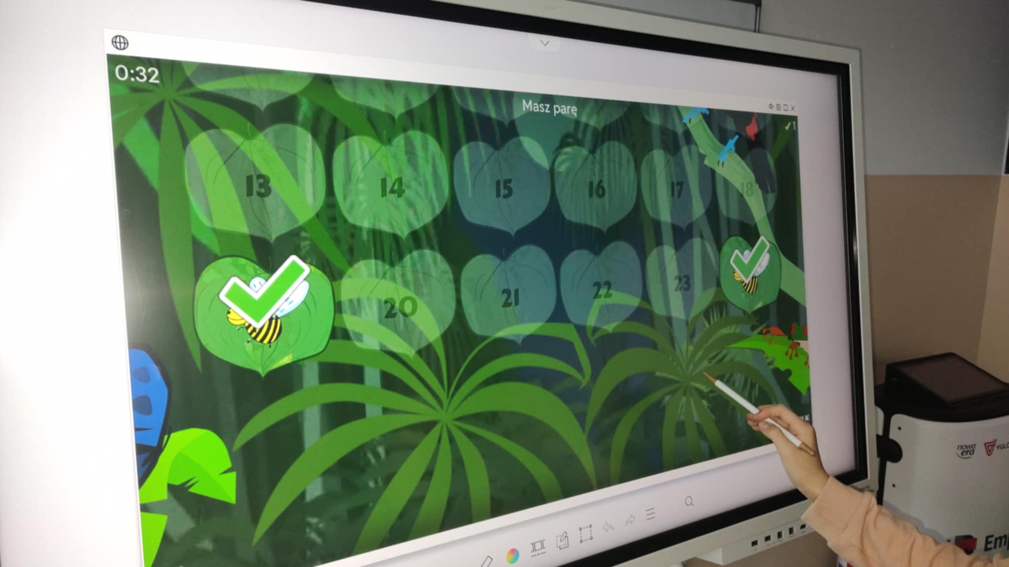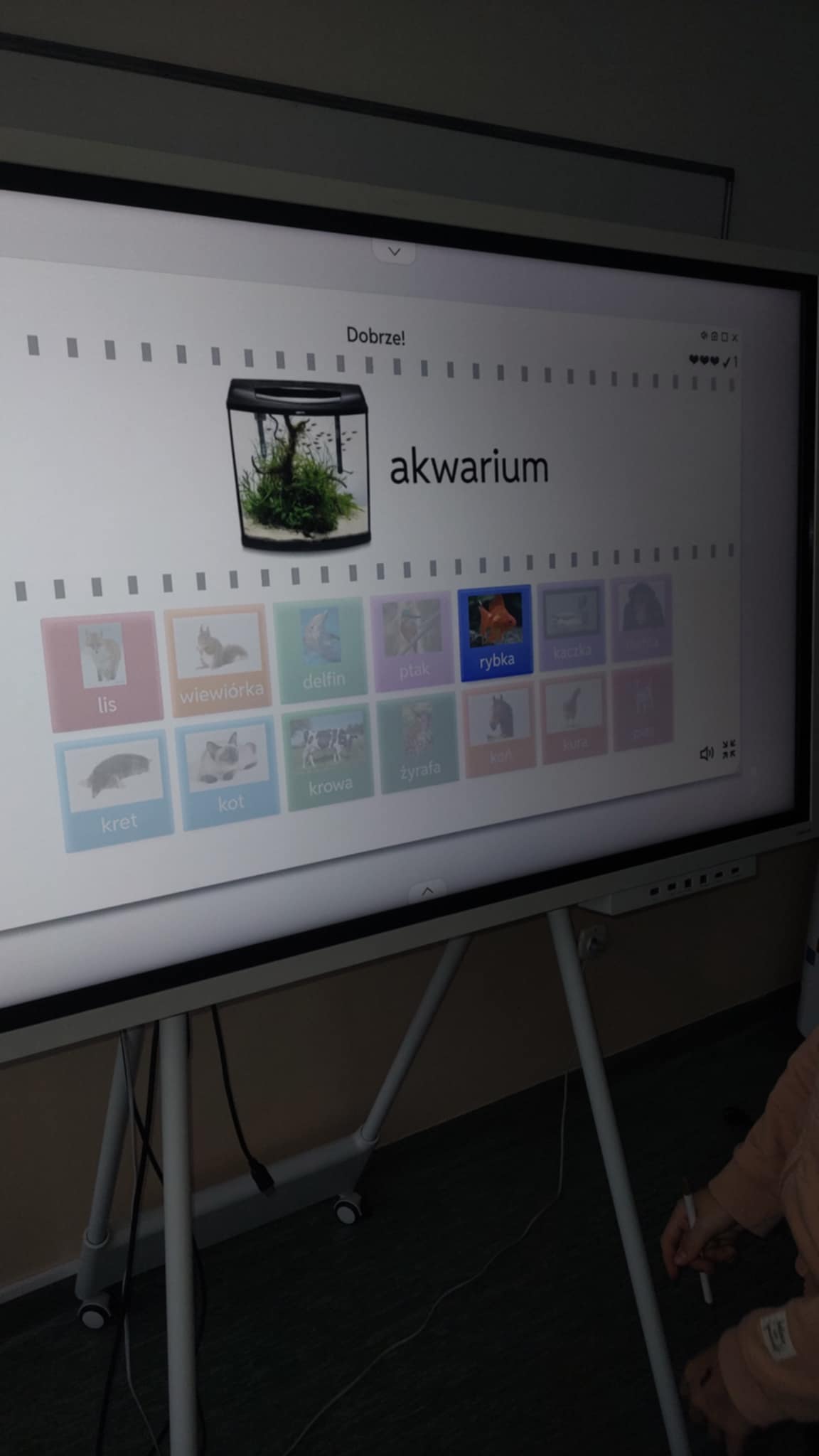 W ramach zajęć specjalistycznych korzystamy z tablicy interaktywnej. Dzieci usprawniają koordynację wzrokowo – ruchową oraz logiczne myślenie. W trakcie wykonywania zadań rozwijana jest również orientacja przestrzenna , pamięć i spostrzegawczość. Zajęcia są dla uczniów ze specjalnymi potrzebami edukacyjnymi ciekawym przeżyciem. Uczniowie chętnie angażują się w rozwiązywanie quizów czy łamigłówek.