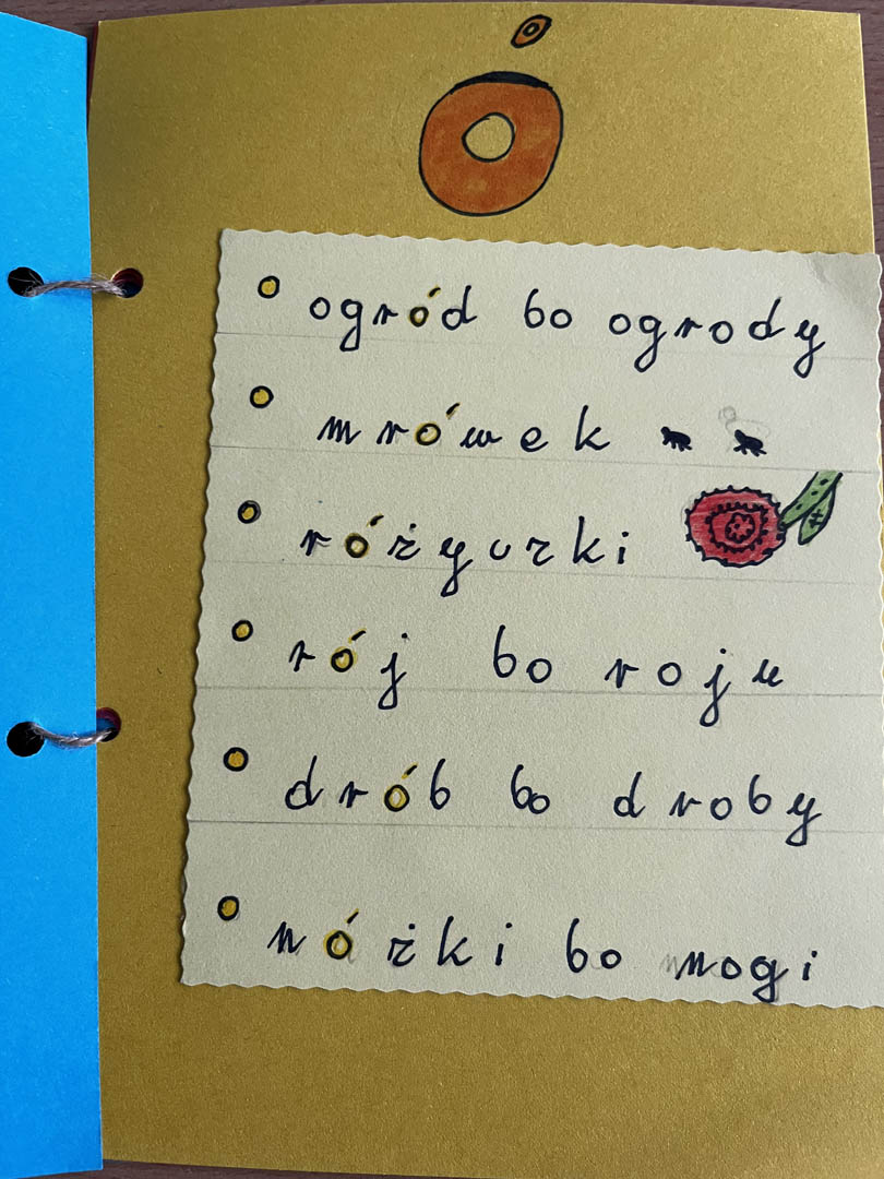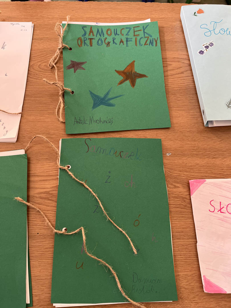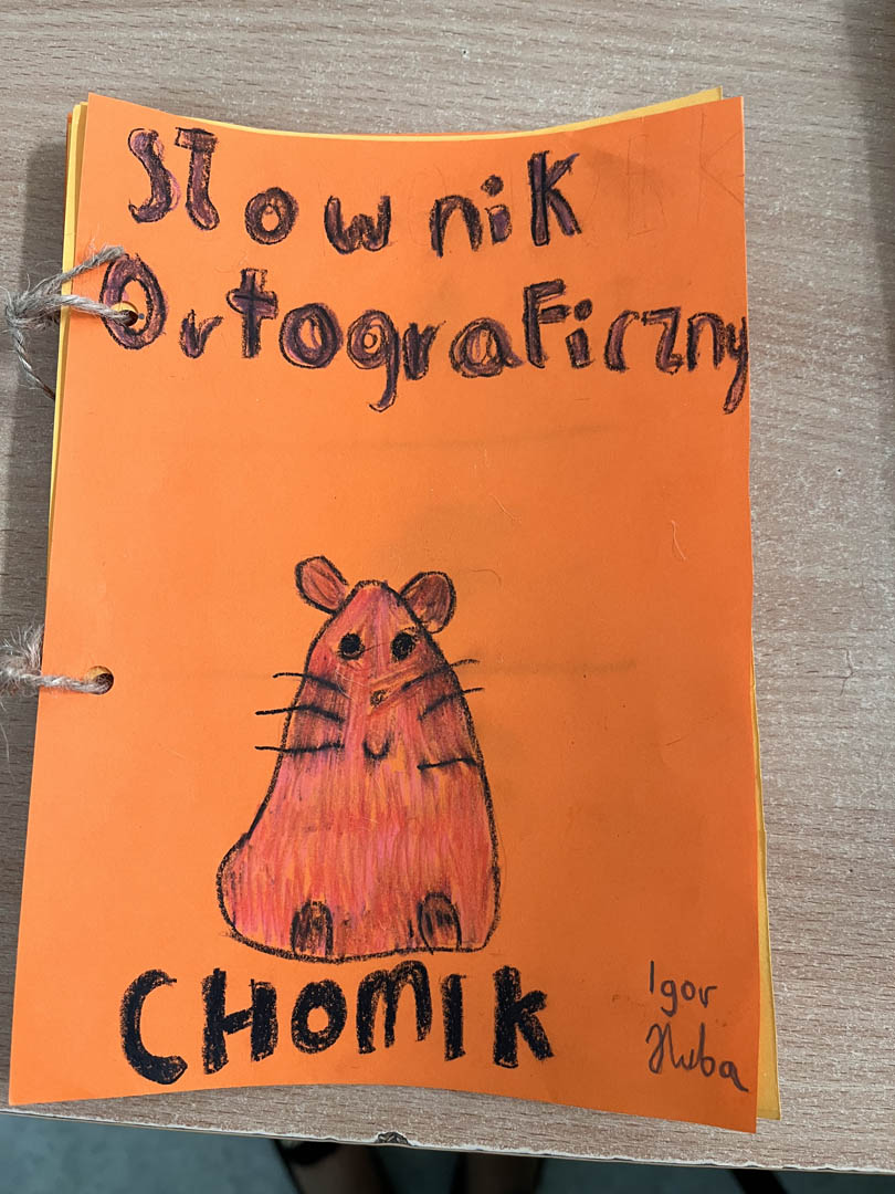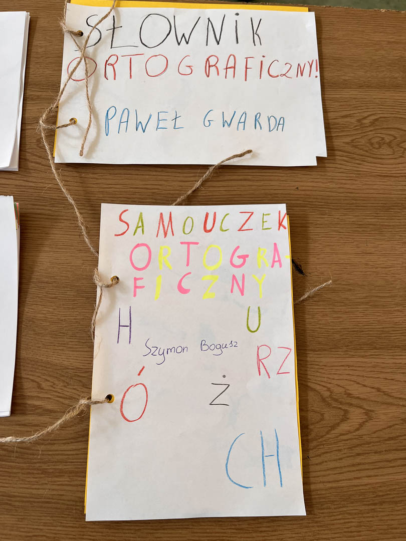 Każdy uczeń przygotował swój miniaturowy słownik, zawierający trudniejsze wyrazy, z którymi na co dzień bywają problemy. Nie zabrakło również kolorowych ilustracji, które ułatwiają zapamiętanie poprawnej pisowni.
