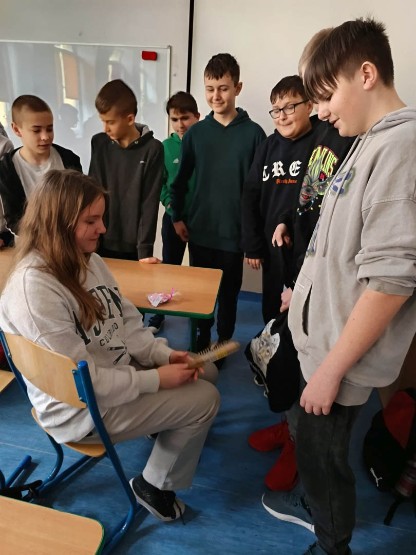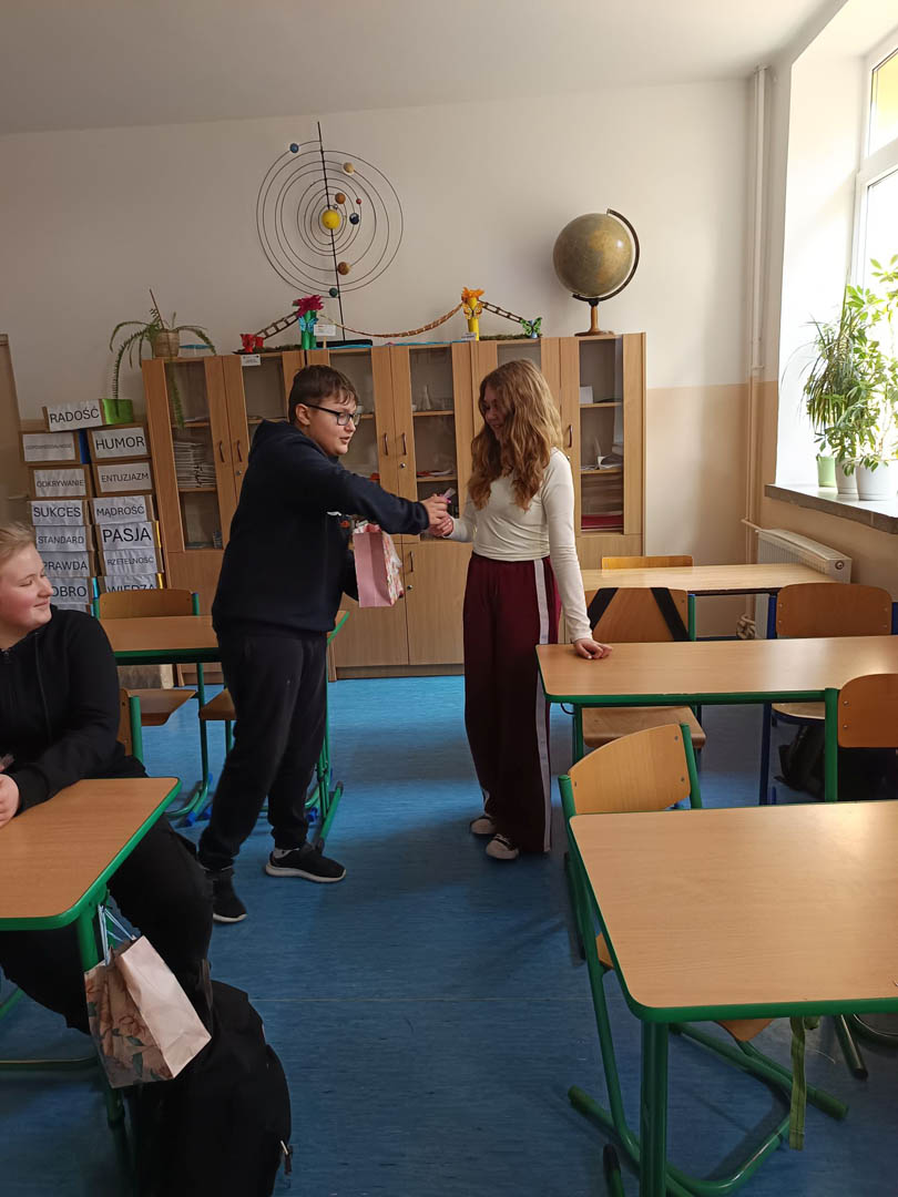 Tegoroczny Dzień Kobiet w naszej klasie był wyjątkowy, a to za sprawą dwunastu chłopców, którzy z pełnym zaangażowaniem przygotowali dla swoich koleżanek niezapomniane spotkanie. Zadbali o każdy szczegół – od serdecznych życzeń przez upominki zakupione przez Panią Karolinę Dzik oraz Panią Katarzynę Czaus, aż po kreatywne konkurencje, które dostarczyły wszystkim mnóstwa śmiechu i dobrej zabawy.