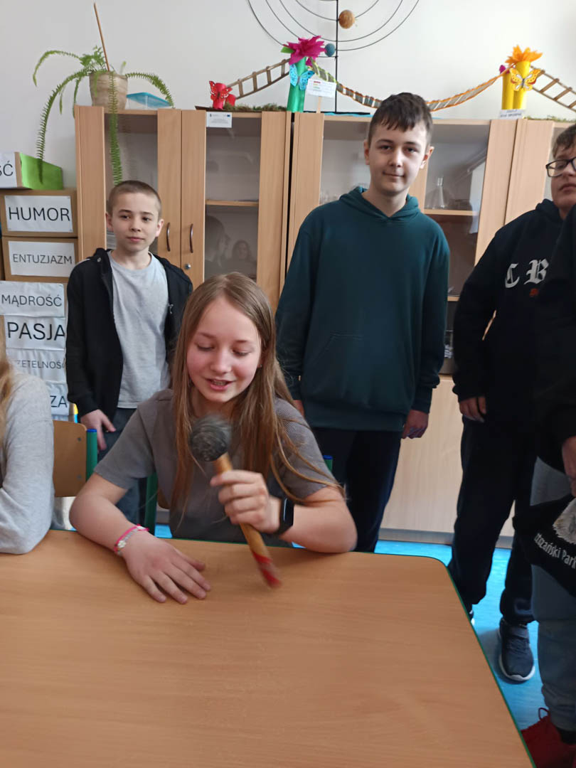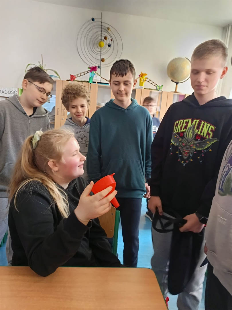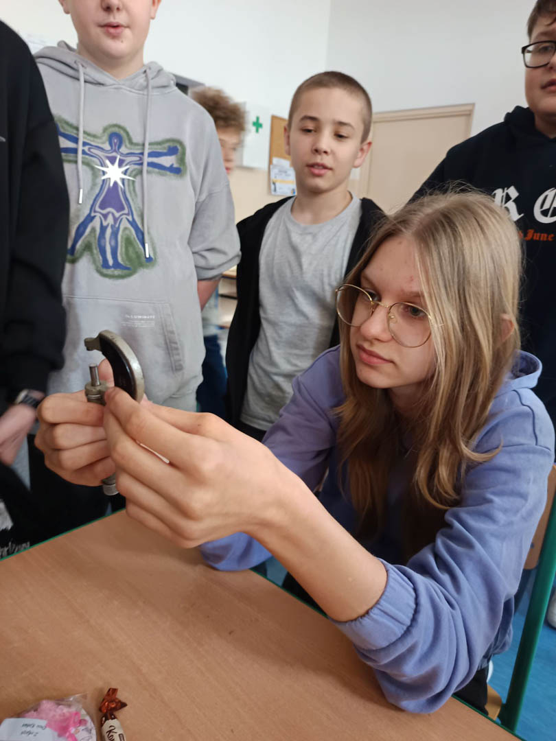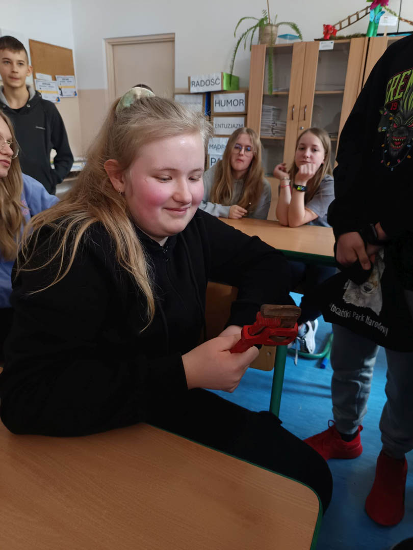 Pierwszym wyzwaniem dla dziewczyn było losowanie przedmiotów i określenie ich nazwy oraz zastosowania. Zadanie nie było łatwe, ponieważ chłopcy przygotowali narzędzia typowo „męskie” – można było zobaczyć kielnię, wkrętarkę, szpachlę, różnego rodzaju klucze, kątownik czy nawet mikrometr! Mimo trudności dziewczyny świetnie sobie poradziły, wykazując się kreatywnością i odwagą.
