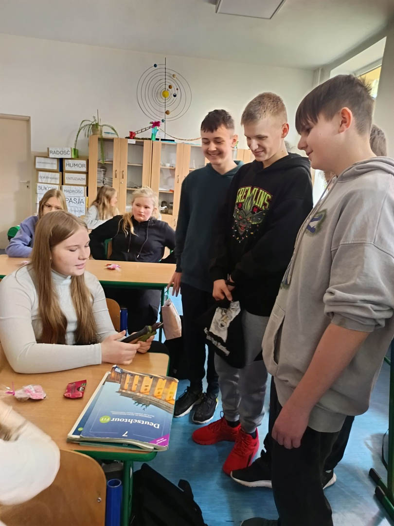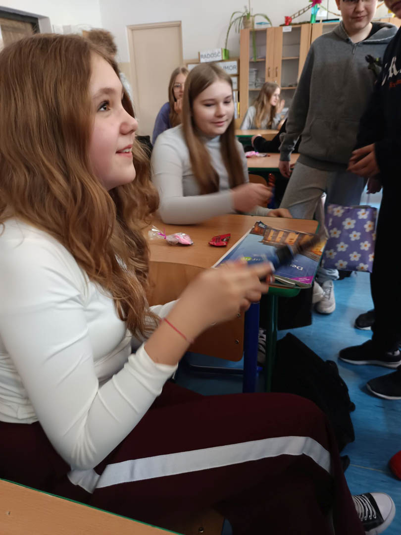 Druga część spotkania miała nieco lżejszy charakter. Chłopcy przygotowali quizy w aplikacji Kahoot, sprawdzające wiedzę dziewczyn na temat marek samochodów, znanych sportowców oraz popularnych melodii. Rywalizacja była zacięta, ale ostatecznie każda uczestniczka poradziła sobie znakomicie i w nagrodę otrzymała słodką niespodziankę.