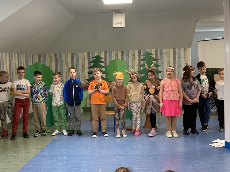 W ramach realizacji bloku tematycznego “Jesteśmy uczestnikami kultury” uczniowie klas drugich przygotowali i zaprezentowali przedstawienia teatralne, demonstrując swoje zaangażowanie oraz kreatywność. Klasa 2a przedstawiła spektakl pt. “Leśna opowieść”, koncentrujący się na tematyce ochrony lasów i zwierząt. Uczniowie nie tylko opanowali swoje role, ale również zadbali o odpowiednie stroje, co wzbogaciło wizualny aspekt przedstawienia. Klasa 2b zaprezentowała teatr cieni zatytułowany “Zaczarowana filiżanka”. Scenariusz tej sztuki został stworzony przez uczennicę Ninę Tajer. Uczniowie samodzielnie przygotowali kukiełki oraz podzielili między siebie role, co świadczy o ich inicjatywie i zdolnościach organizacyjnych. Obie klasy miały okazję 24 marca wystąpić przed publicznością składającą się z przedszkolaków z Przedszkola Gminnego a następnie przed uczniami klas pierwszych i trzeciej. Takie wydarzenia nie tylko rozwijają umiejętności artystyczne uczniów, ale również uczą ich współpracy, odpowiedzialności oraz pozwalają na aktywne uczestnictwo w życiu kulturalnym szkoły.