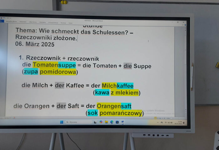 4 marca 2025 r. uczniowie klasy siódmej uczestniczyli w lekcji języka niemieckiego z wykorzystaniem sprzętu z programu Laboratoria Przyszłości. Zajęcia miały interaktywny charakter, co ułatwiło przyswajanie nowych zasad gramatycznych: tworzenia rzeczowników złożonych. Nowoczesne technologie połączone z nauką języka obcego sprawiły, że uczniowie mogli w kreatywny sposób rozwijać swoje umiejętności i lepiej zapamiętać materiał. Taka nauka to […]
