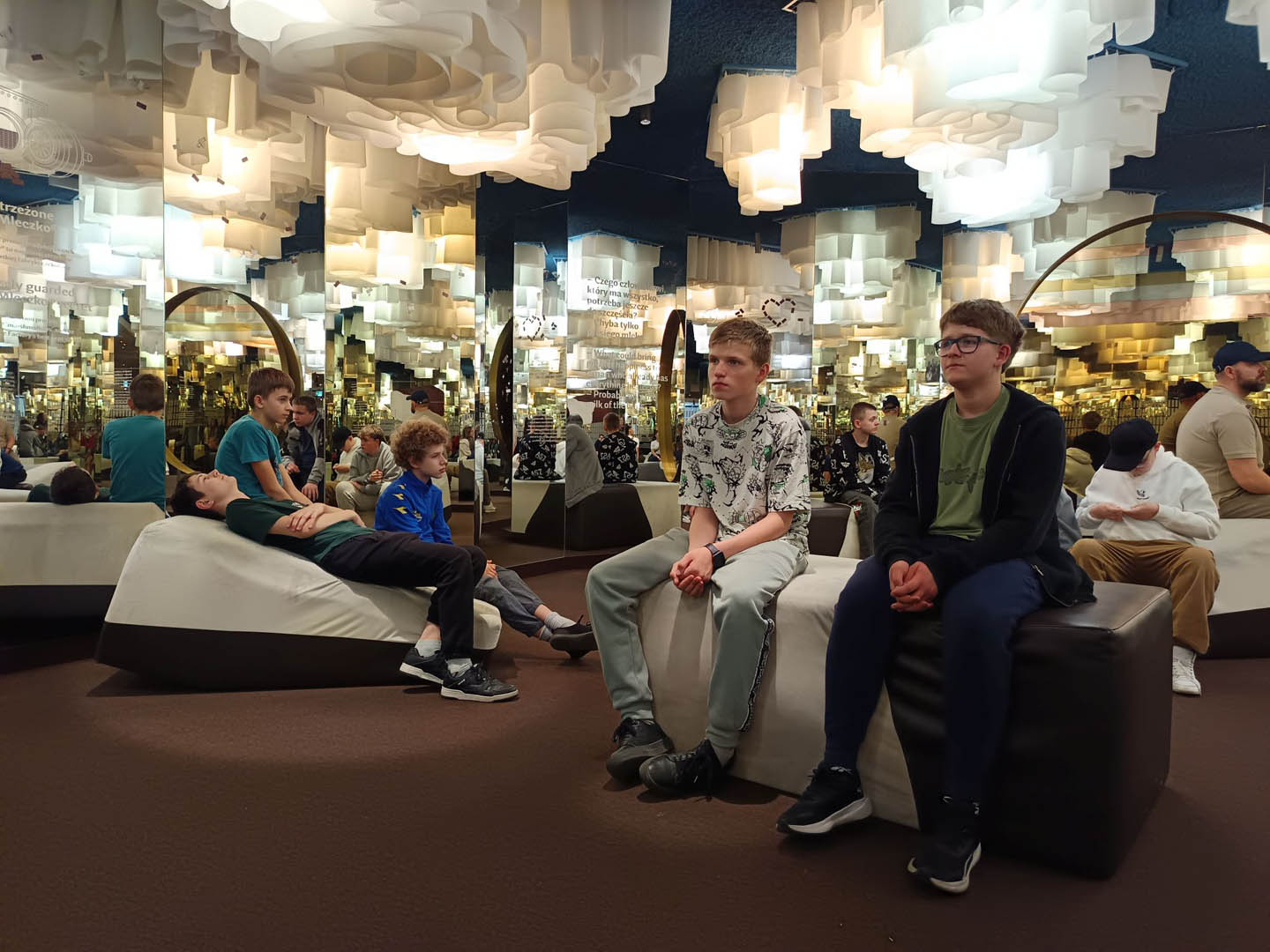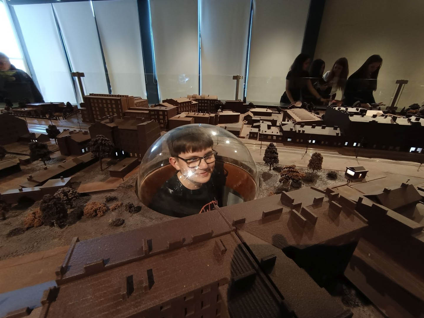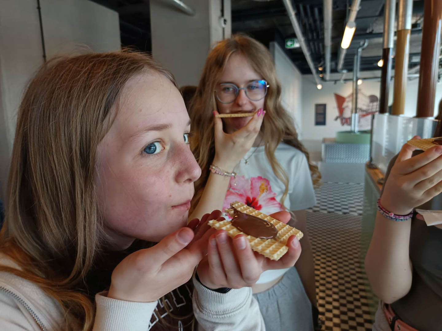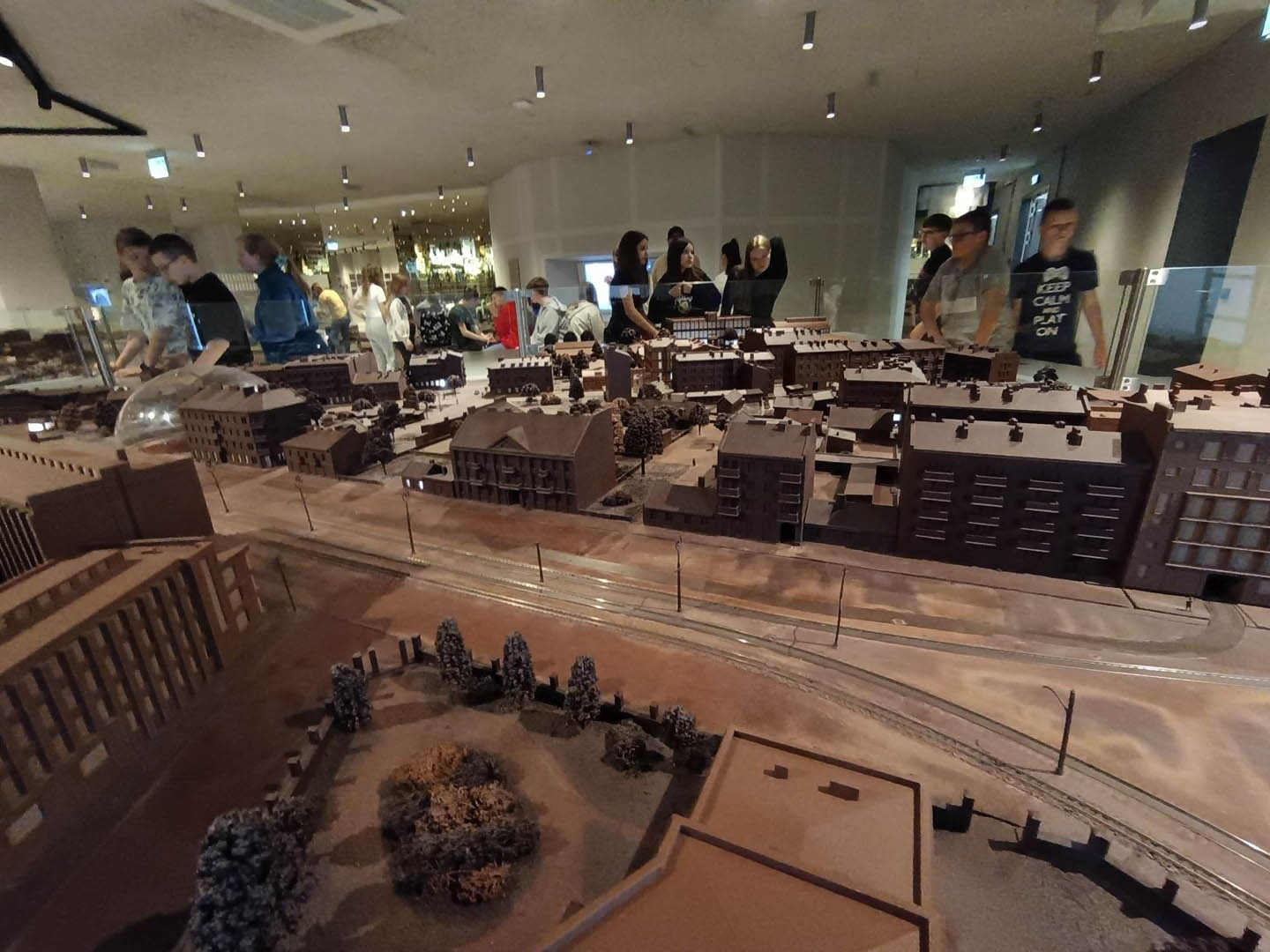 A po obiedzie przyszedł czas na deser. A jeśli deser, to tylko czekoladowy z Fabryki E. Wedla. Znajduje się tam Muzeum Czekolady, które było kolejnym punktem programu wycieczki. Uczniowie dowiedzieli się, jak krok po kroku produkuje się ten przysmak, sami mogli uruchomić wirtualną linię produkcyjną, posmakować zarówno surowych ziaren kakaowca, jak i różnych rodzajów wyrobów. Sprawdzili się nawet w roli projektantów opakowań słodyczy. Po wysiłku (Muzeum Czekolady daje możliwość odbierania wrażeń wszystkimi zmysłami) mogli odpocząć w sali relaksu na pufach w kształcie… ptasiego mleczka. Na zakończenie wycieczki podsumowali swoje wrażenia, podziwiając panoramę miasta z tarasu widokowego na dachu fabryki.
