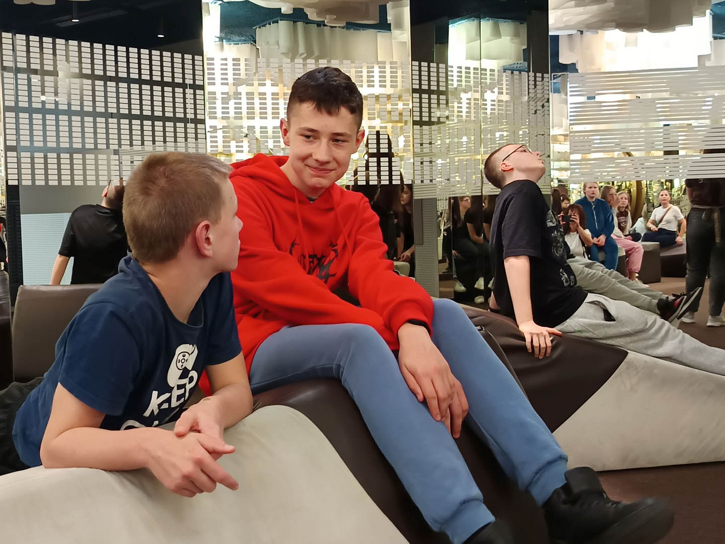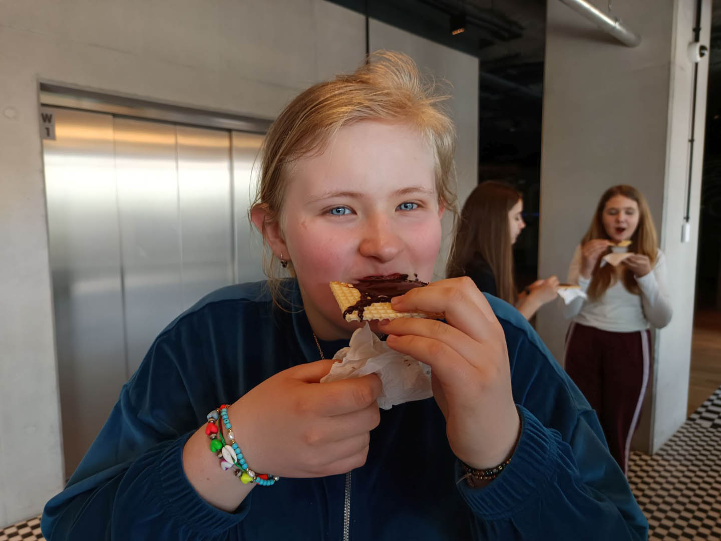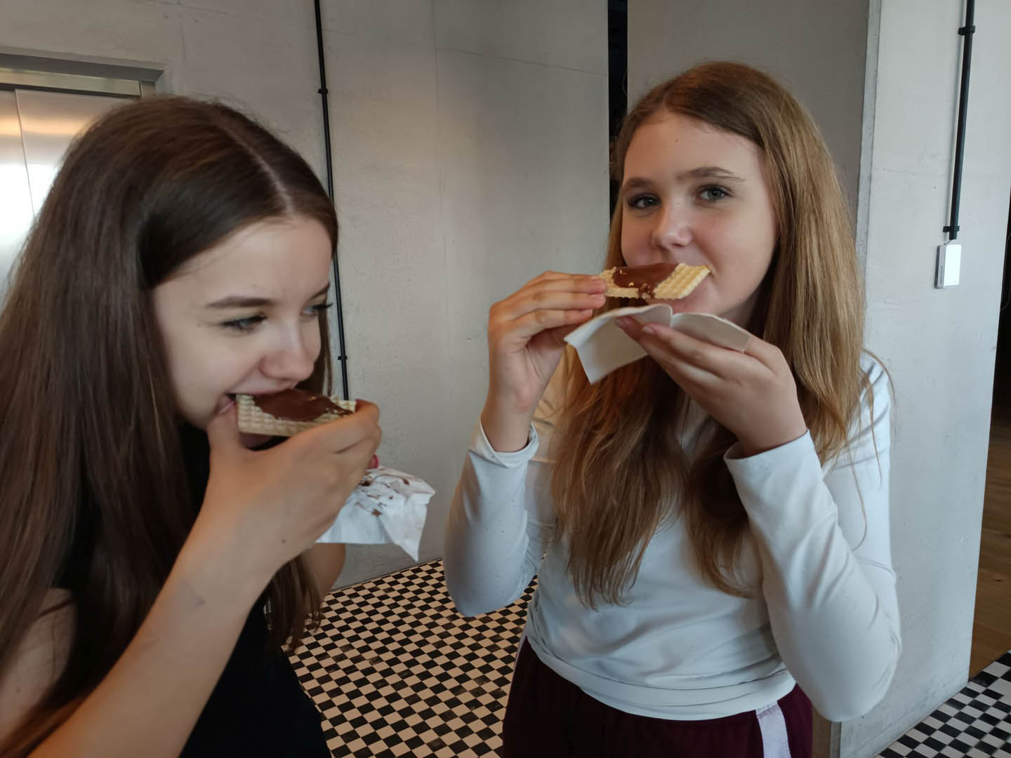 A po obiedzie przyszedł czas na deser. A jeśli deser, to tylko czekoladowy z Fabryki E. Wedla. Znajduje się tam Muzeum Czekolady, które było kolejnym punktem programu wycieczki. Uczniowie dowiedzieli się, jak krok po kroku produkuje się ten przysmak, sami mogli uruchomić wirtualną linię produkcyjną, posmakować zarówno surowych ziaren kakaowca, jak i różnych rodzajów wyrobów. Sprawdzili się nawet w roli projektantów opakowań słodyczy. Po wysiłku (Muzeum Czekolady daje możliwość odbierania wrażeń wszystkimi zmysłami) mogli odpocząć w sali relaksu na pufach w kształcie… ptasiego mleczka. Na zakończenie wycieczki podsumowali swoje wrażenia, podziwiając panoramę miasta z tarasu widokowego na dachu fabryki.