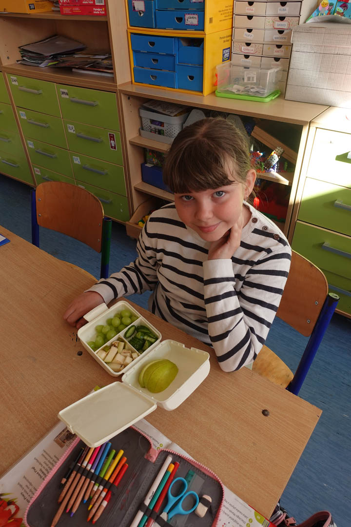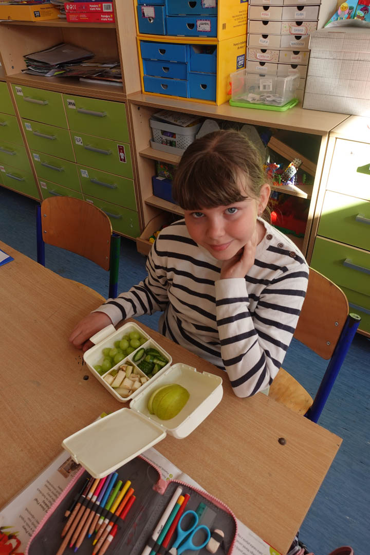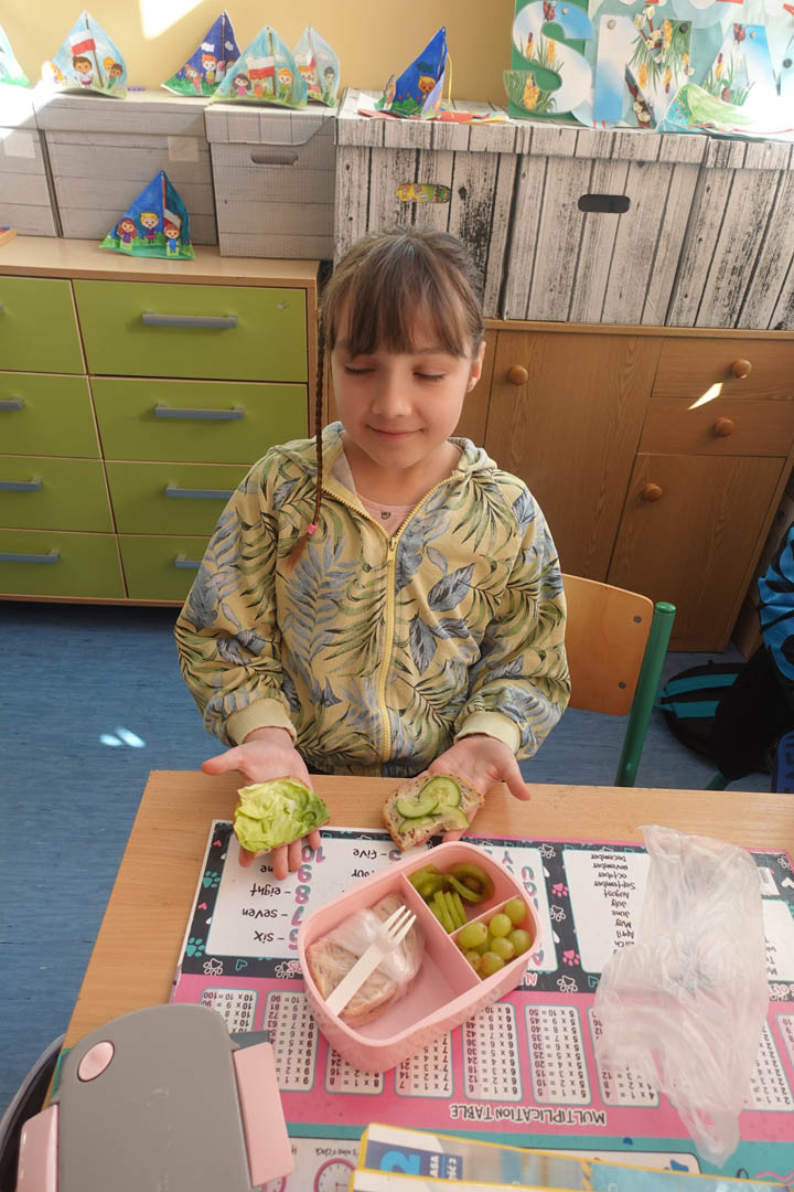 W naszej szkole pierwsza  Kolorowa Środa upłynęła pod znakiem koloru zielonego! Tego dnia dzieci z wszystkich klas przyniosły do szkoły zielone, zdrowe przekąski – pełne witamin i smaku. Na stołach królowały ogórki, sałata, kiwi, zielone jabłka, winogrona, a nawet pyszny szpinak i koktajle!