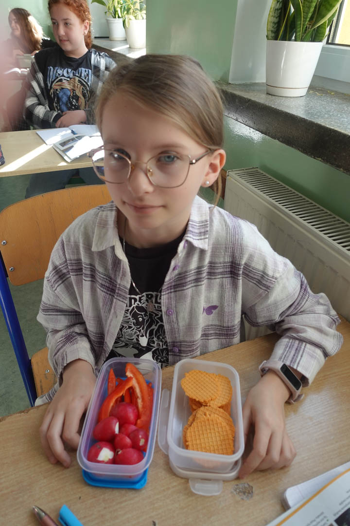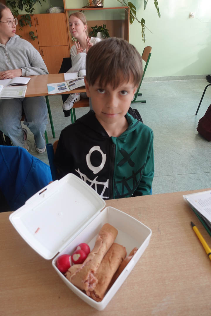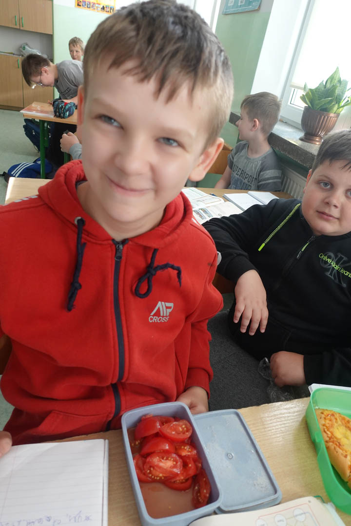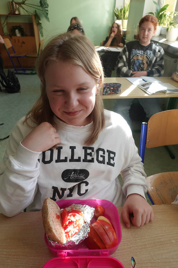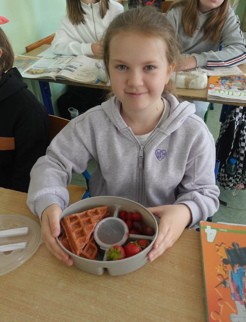 Za nami kolejna Kolorowa Środa, która tym razem rozświetliła szkolne sale soczystym kolorem czerwonym! Uczniowie przynieśli ze sobą zdrowe przekąski w odcieniach czerwieni – na talerzach pojawiły się m.in. truskawki, maliny, jabłka, pomidory, papryka, arbuzy oraz grejfruty.