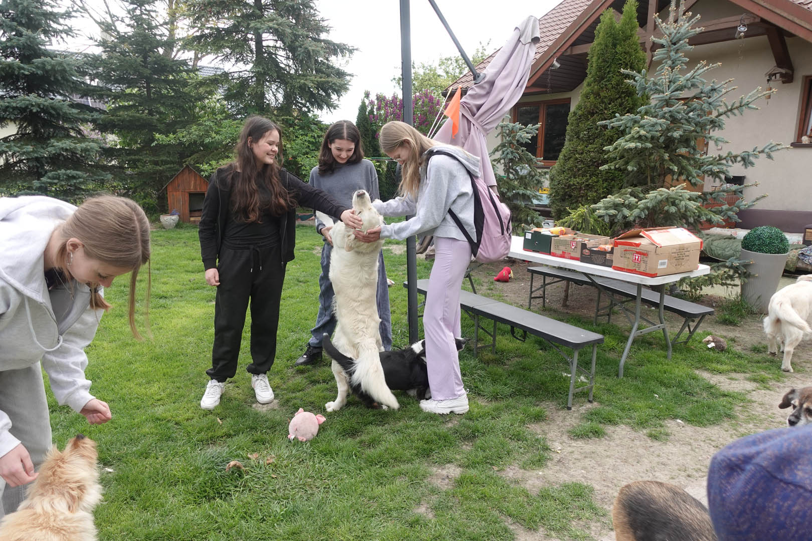 W dniu 8.05.2025 r. niewielka grupa wolontariuszy ze SKW odwiedziła hospicjum, czyli miejsce, gdzie opiekują się osobami lub zwierzętami w końcowym etapie ich życia, zapewniając im komfort, opiekę i wsparcie. W tym przypadku była to wizyta w Fundacji  Hospicjum Starego Psa u Psiej Mamy, gdzie przekazaliśmy zebraną karmę.  Większość piesków  jest już bardzo wiekowa i wymaga szczególnej troski. Psy były spokojne i oswojone z otoczeniem. Pani Psia Mama jest niezwykle czuła i troskliwa, dba o swoich podopiecznych z ogromną miłością i cierpliwością. Widać, że pieski czują się bezpiecznie i są kochane. W trakcie wizyty rozmawialiśmy o potrzebach i planach na dalszą opiekę, a także o tym, jak ważne jest, by zapewnić psom komfort i spokój w tych trudnych dla nich chwilach.