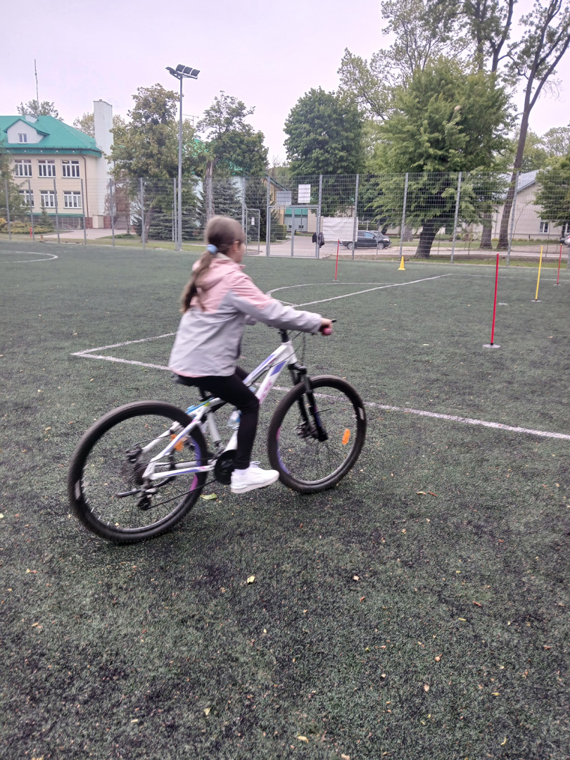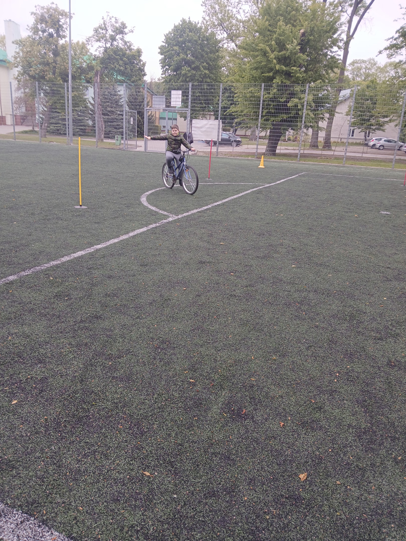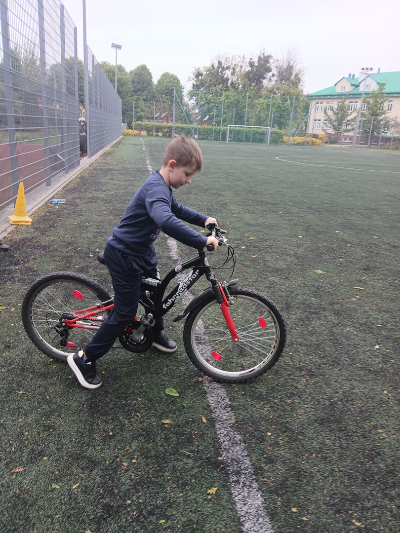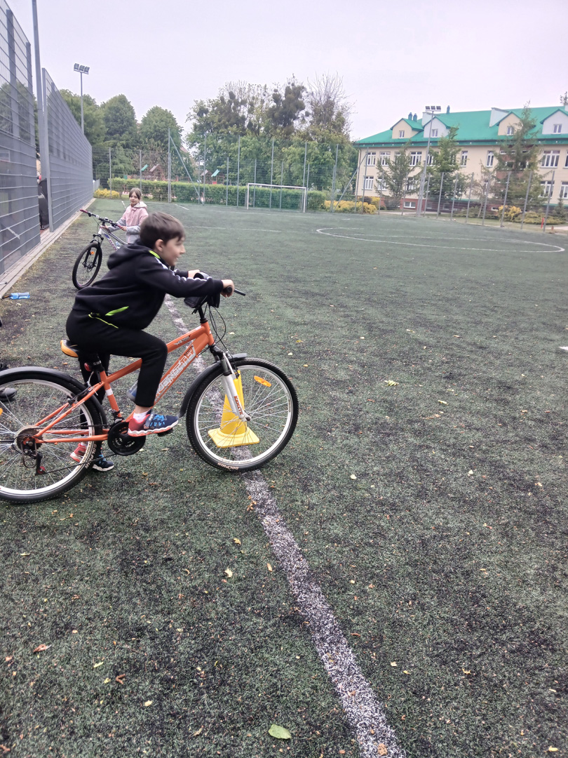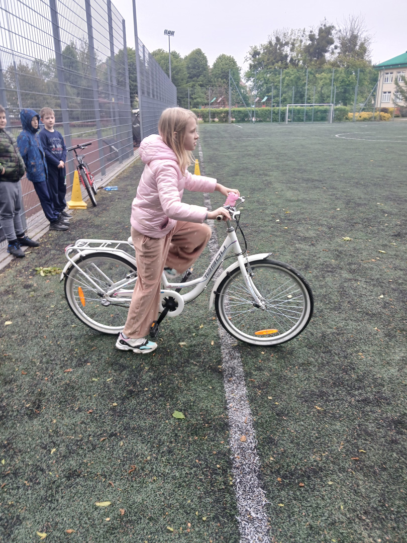 Czwartoklasiści przystąpili do pierwszego ważnego egzaminu w swoim życiu – egzaminu na kartę rowerową. To nie tylko test wiedzy i umiejętności, ale też pierwszy poważny krok w stronę samodzielności – i to na dwóch kółkach! Najpierw musieli wykazać się znajomością zasad ruchu drogowego, obsługi roweru i zasad udzielania pierwszej pomocy przedlekarskiej. Wszyscy, którzy zdali część teoretyczną egzaminu, przystąpili do części praktycznej. Polegała ona na sprawdzeniu umiejętności jazdy slalomem, po łuku, po ósemce, włączania się do ruchu, stosowania do ustawionych znaków drogowych.