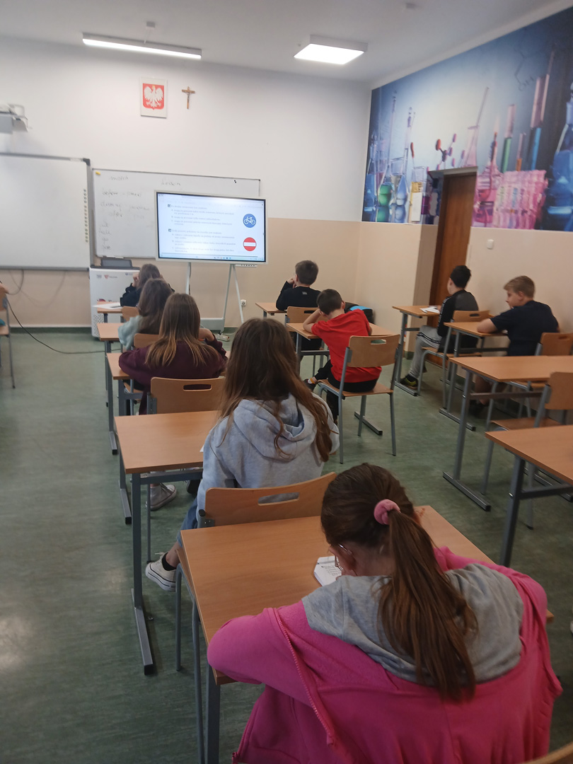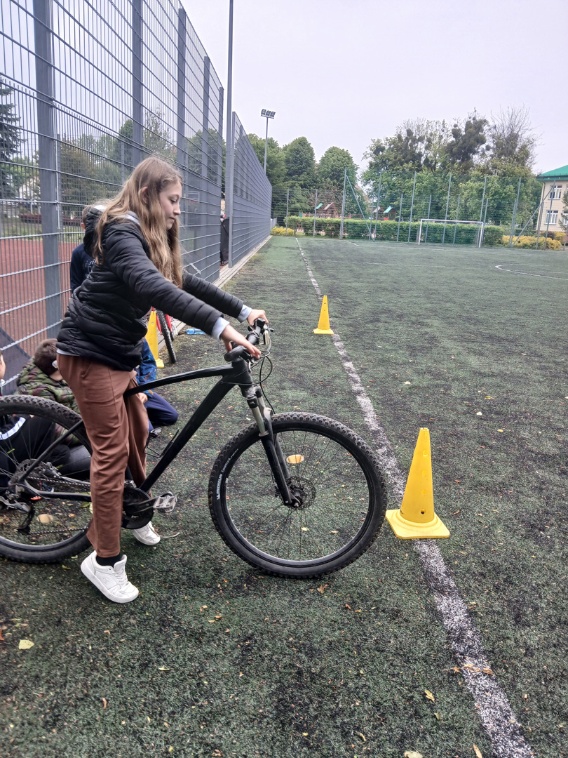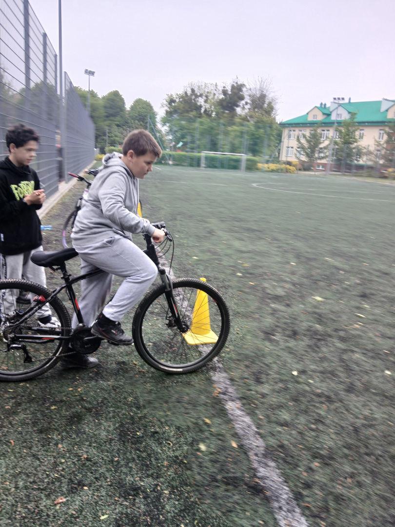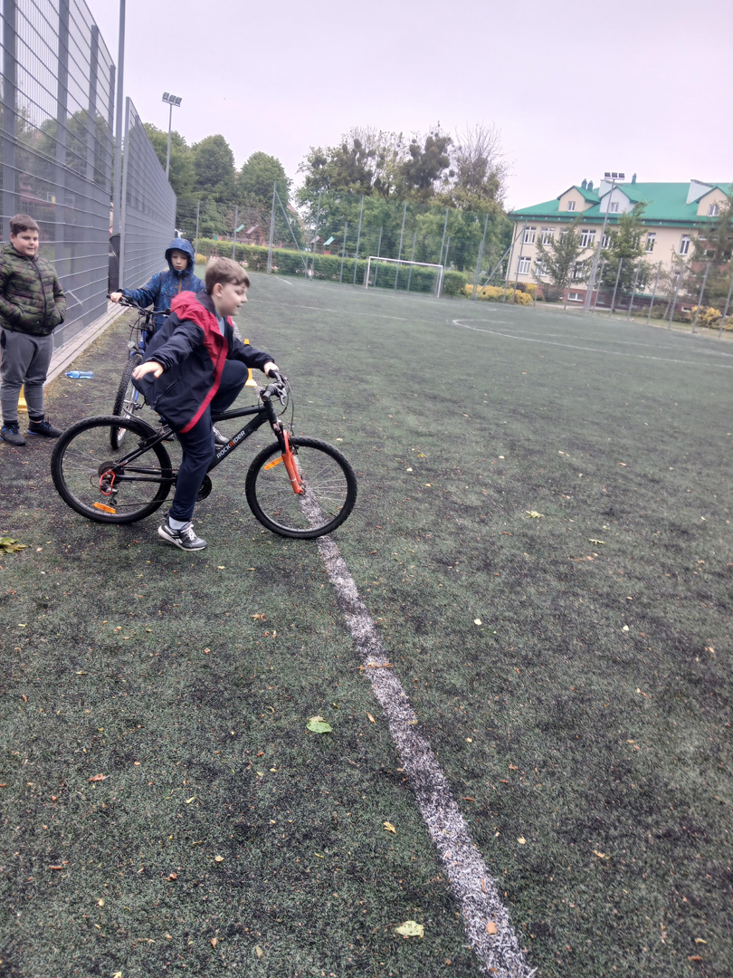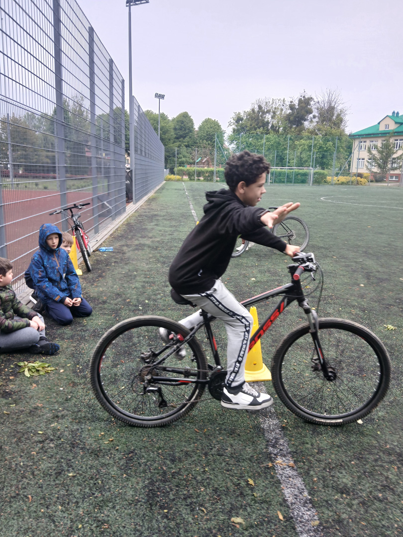 Czwartoklasiści przystąpili do pierwszego ważnego egzaminu w swoim życiu – egzaminu na kartę rowerową. To nie tylko test wiedzy i umiejętności, ale też pierwszy poważny krok w stronę samodzielności – i to na dwóch kółkach! Najpierw musieli wykazać się znajomością zasad ruchu drogowego, obsługi roweru i zasad udzielania pierwszej pomocy przedlekarskiej. Wszyscy, którzy zdali część teoretyczną egzaminu, przystąpili do części praktycznej. Polegała ona na sprawdzeniu umiejętności jazdy slalomem, po łuku, po ósemce, włączania się do ruchu, stosowania do ustawionych znaków drogowych.