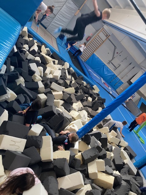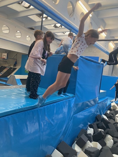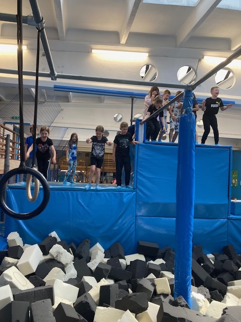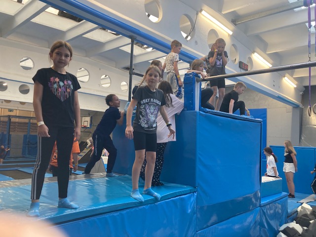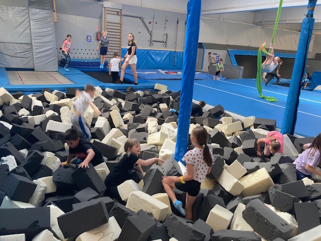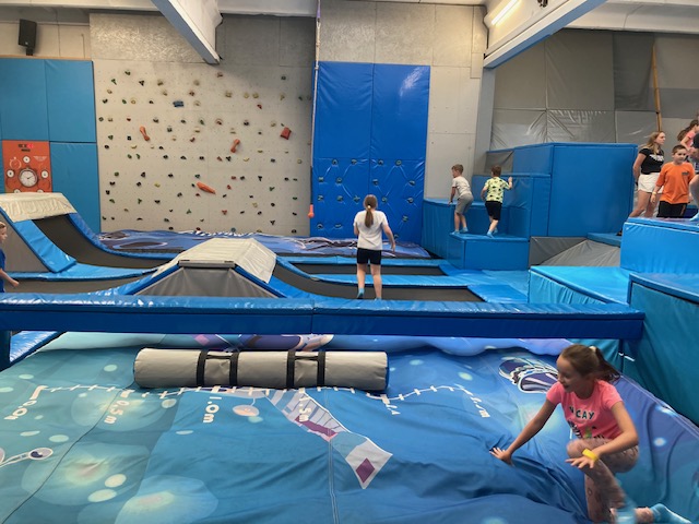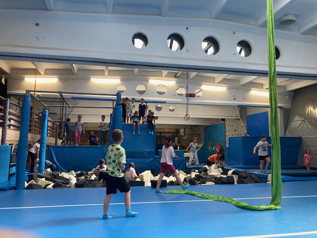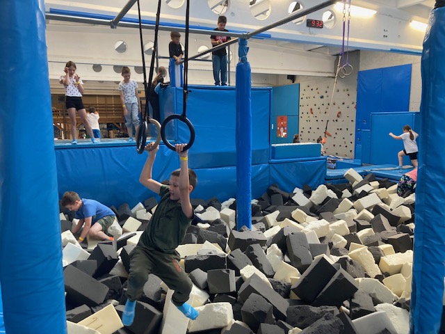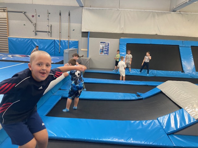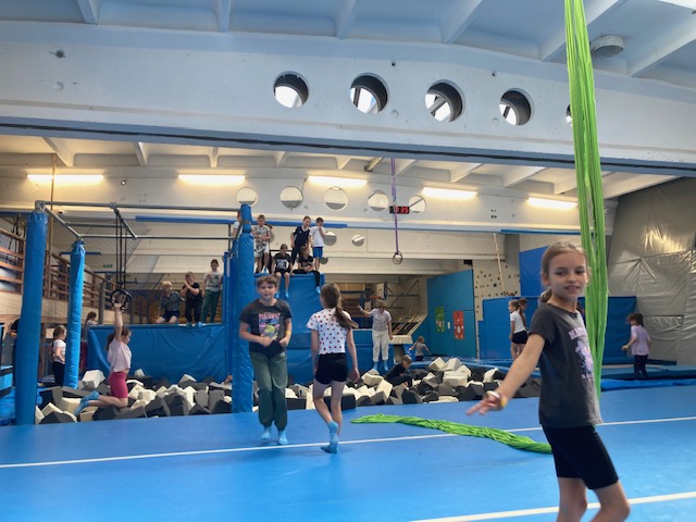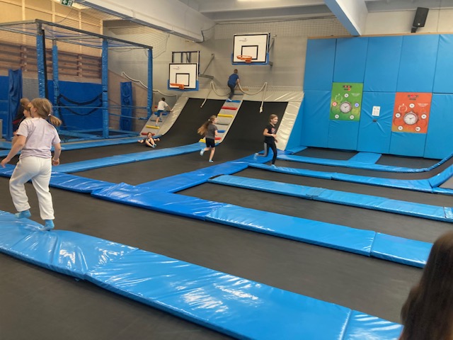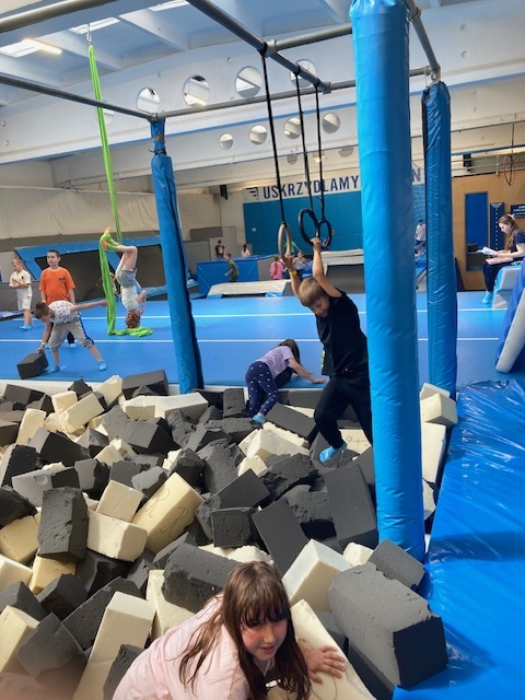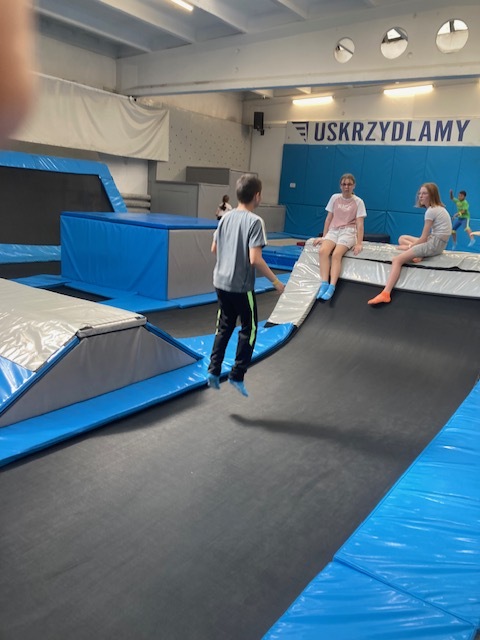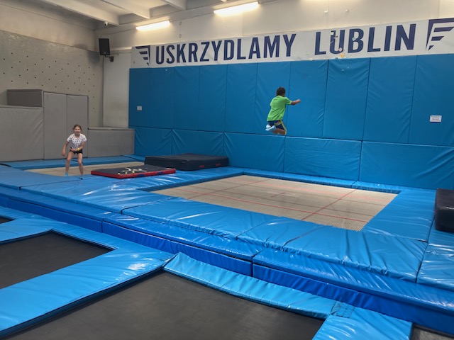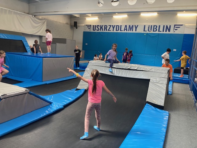 Pierwszym punktem programu była wizyta w Parku Trampolin „Strefa Wysokich Lotów” przy ul. Cisowej 11 w Lublinie. Obiekt oferuje różnorodne atrakcje, takie jak trampoliny sportowe, baseny z gąbkami, strefy parkour i ninja, ścianki wspinaczkowe oraz strefy dmuchane. Dzieci miały okazję do aktywnej zabawy, rozwijania sprawności fizycznej i integracji z rówieśnikami