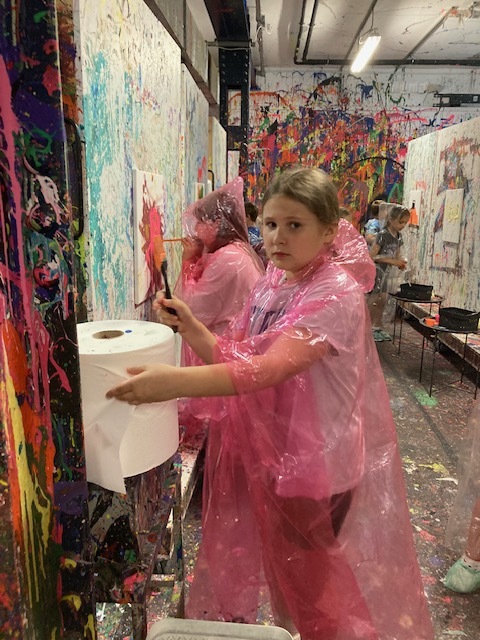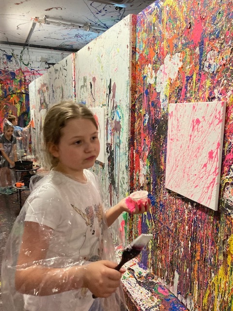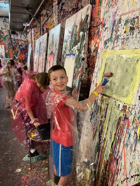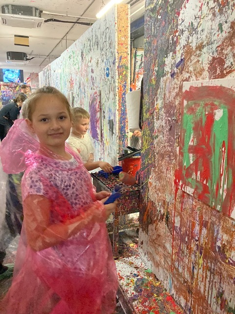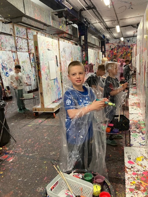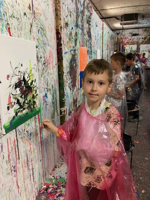 Drugim etapem wycieczki były warsztaty plastyczne w kreatywnym studiu „Pigcasso”, zlokalizowanym na terenie Lubelskich Tytoni. Uczniowie uczestniczyli w sesjach malowania, wykorzystując różnorodne techniki, takie jak chlapanie farbą, dmuchanie słomką, malowanie pędzlem przy użyciu farb fluorescencyjnych. Każde dziecko stworzyło własne dzieło sztuki, które mogło zabrać do domu jako pamiątkę. Warsztaty rozwijały kreatywność, wyobraźnię oraz zdolności manualne uczestników.