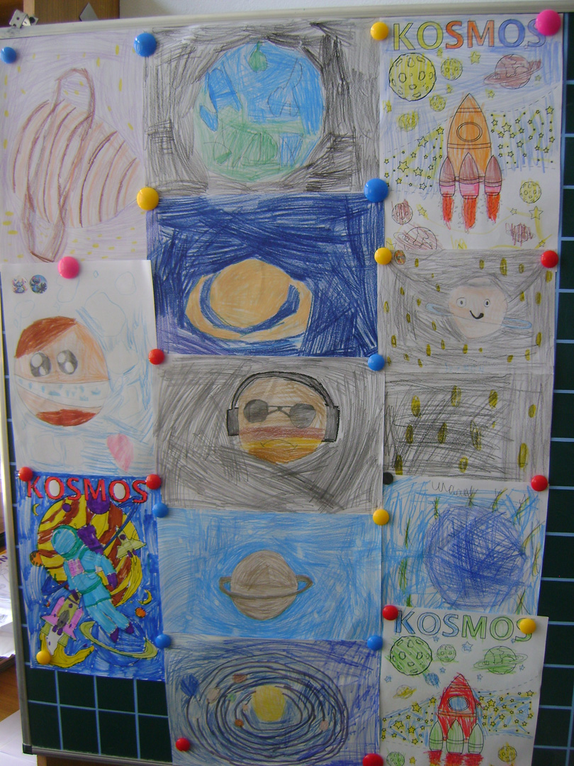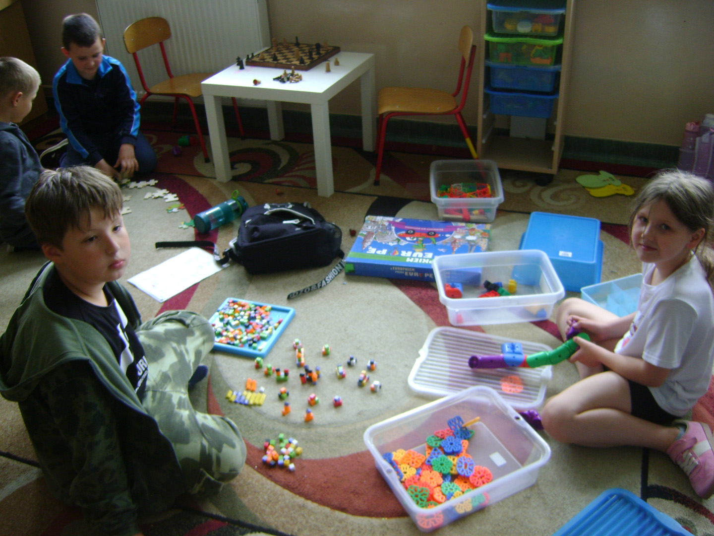 Świetlicowy maj to miesiąc książek, kwiatów, tabliczki mnożenia i kosmosu. Świetliczaki z dużym zaangażowaniem zabrały się do tworzenia własnych mini- książeczek lub komiksów, co było wyborem większości chłopców. Wszyscy zaczynali od okładki, następnie skupiali się na obrazkach i tekście do swoich książek. Zajęcia z angielskiego przyniosły Świetliczakom poszerzenie słownictwa o nazwy zwierząt, części ciała, czy czas wolny. Dużo rozmawialiśmy o kulturze osobistej, właściwych relacjach międzyludzkich, rodzinie, szacunku oraz emocjach, a najlepszym plastycznym ukazaniem emocji okazały się farby. Ostatni tydzień maja poświęciliśmy na zgłębianie wiedzy o kosmosie, znanych astronautach, czy układzie słonecznym. Dużą dawkę śmiechu przyniósł nam mini-konkurs na „Najdziwniejszego kosmitę w całym układzie słonecznym”, jak i próby odczytania pisma „obcych”. Świetliczaki ćwiczyły również tabliczkę mnożenia, ortografię, rysowanie po śladzie malując ulubione pieski, przygotowywały laurki i kwiatowe witraże dla mam. Nie zapominamy o zadaniach z projektu „Zabawa sztuką”, gdzie dzieci również tworzyły przepiękne kwiaty z myślą o Dniu Mamy. Zmęczeni nauką chętnie bawili się na placu zabaw podczas pięknej pogody, w deszczowe dni grali na dywanie, układali puzzle, czym również chcieli się pochwalić pozując do zdjęć. Zapraszam zatem serdecznie do galerii.