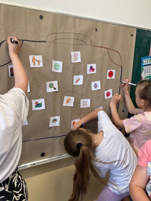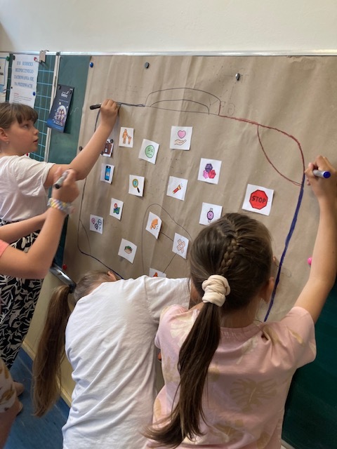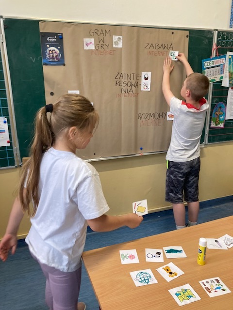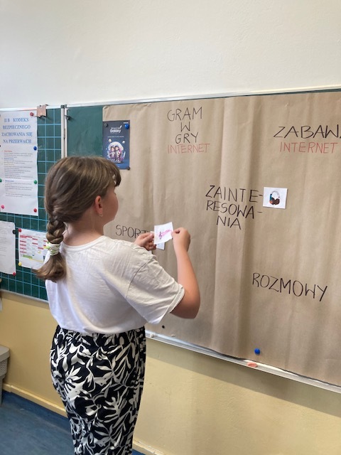 Program „Stacja Galaxy. Bezpieczne miejsce w sieci” to inicjatywa edukacyjna realizowana przez Samsung Electronics Polska, skierowana do uczniów klas I–III, rodziców i nauczycieli. Jego celem jest budowanie odpowiedzialnego podejścia do świata cyfrowego, promowanie bezpieczeństwa w sieci oraz cyfrowej higieny. W klasie II b przeprowadzono 4 lekcje podczas dwóch pierwszych dzieci uporządkowały swoją wiedzę o Internecie, nauczyły się rozróżniać jego funkcje oraz stosować zasady bezpieczeństwa. Kolejne zajęcia wprowadziły uczniów w koncepcję cyfrowej higieny „netykiety”, łącząc tematykę technologiczną i zdrowotną. W trakcie 4 lekcji dużo było praktycznych działań – twórczych i wprowadzających element współpracy, które angażowały uczniów i wzmacniały ich kompetencje cyfrowe i społeczne.