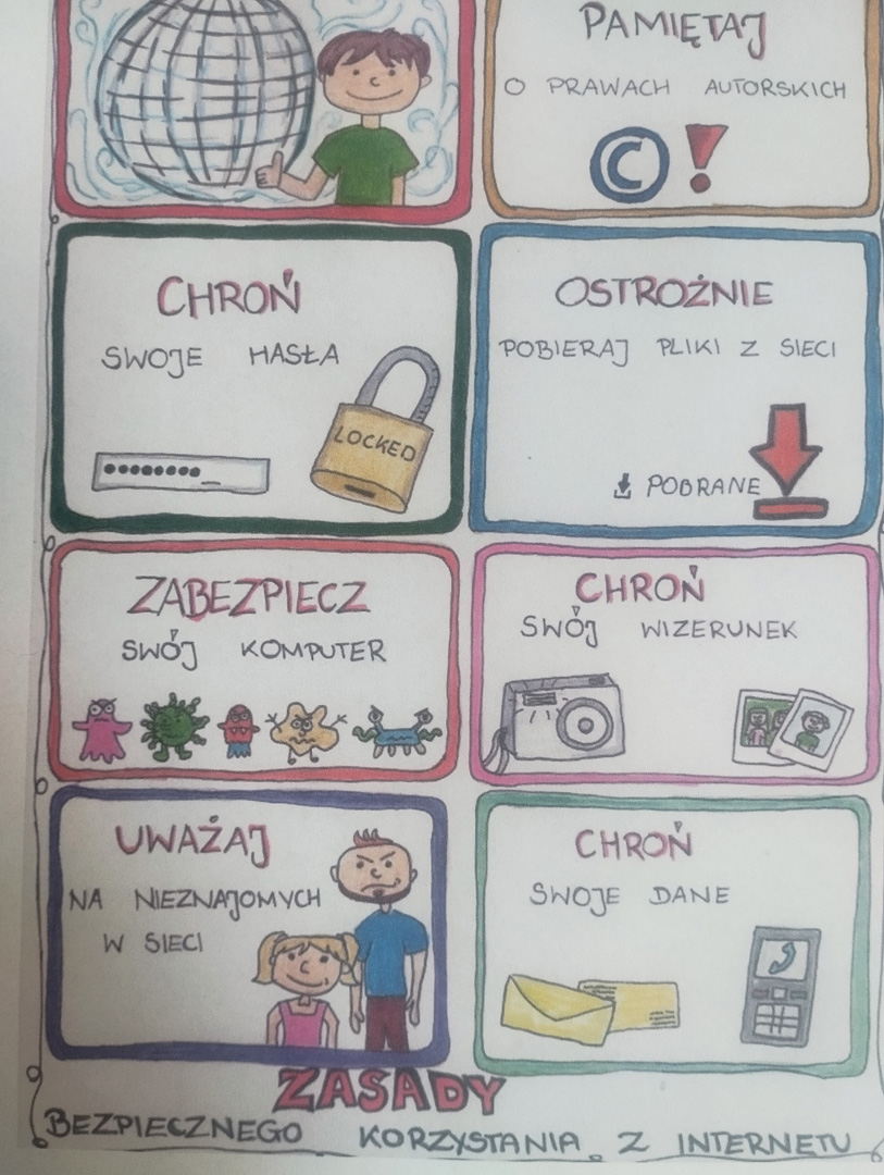 „Stacja Galaxy – bezpieczne miejsce w sieci”, były to ciekawe zajęcia podczas których dzieci poznały zasady bezpiecznego korzystania z nterneci. Rozmawialiśmy o tym, jak chronić swoje dane, jak reagować na niebezpieczne sytuacje w sieci i dlaczego warto być miłym także w świecie online. Uczniowie wykonali rysunki i hasła promujące bezpieczeństwo w nternecie.