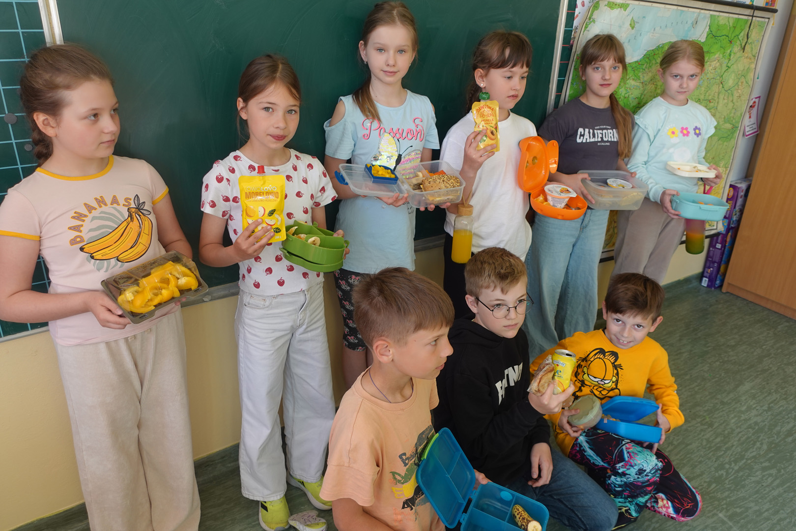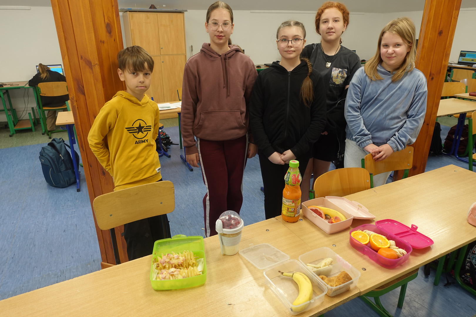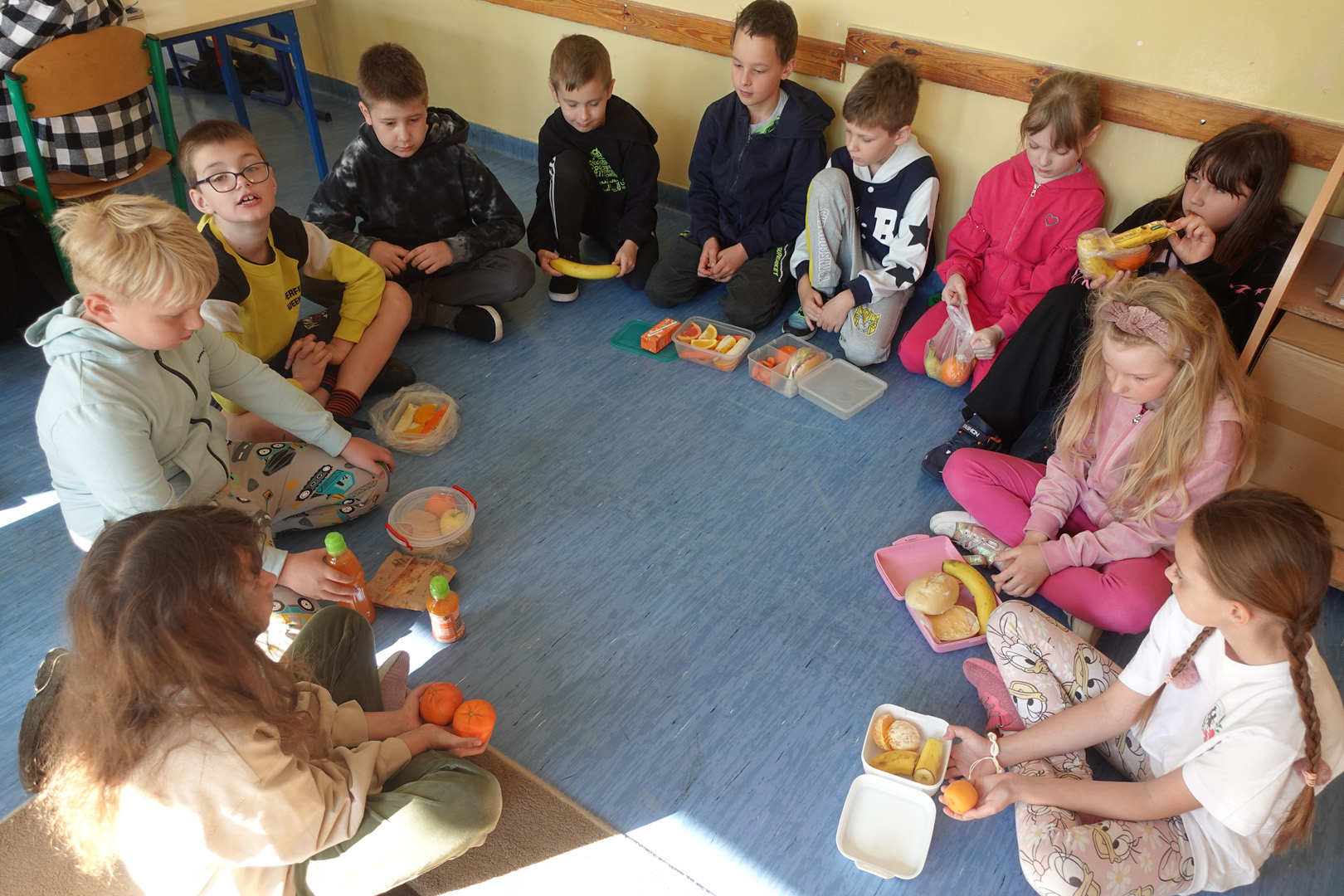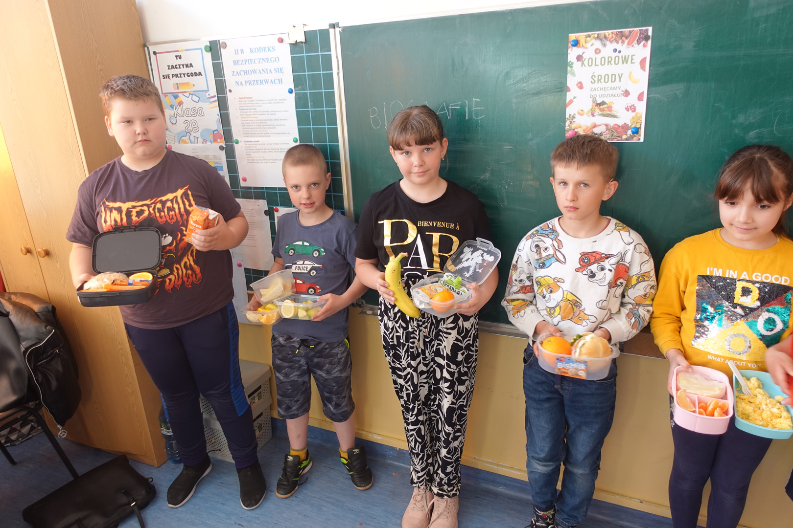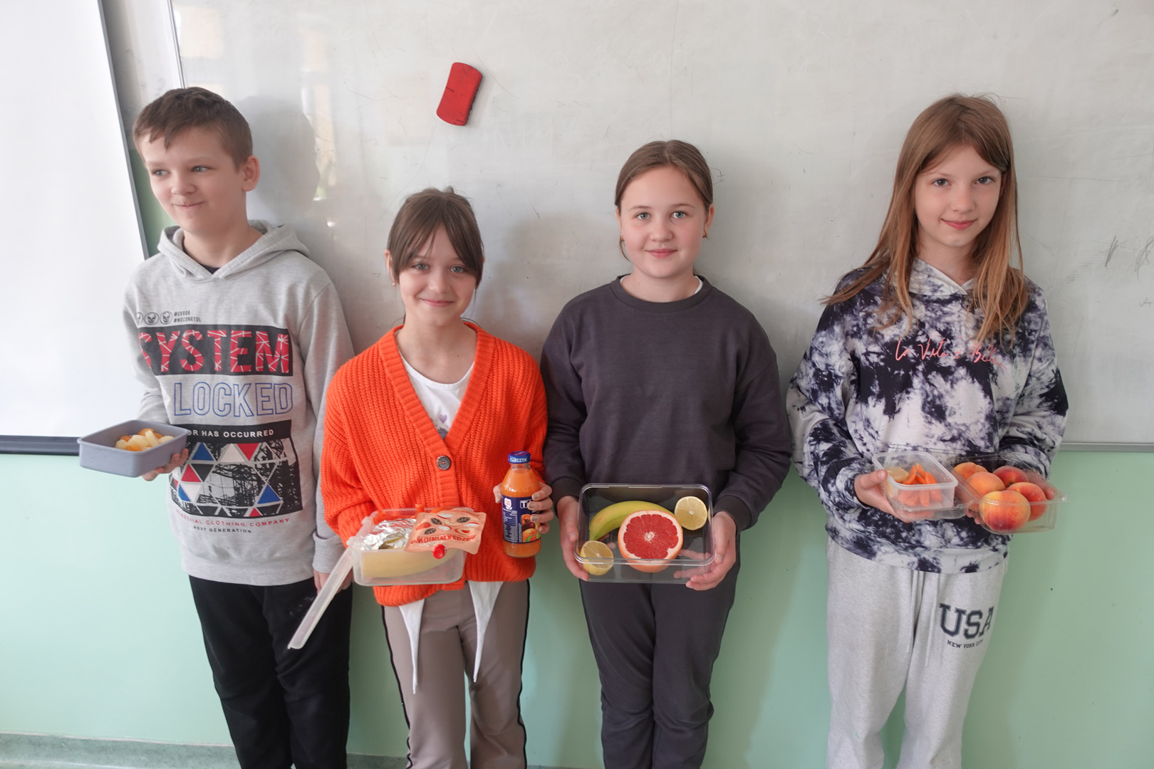 Na szkolnych stołach pojawiły się m.in. marchewki, papryki, pomarańcze, mango, banany czy też żółte sery. Dzięki zaangażowaniu całej społeczności szkolnej, atmosfera była radosna i pełna pozytywnej energii.