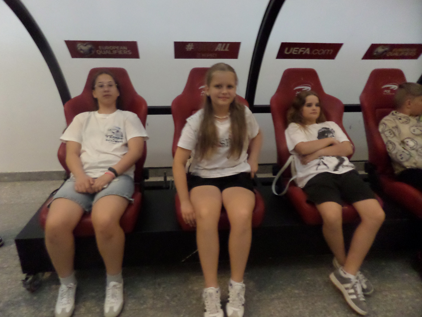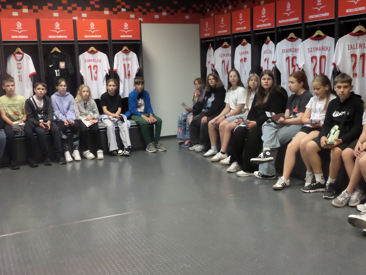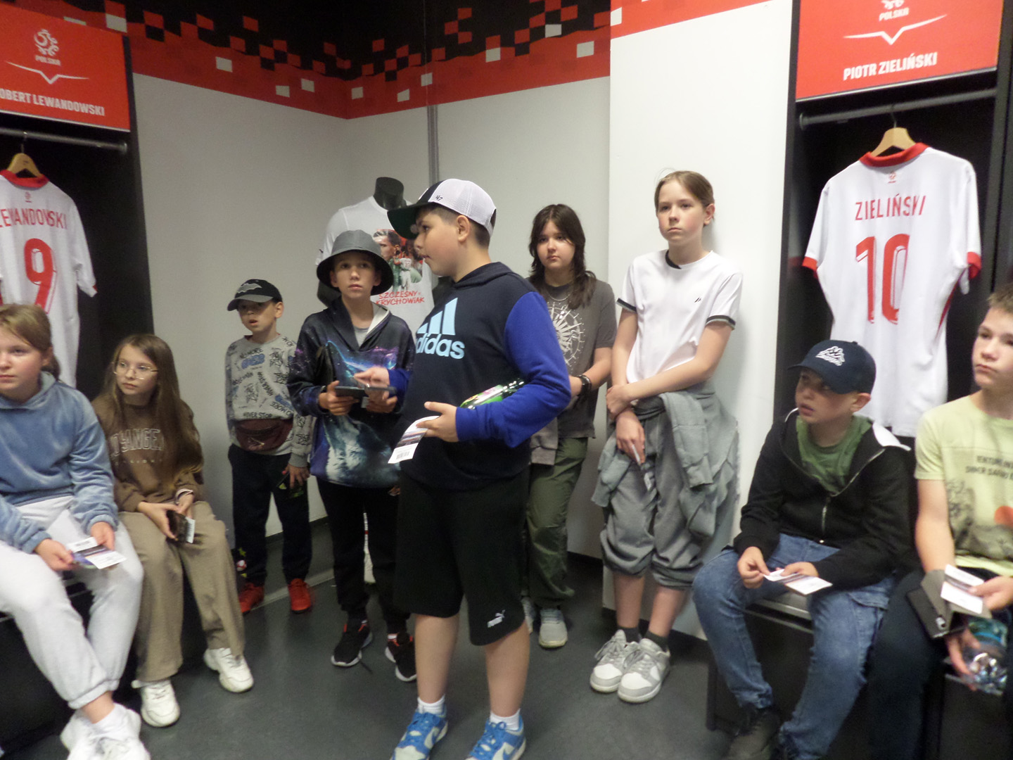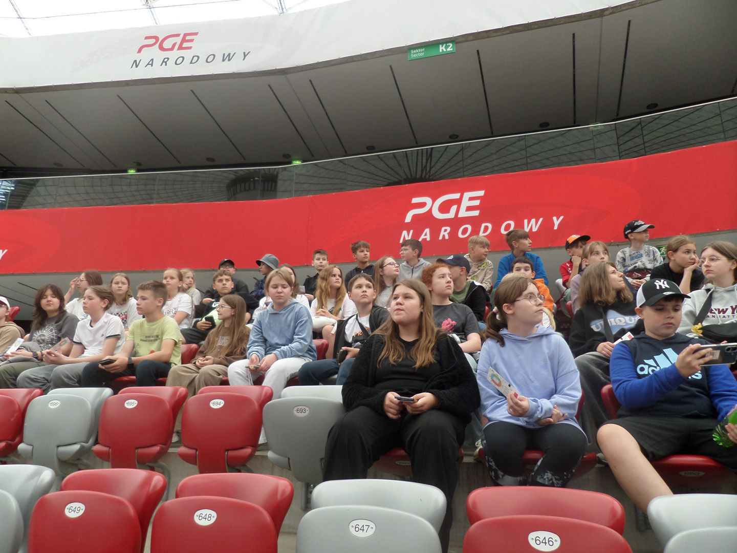 Pierwszym punktem programu było zwiedzanie Stadionu Narodowego. Ogromna przestrzeń, imponujące trybuny i nowoczesna infrastruktura zrobiły na nas ogromne wrażenie. Możliwość wejścia do szatni zawodników i przejścia trasą, którą na co dzień podążają sportowcy, była ekscytującym przeżyciem dla każdego fana sportu.