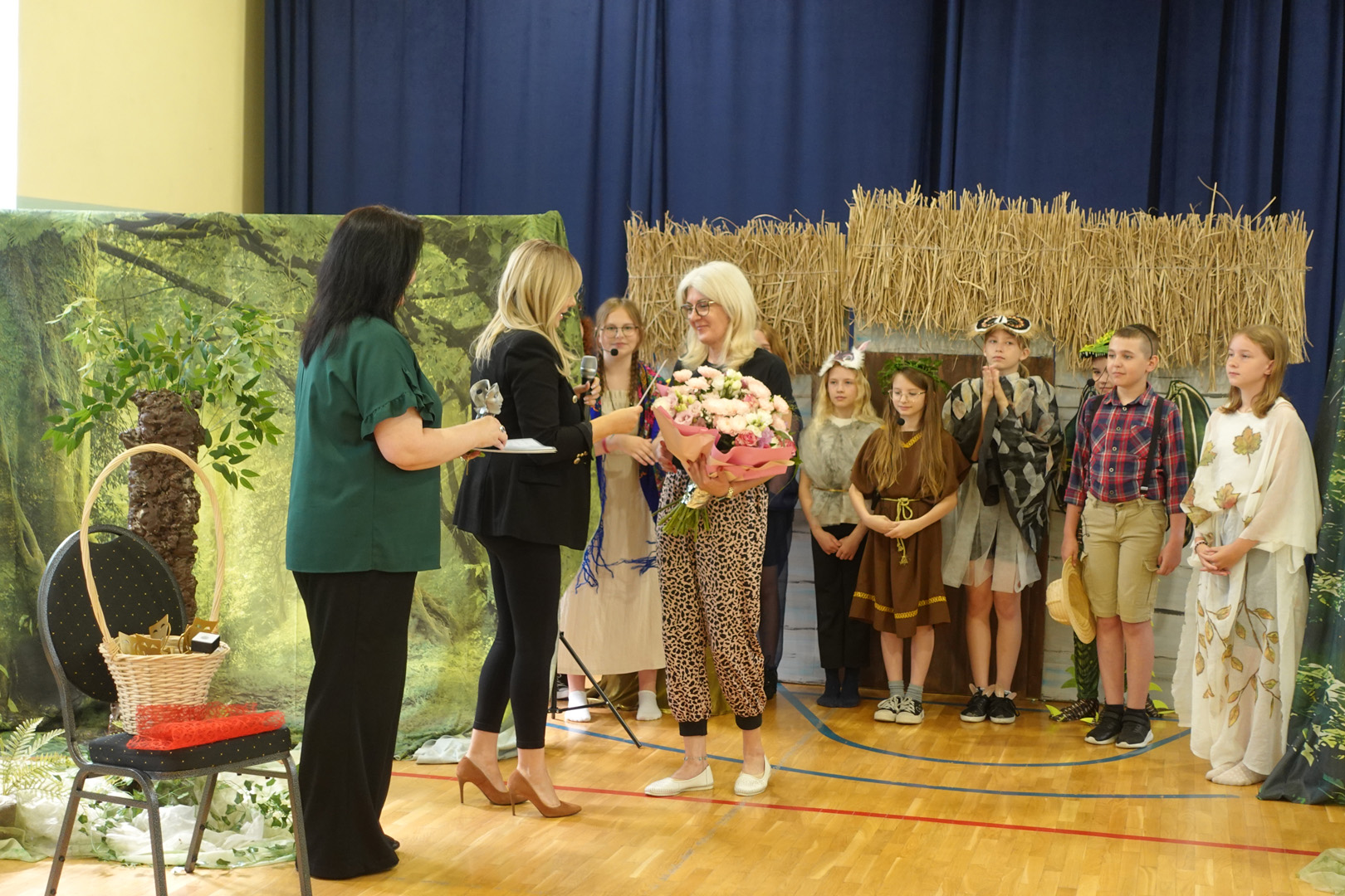 Po spektaklu dyrektor szkoły, Katarzyna Czajka wręczyła uczniom i opiekunce podziękowania i pamiątkowe statuetki.