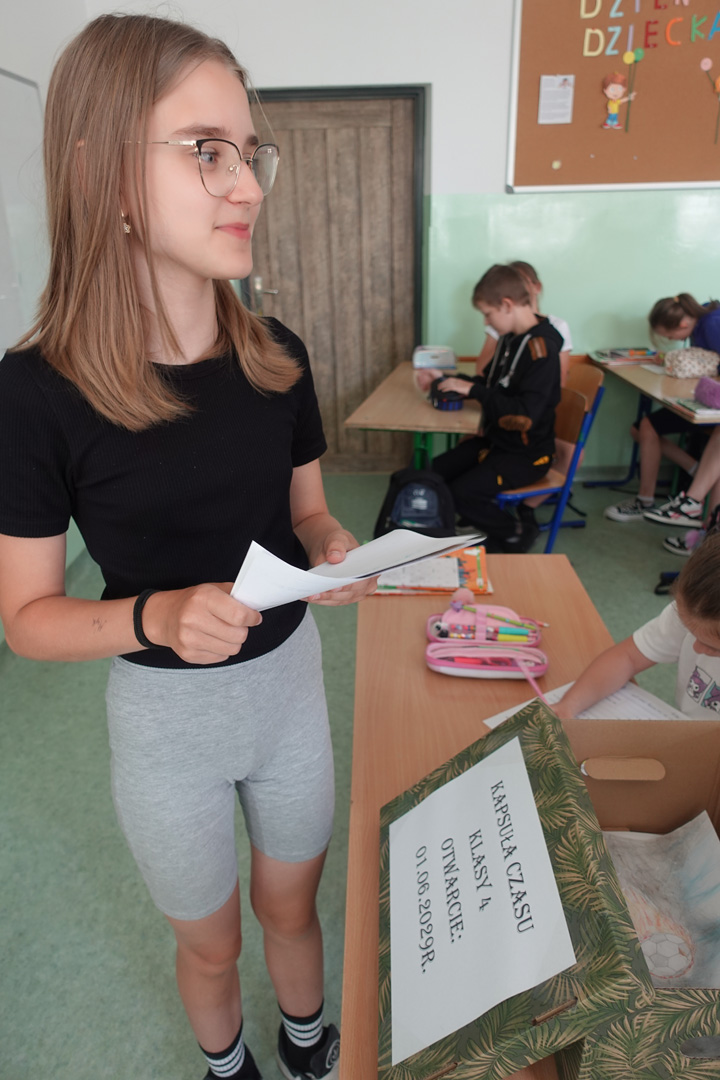 Tworzenie kapsuły czasu to nie tylko ciekawa lekcja historii i kultury, ale także sposób na budowanie wspólnoty klasowej. Dzieci mogły zatrzymać się na chwilę, spojrzeć na siebie z dystansu i pomyśleć o przyszłości. Dla wielu z nich to także pamiątka z jednego z najpiękniejszych okresów życia.