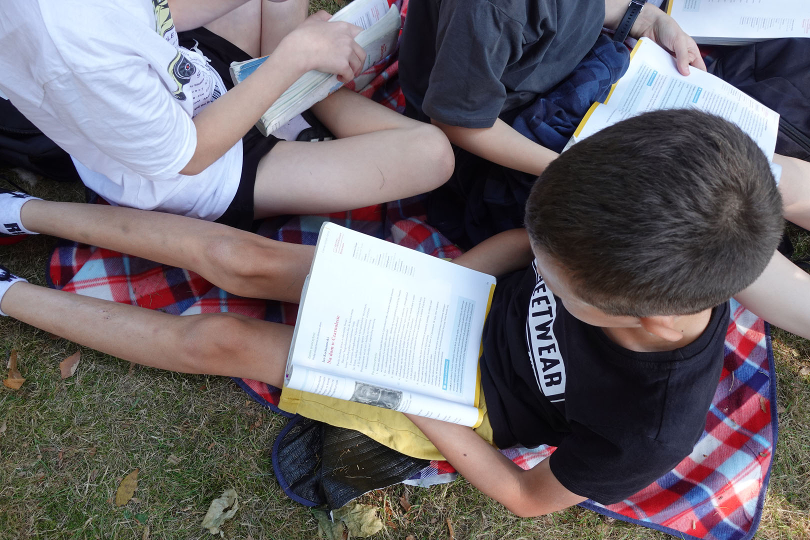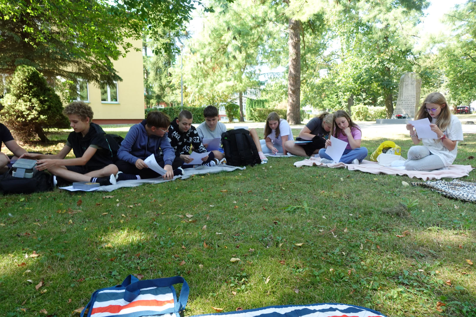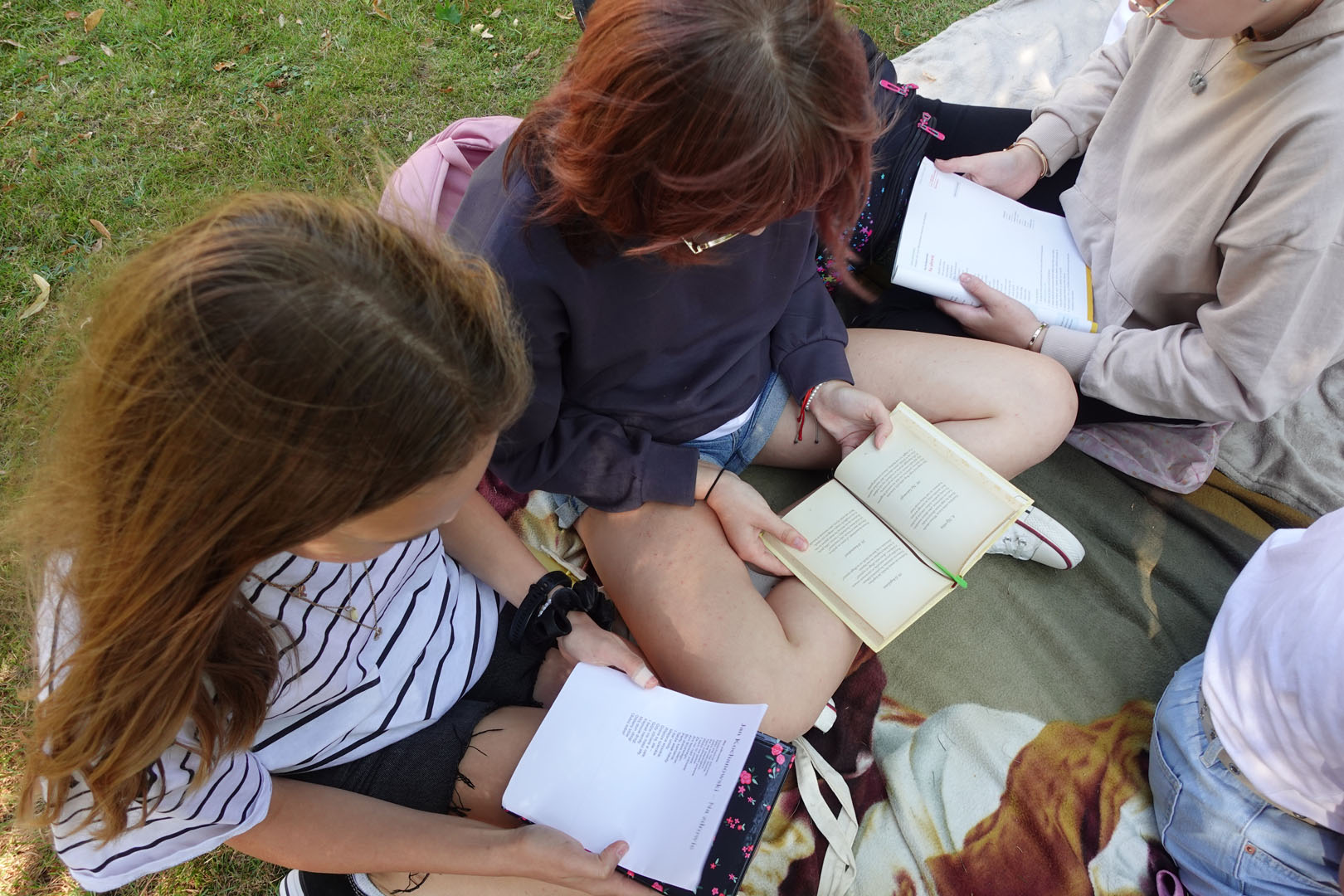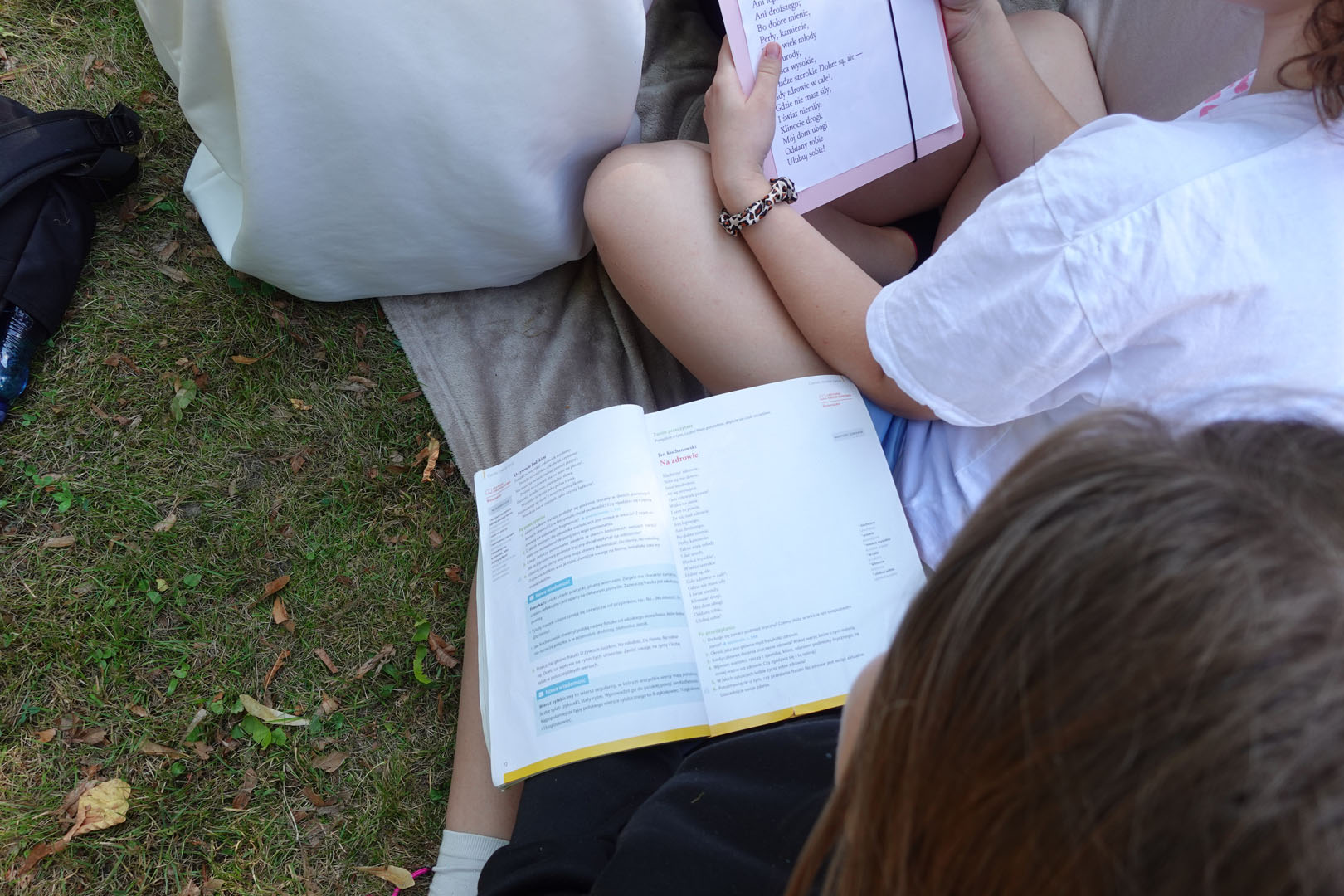 W naszej szkole w tegoroczną akcję czytania włączyli się uczniowie klas siódmych i ósmej. Podczas lekcji języka polskiego, które odbyły się w plenerze, uczniowie mieli okazję poczuć się jak na pikniku w Czarnolesie. Pod koronami drzew czytali przygotowane wcześniej teksty Kochanowskiego. Największą popularnością cieszyły się fraszki.