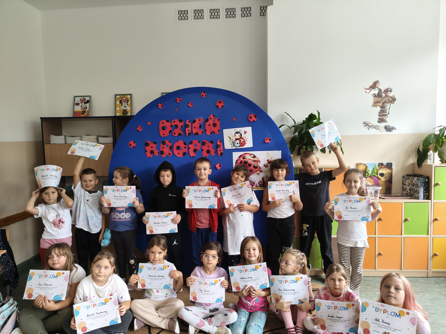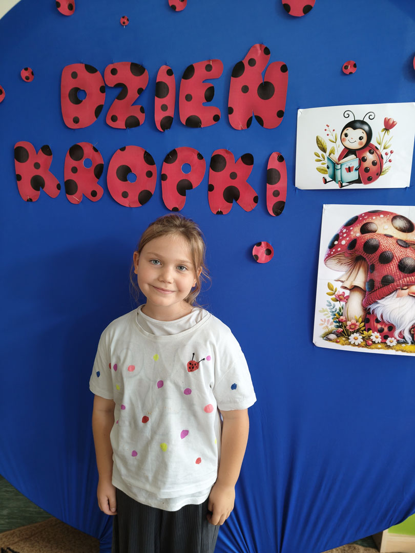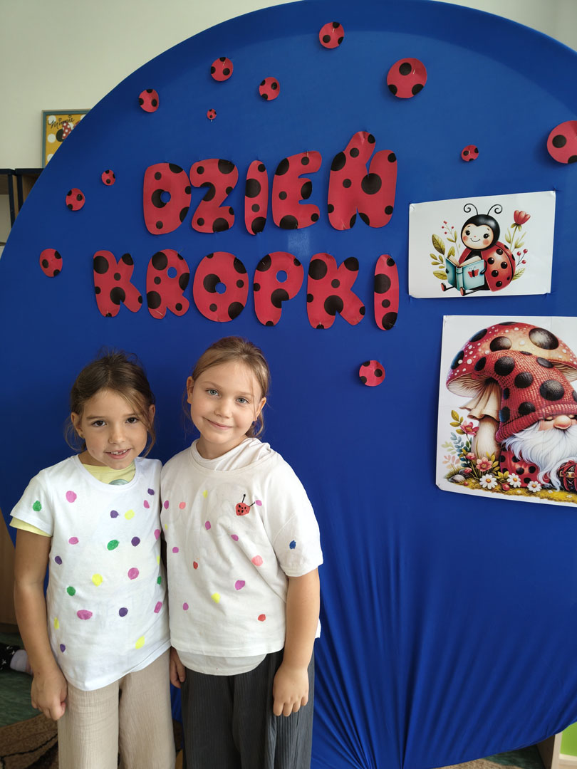 Dnia 15 września 2025 roku z okazji Międzynarodowego Dnia Kropki uczniowie klasy 1a uczestniczyli w wyjątkowych zajęciach w świetlicy. Na początku dzieci wysłuchały opowieści o „Magicznej kropce”. Zainspirowane historią samodzielnie projektowały i ozdabiały koszulki kolorowymi kropkami, tworząc wyjątkowe i niepowtarzalne wzory. W czasie pracy panowała radosna atmosfera, a uśmiechy nie schodziły z twarzy uczestników. Była to lekcja pełna kreatywności, dobrej zabawy i wiary we własne możliwości. Na zakończenie uczniowie zaprezentowali swoje prace.
