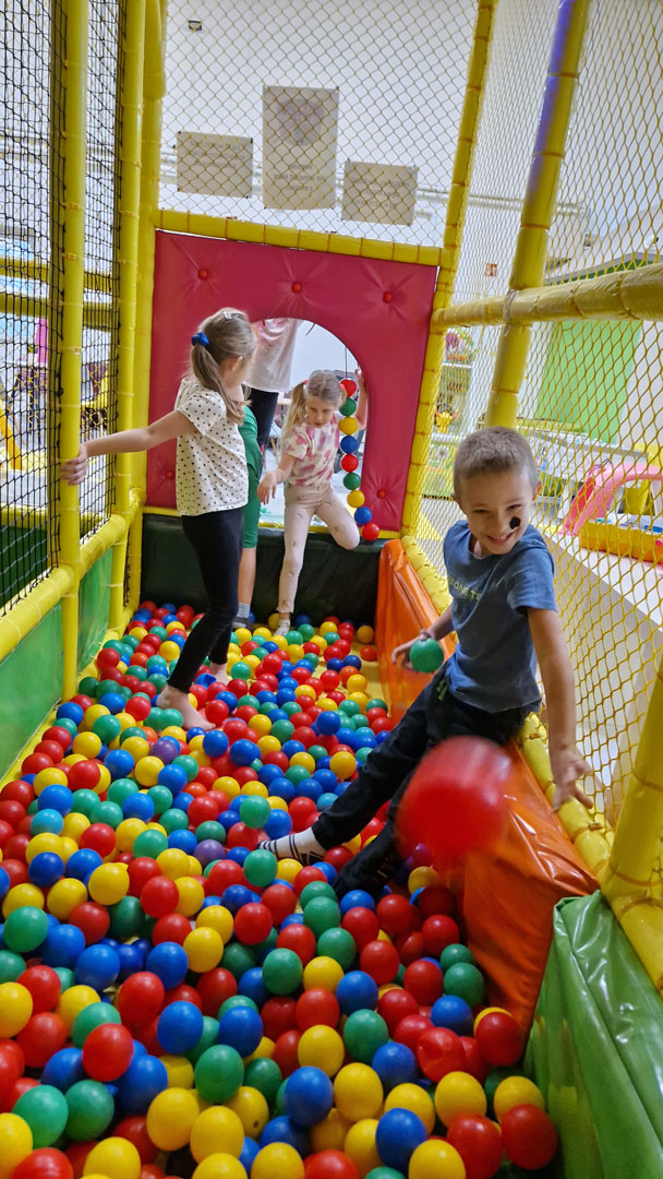 Po części kulturalnej przyszedł czas na odrobinę szaleństwa – dzieci odwiedziły Fikoland, gdzie czekały na nich zjeżdżalnie, tory przeszkód i mnóstwo okazji do wspólnej zabawy.