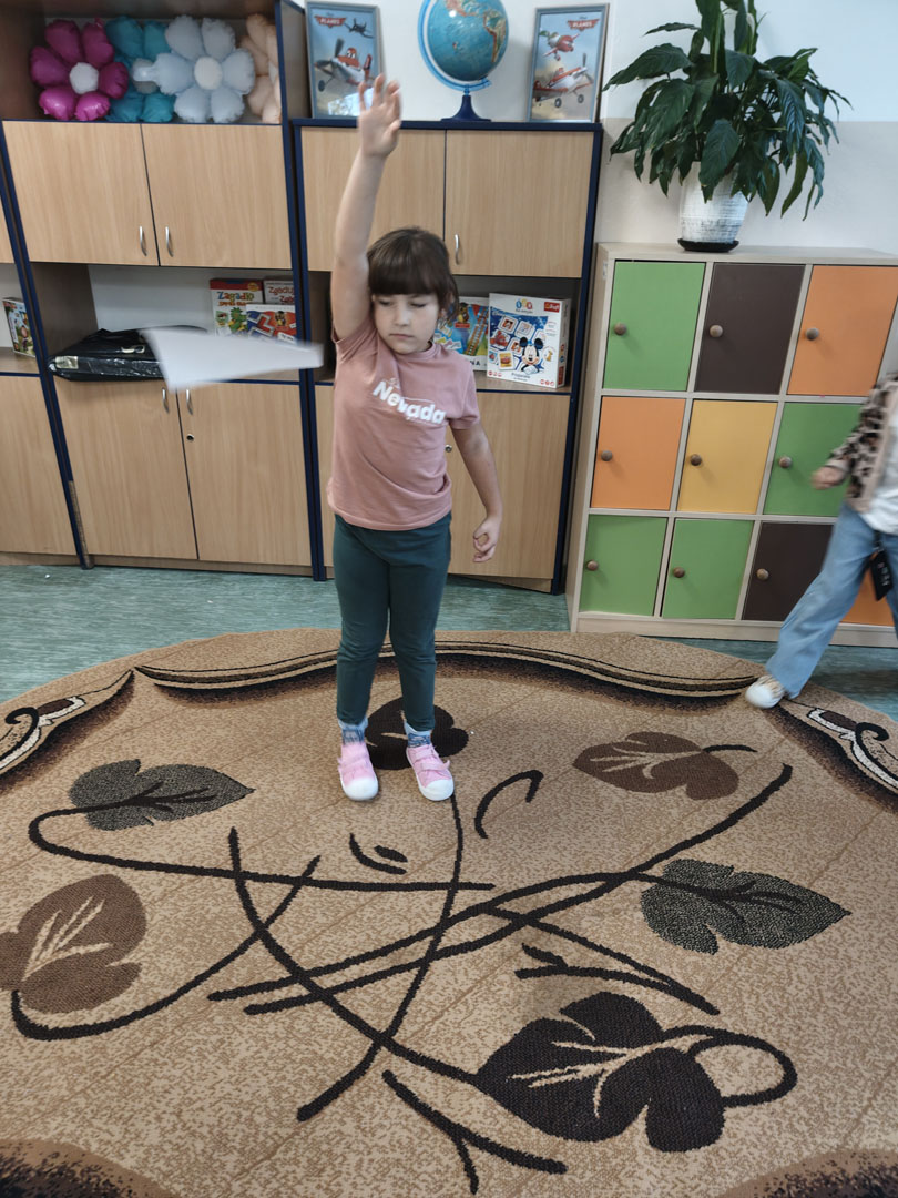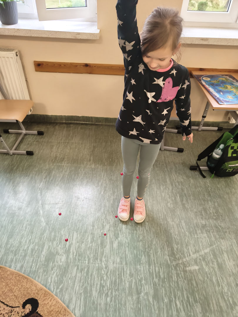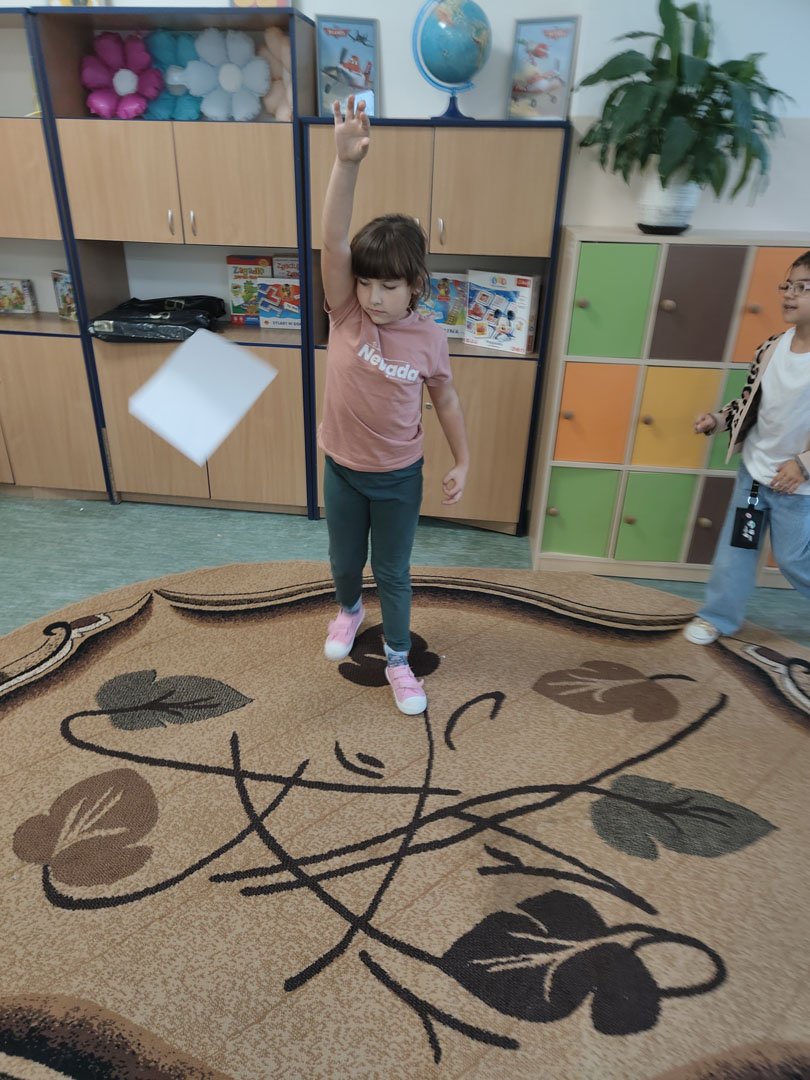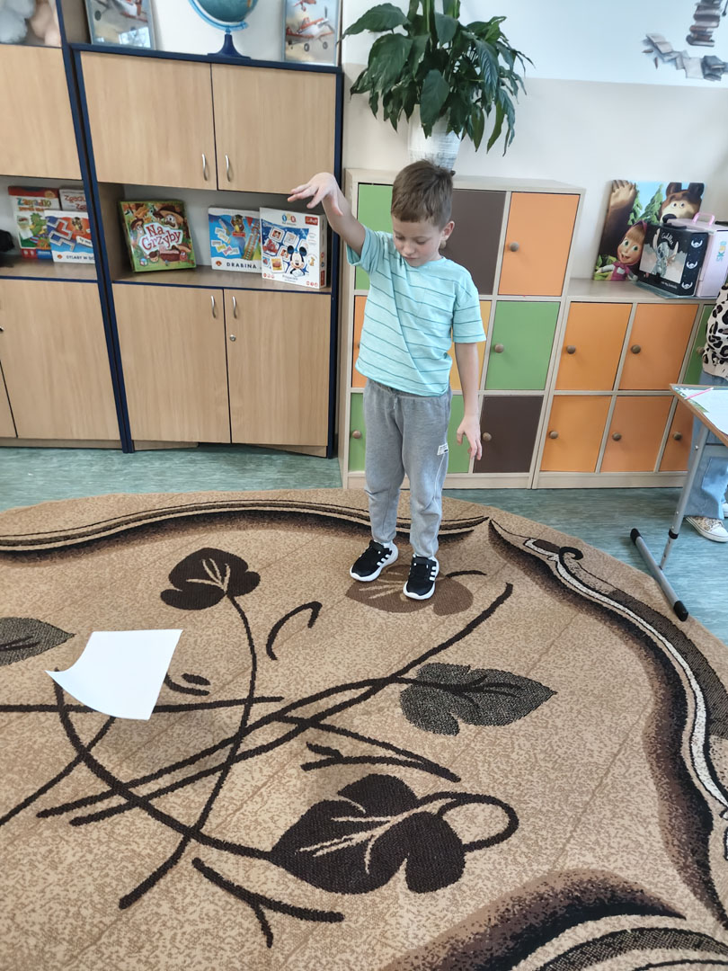Podczas zajęć dzieci, poprzez ukierunkowane działania, utrwalały umiejętność określania położenia przedmiotów na płaszczyźnie oraz obserwowały zachowanie się przedmiotów o różnej wielkości i ciężarze podczas spadania z wysokości. Pracując w parach, uczniowie samodzielnie tworzyli karty pracy, na których zapisywali i ilustrowali wyniki swoich obserwacji. W czasie wykonywanych doświadczeń i obserwacji uczniom towarzyszyła radość z odkrywania.