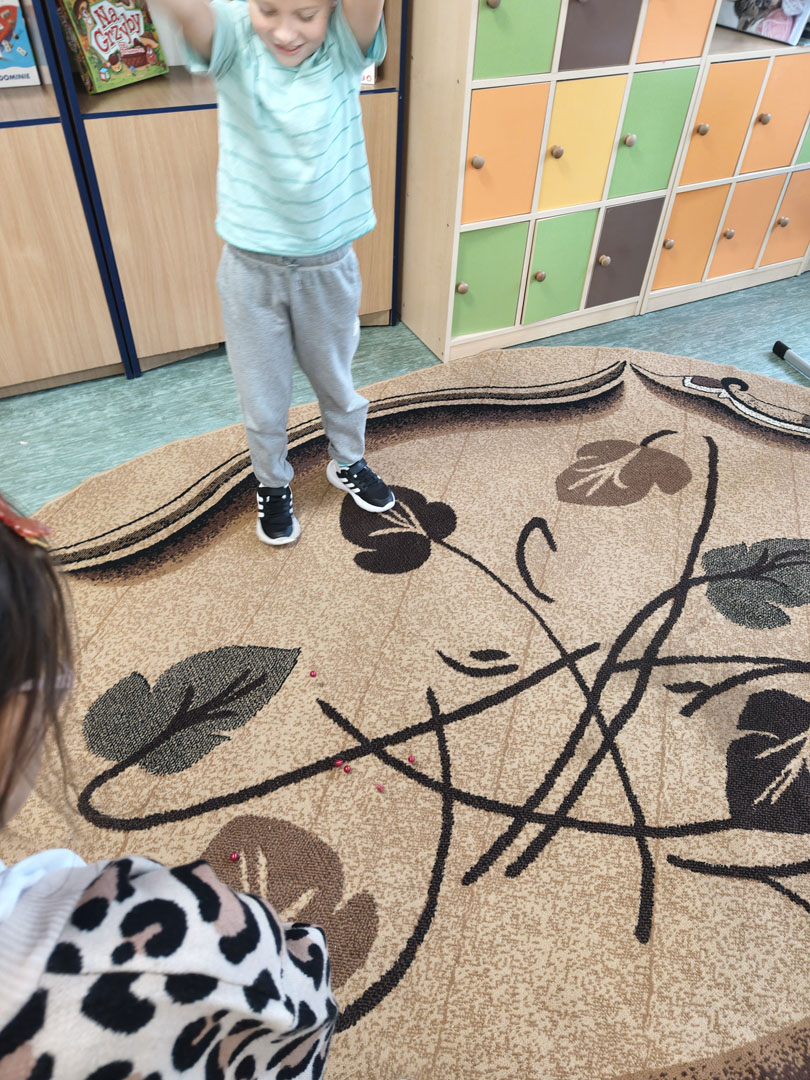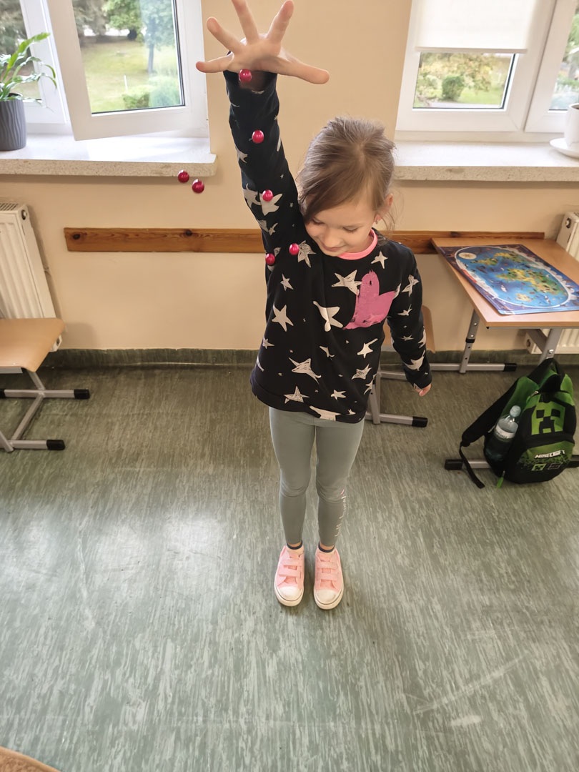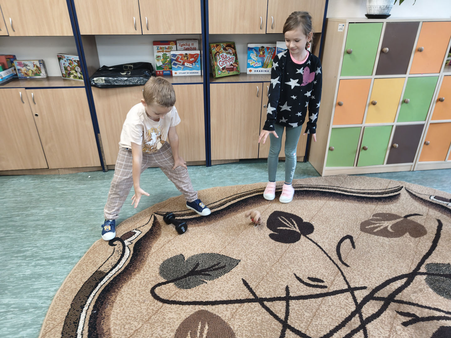Podczas zajęć dzieci, poprzez ukierunkowane działania, utrwalały umiejętność określania położenia przedmiotów na płaszczyźnie oraz obserwowały zachowanie się przedmiotów o różnej wielkości i ciężarze podczas spadania z wysokości. Pracując w parach, uczniowie samodzielnie tworzyli karty pracy, na których zapisywali i ilustrowali wyniki swoich obserwacji. W czasie wykonywanych doświadczeń i obserwacji uczniom towarzyszyła radość z odkrywania.