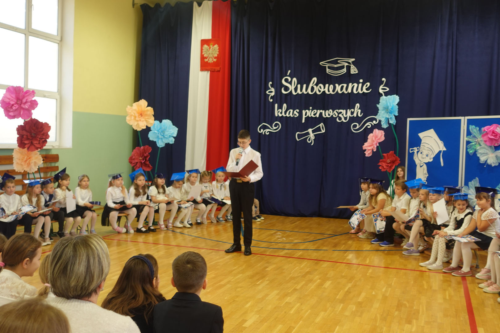 W dniu 30.10. 2025 roku w naszej szkole odbyła się niezwykle ważna uroczystość, „Pasowania klas pierwszych”. To wyjątkowy moment w życiu każdego dziecka, symbolicznie rozpoczynający nowy etap edukacyjnej przygody. Pierwszoklasiści zaprezentowali piękny program artystyczny, pełen wierszy i piosenek, po którym nastąpił najbardziej oczekiwany moment czyli akt pasowania na ucznia, którego dokonała Pani Dyrektor Katarzyna Czajka. Na uroczystość przybili także rodzice, którzy gromkimi brawami wspierali swoje pociechy. Swoją obecnością zaszczycił nas też Wójt Gminy Siennica Różana Pan Leszek Proskura, który skierował do dzieci ciepłe słowa. Uczniom gratulujemy i życzymy wielu sukcesów, radości z odkrywania świata wiedzy oraz samych wspaniałych chwil w murach naszej szkoły!