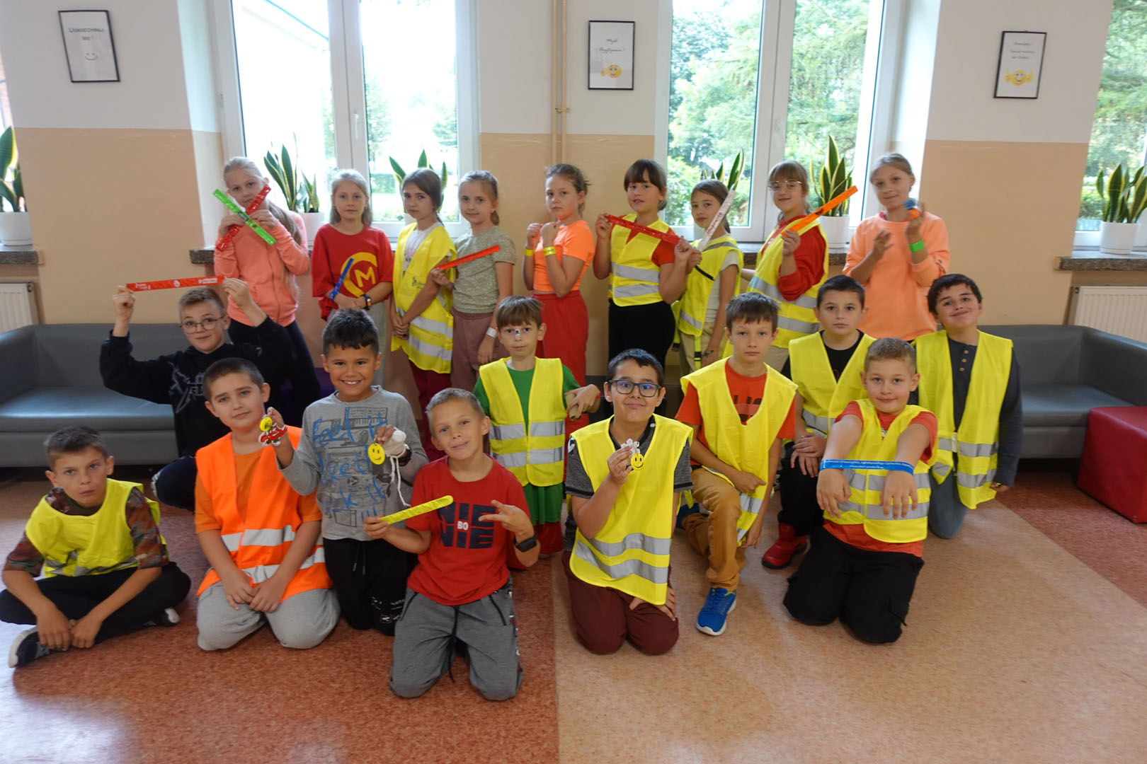 Zmiana czasu, jaka towarzyszyła nam pod koniec października ma na celu efektywniejsze wykorzystanie przez ludzi światła dziennego. Jak ważna jest nasza widoczność przekonujemy się każdego dnia. Wychowawcy klas 4-8 również o tym wiedzą i systematycznie powtarzają swoim wychowankom, aby każdego dnia dbali o swoje bezpieczeństwo w czasie drogi do szkoły oraz podczas powrotu do domu. Uczniowie naszej szkoły zgodnie twierdzą, iż nawykiem stało się sprawdzanie, czy przy plecaku, bądź na ramieniu mają założony odblask, bo to on może uratować ich życie. Zajęcia z wychowawcami w dużej mierze przez ostatnie tygodnie były poświęcone bezpieczeństwu w ramach konkursu odblaskowa szkoła, dzięki czemu wielu uczniów na bardzo wysokim poziomie zaprezentowało się w szkolnym konkursie wiedzy o bezpieczeństwie w ruchu drogowym. Wyniki już niebawem! Tymczasem serdecznie zapraszam do galerii, gdzie klasy 4-8 dumnie prezentują się zaopatrzeni w kamizelki i odblaski, które pomogą bezpiecznie dotrzeć do czasu letniego.