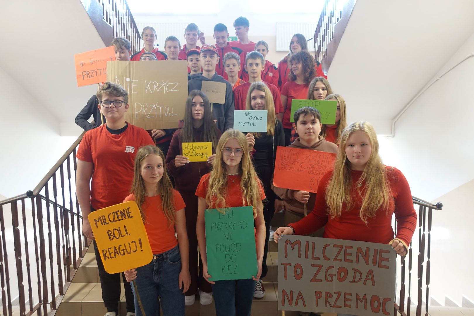 W związku z przyłączeniem się naszej szkoły do ogólnopolskiej kampanii „Dzieciństwo bez Przemocy” Fundacji Dajemy Dzieciom Siłę, w środę 19 listopada 2025 r. zorganizowaliśmy marsz, wspierający ideę bezpiecznego, pełnego szacunku i miłości dzieciństwa. Chcieliśmy w ten sposób wyrazić solidarność z najmłodszymi oraz podkreślić, że każde dziecko ma prawo dorastać w atmosferze bezpieczeństwa i akceptacji.
