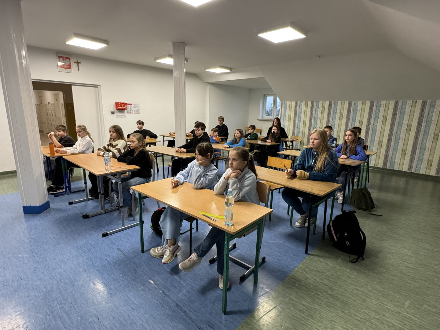 W naszej szkole wzięło w nim udział 23 uczniów: 6 osób z klas IV, 6 osób z klas V, 4 osoby z klas VI, 2 osoby z klas VII i 5 osób z klasy VIII. Uczniowie rozwiązywali 30 zadań w formie testu, każdy na poziomie danej klasy, które okazały się nie lada wyzwaniem.