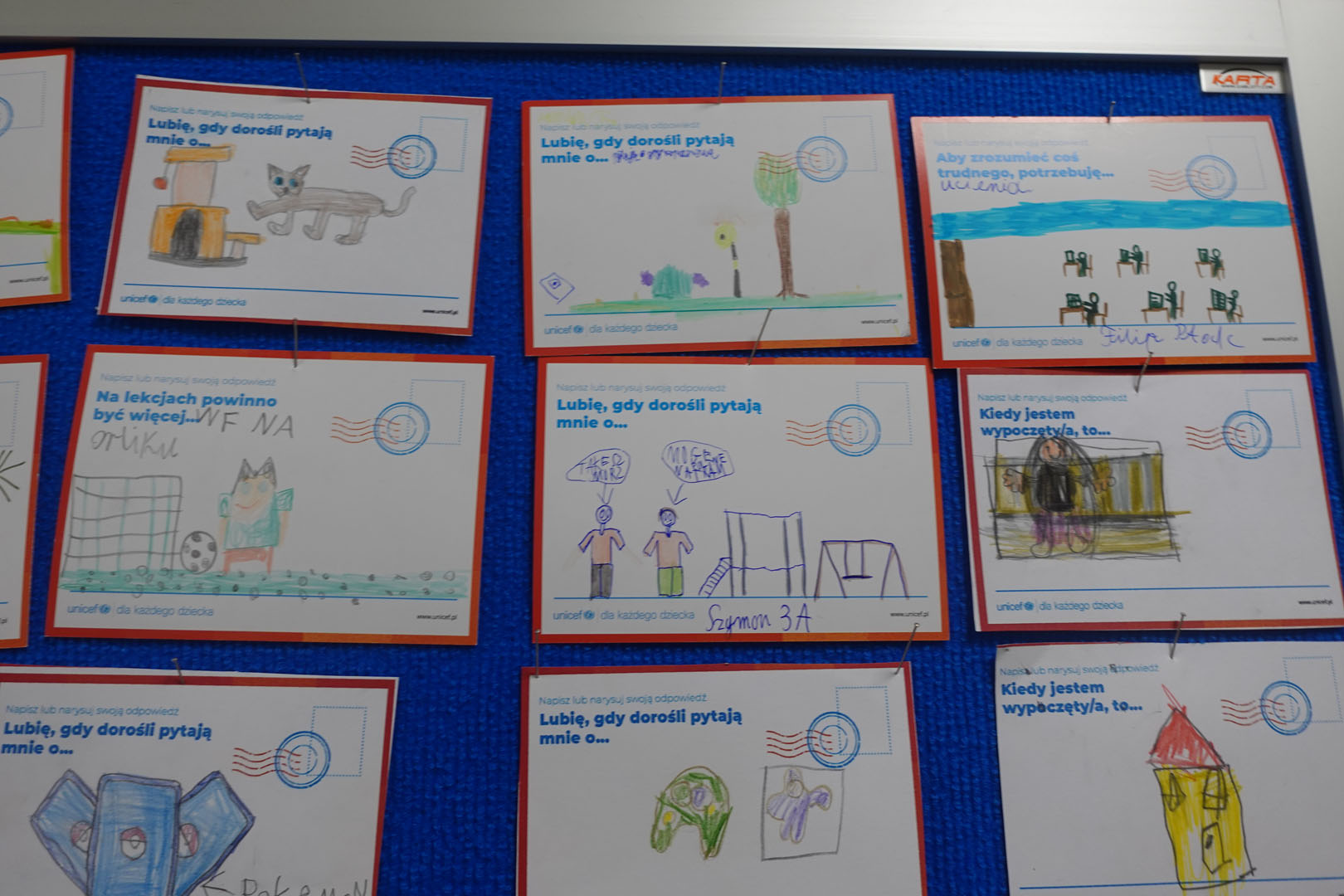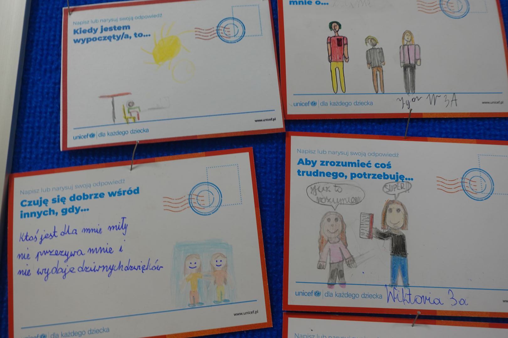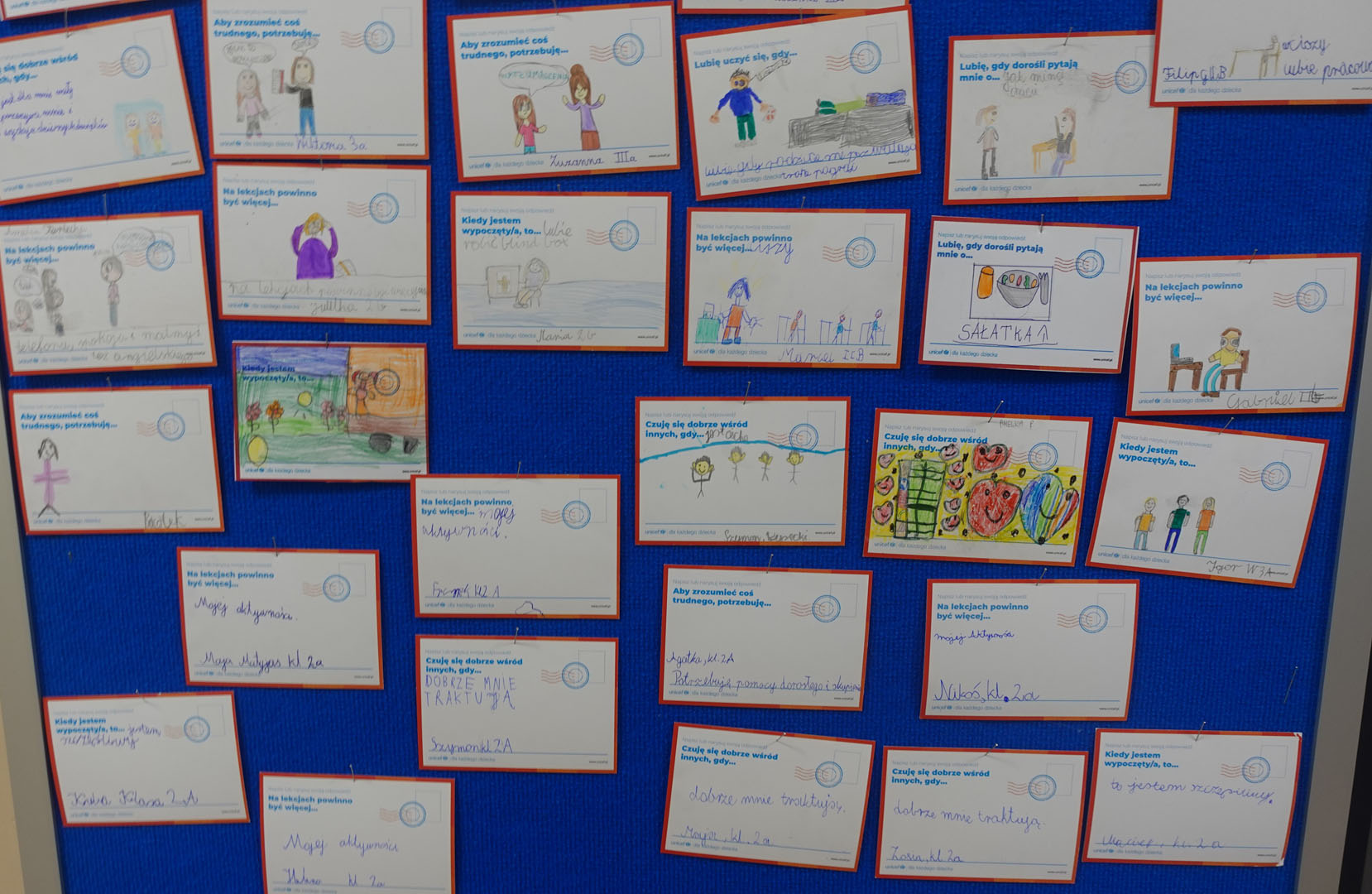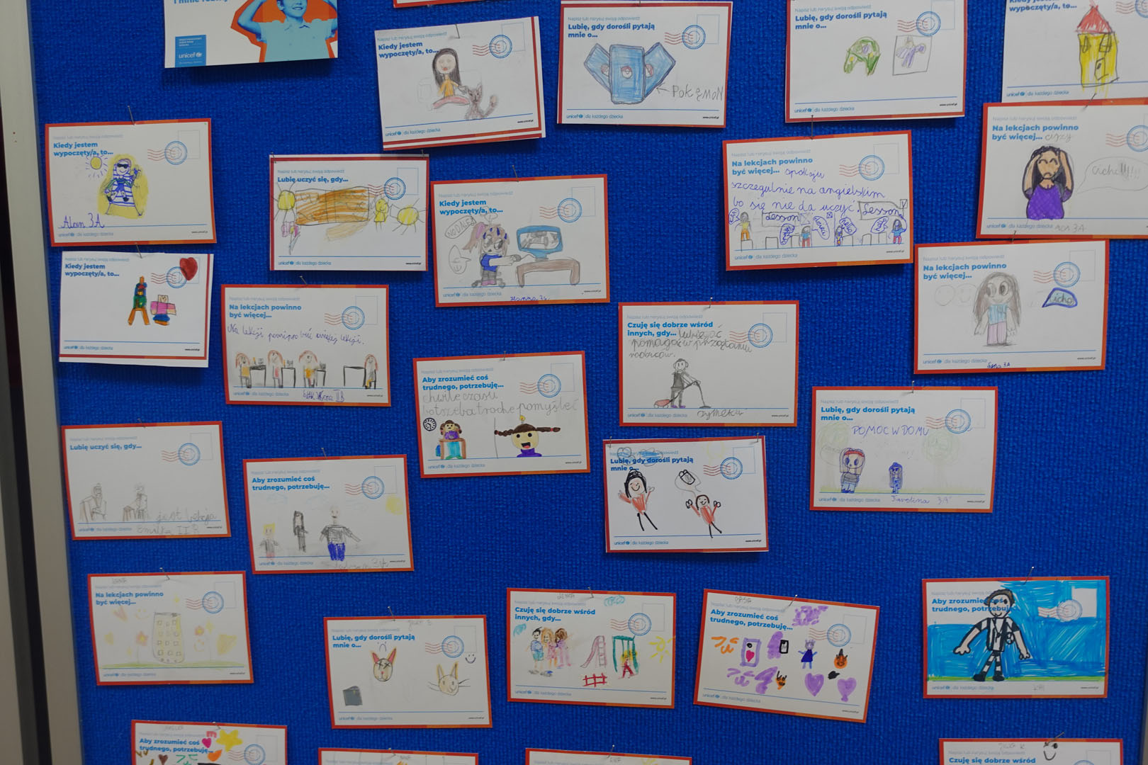 Dziś obchodzimy Międzynarodowy Dzień Praw Dziecka, który jest organizowany przez UNICEF – jedną z najważniejszych organizacji na świecie dbających o prawa najmłodszych. W bieżącym roku dzień ten jest obchodzony pod hasłem ,,Mam prawo do…”.Uczniowie naszej szkoły w tym dniu dzielili się swoimi spostrzeżeniami na temat praw dziecka rysując lub pisząc na specjalnie przygotowanych kartkach.