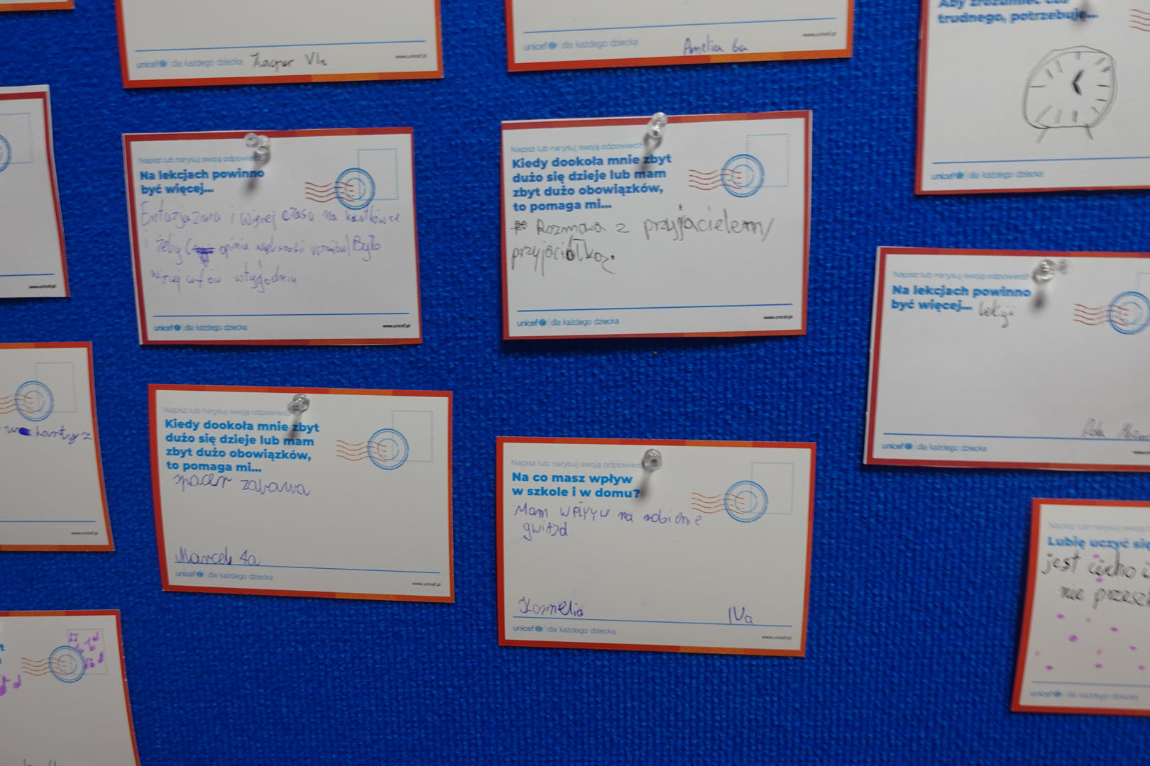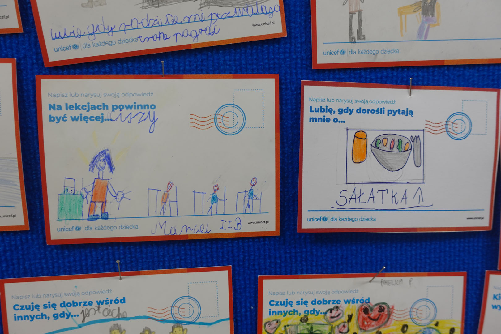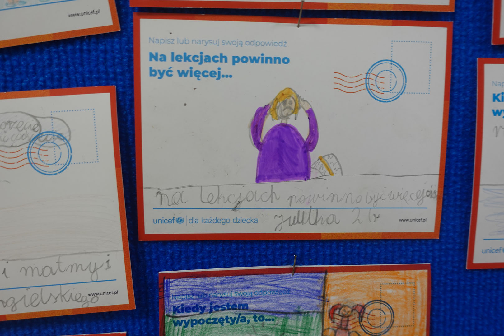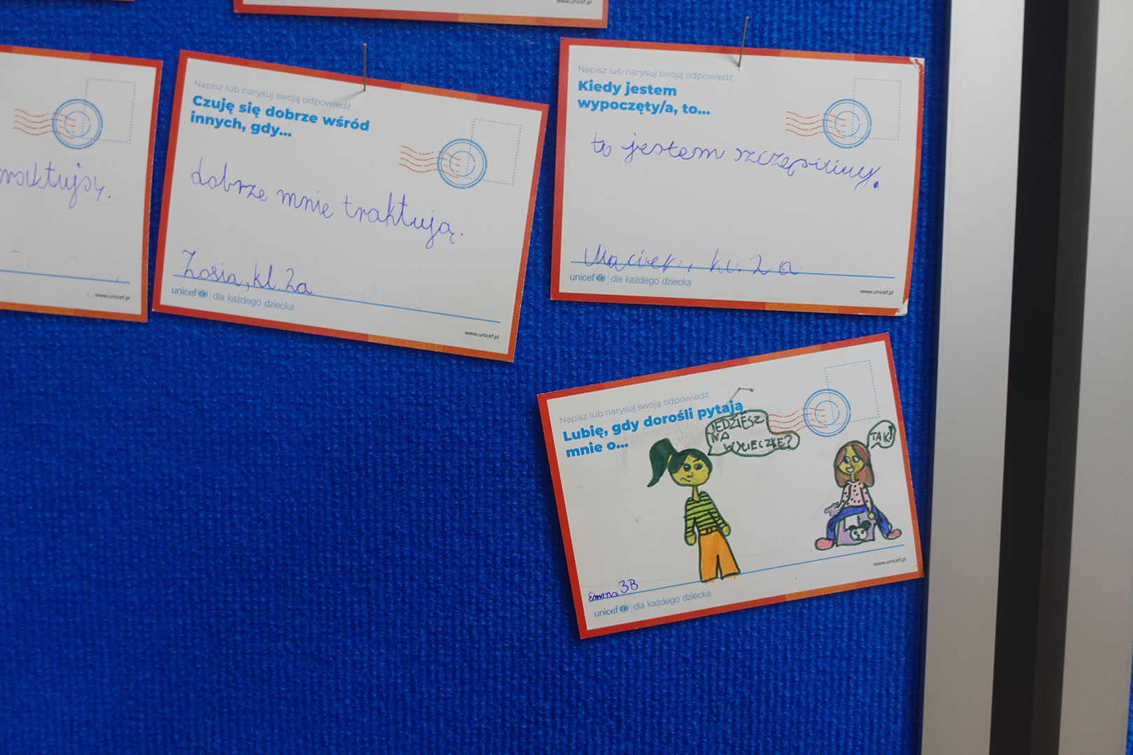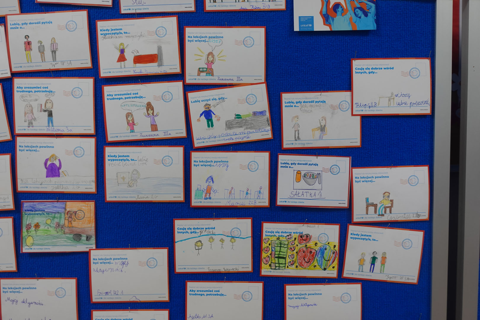 Dziś obchodzimy Międzynarodowy Dzień Praw Dziecka, który jest organizowany przez UNICEF – jedną z najważniejszych organizacji na świecie dbających o prawa najmłodszych. W bieżącym roku dzień ten jest obchodzony pod hasłem ,,Mam prawo do…”.Uczniowie naszej szkoły w tym dniu dzielili się swoimi spostrzeżeniami na temat praw dziecka rysując lub pisząc na specjalnie przygotowanych kartkach.